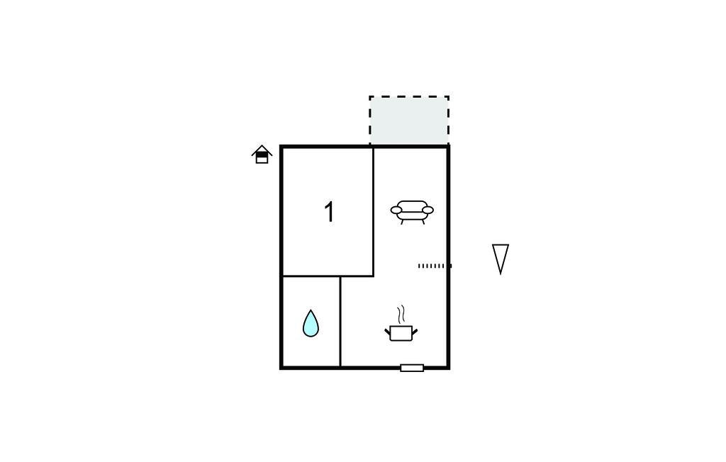 Opholdsstue/køkken 14m2 - 1 Soveplads. (Sofa, madras eller lignende).