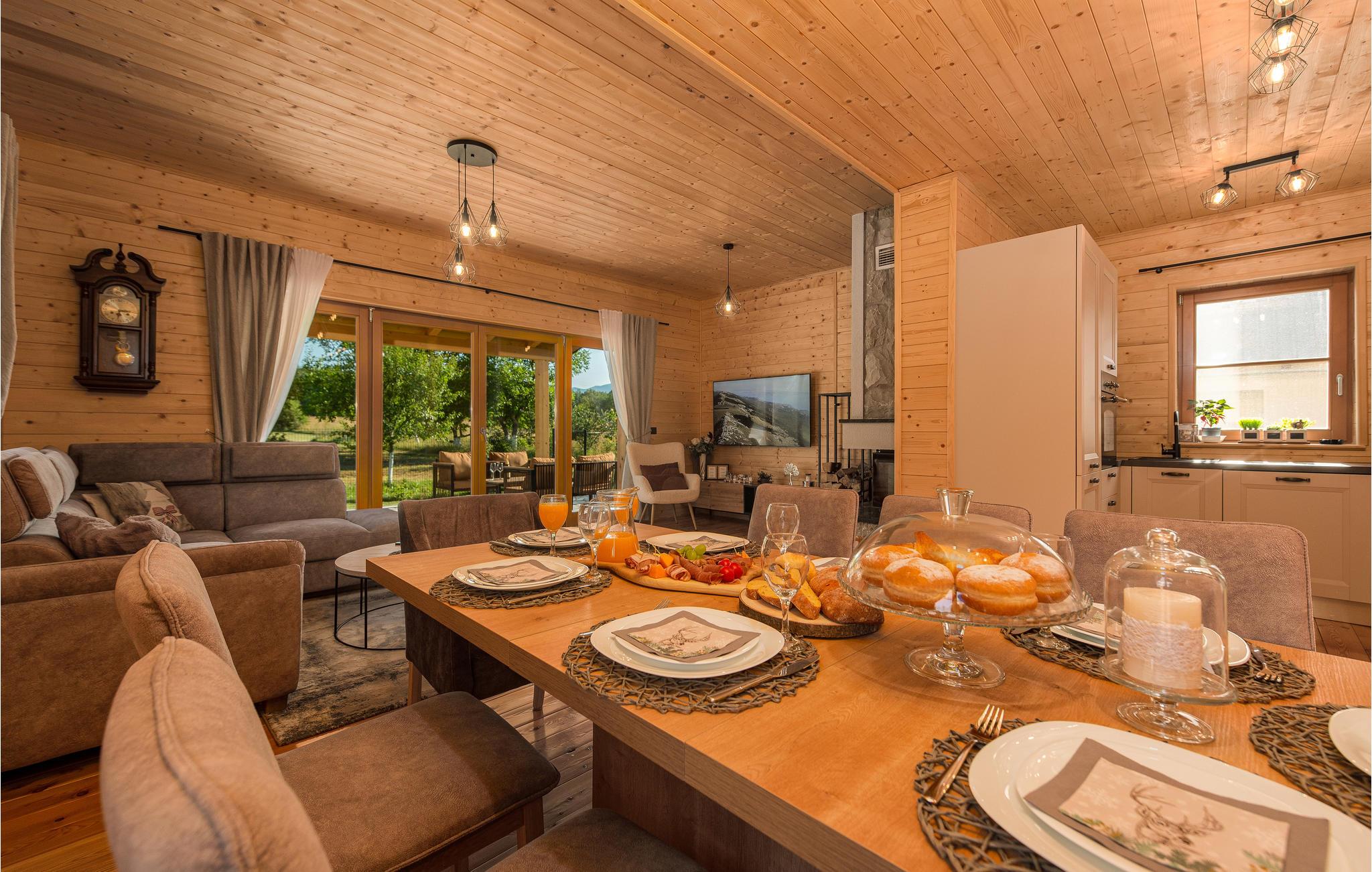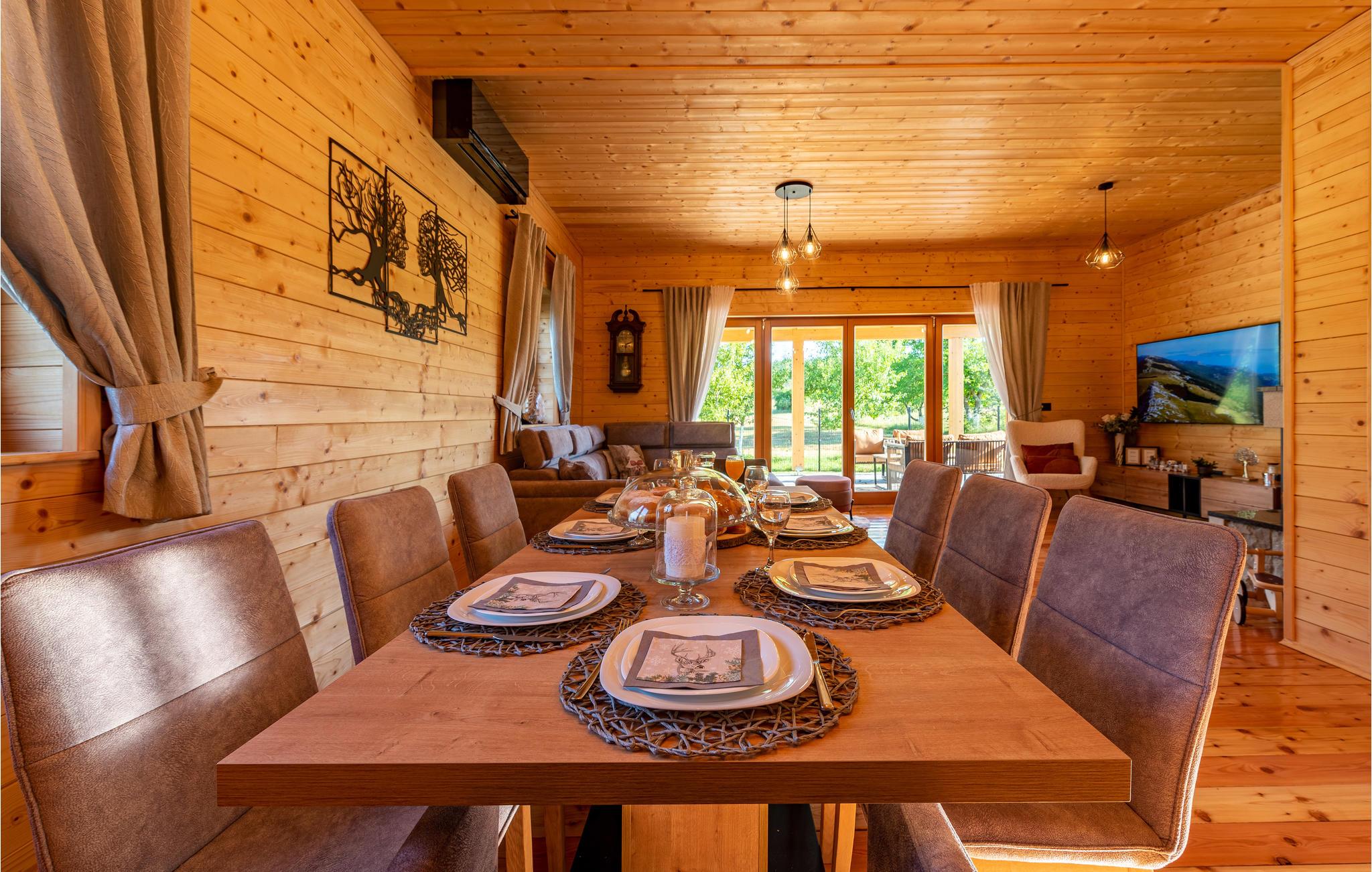 Dette moderne træhus med mange faciliteter venter på dig i en idyllisk og rolig beliggenhed i Licko Cerje. Med sin hjemlige atmosfære og komfortable møbler tilbyder dette drømmeagtige træhus dig en vidunderlig ramme for din afslappende ferie. Både unge og gamle vil føle sig hjemme her året rundt. Nyd en knitrende åben ild om aftenen eller lav lækre måltider i det moderne landkøkken. på 1. sal finder du udover de skønne soveværelser også en sauna, hvor du kan hvile dig. Oplev den store og indhegnede have. Udstyr til at spille badminton, dart og bordtennis, en trampolin, en rutsjebane, en gynge og en sandkasse står til din rådighed. En opvarmet pool med en bevægelig kuppel, som du kan åbne eller lukke alt efter årstiden, så du kan nyde vinteridyllen, mens du bader om vinteren. Husets beliggenhed er ideel til at udforske de omkringliggende farvande til fods eller på cykel. Pak din fiskestang og prøv lykken med at fange. Kariner Meer eller kysten kan også nås i bil på en kort køretur. Dyk ned i det azurblå hav og nyd strandenes flair. En dagstur til Zadar kan også være på dit program, samt vandreture i de smukke Velebit-bjerge!
