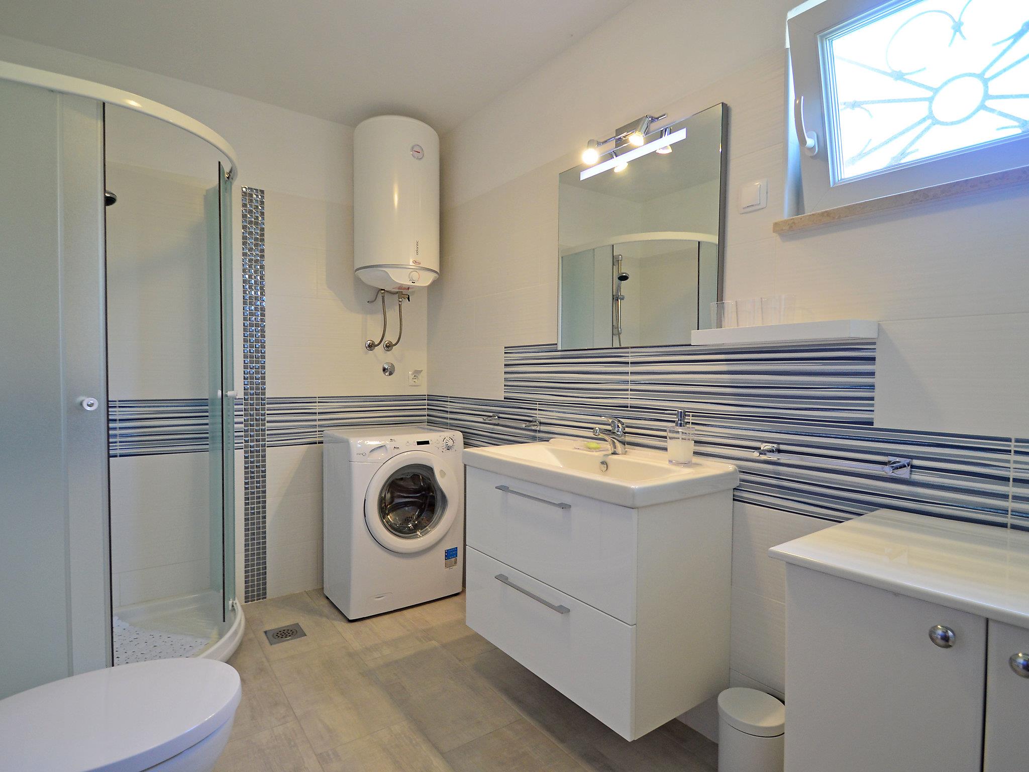 3-room apartment 60 m2 on 1st floor, south-east facing position. Fully renovated in 2016: living/dining room with 1 sofabed (120 cm, length 190 cm), satellite TV (flat screen), air conditioning. 1 room with 1 french bed (160 cm, length 200 cm). 1 room with 1 bed (100 cm, length 200 cm). Open kitchen (oven, dishwasher, 2 ceramic glass hob hotplates, microwave, freezer, electric coffee machine). Exit to the terrace. Shower/WC. No heating option. Terrace 25 m2 partly roofed. Terrace furniture, barbecue (portable). Panoramic view of the sea. Facilities: washing machine, baby cot, hair dryer. Internet (WiFi, free). Please note: private entrance. 2378