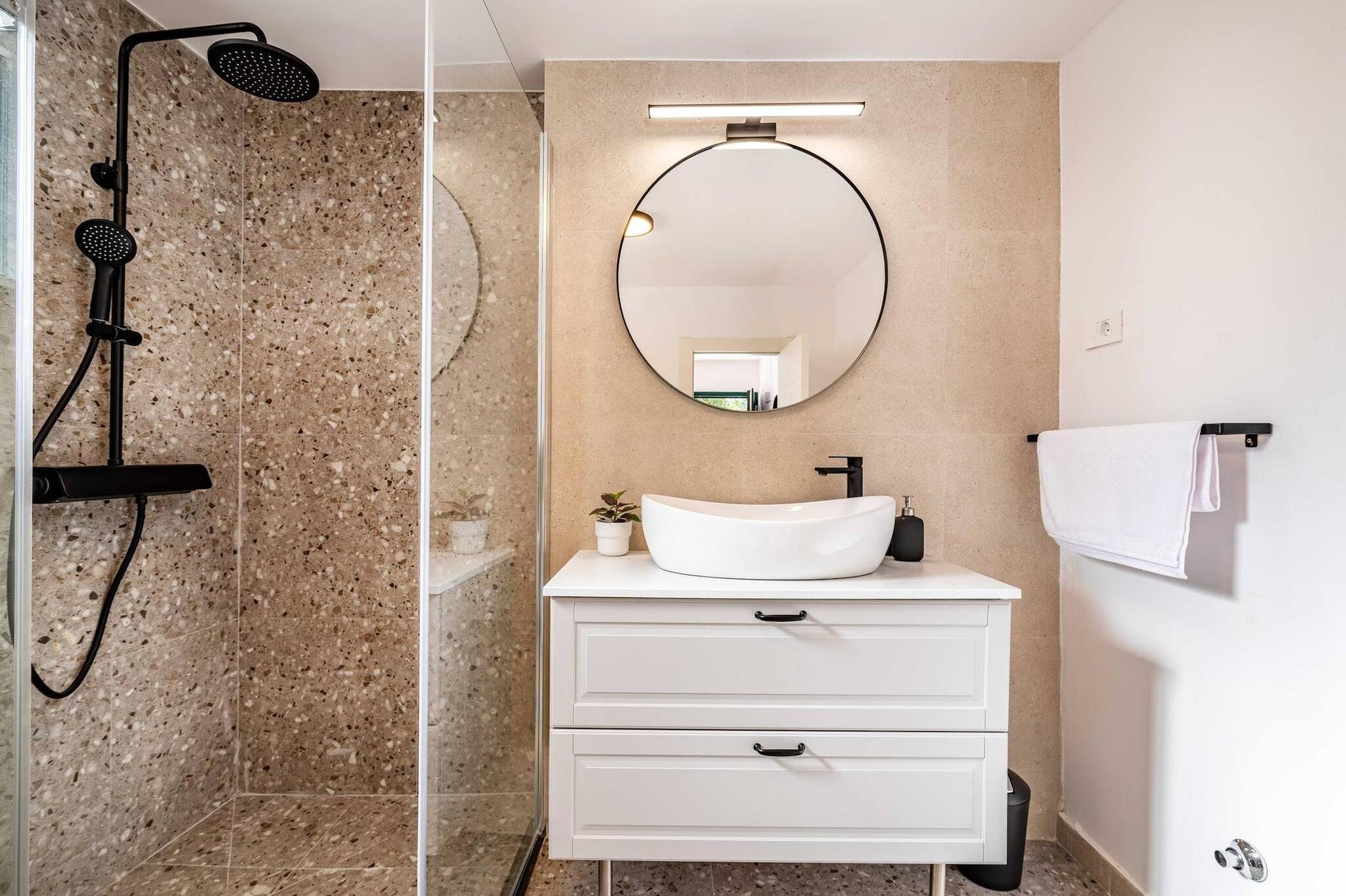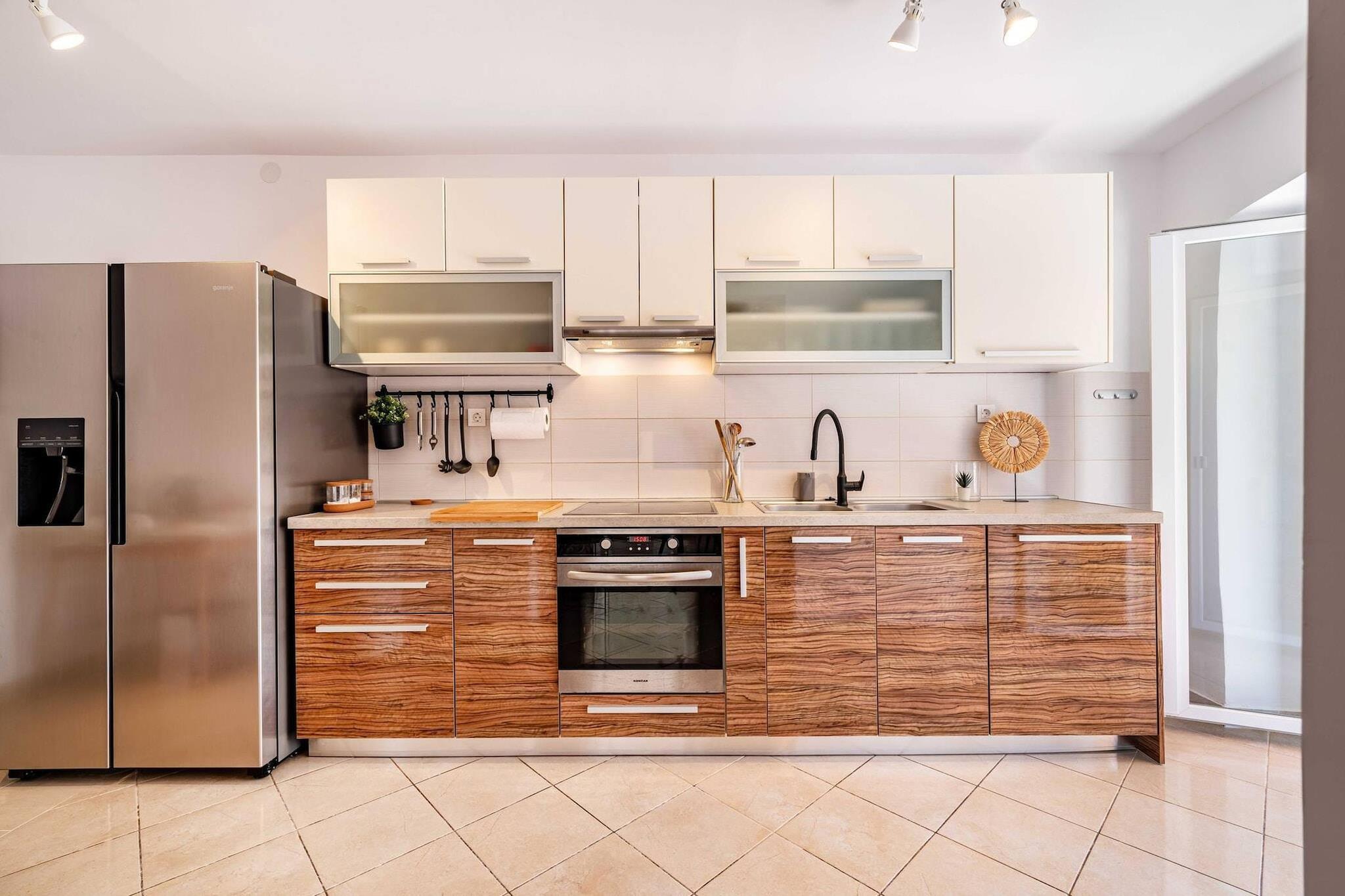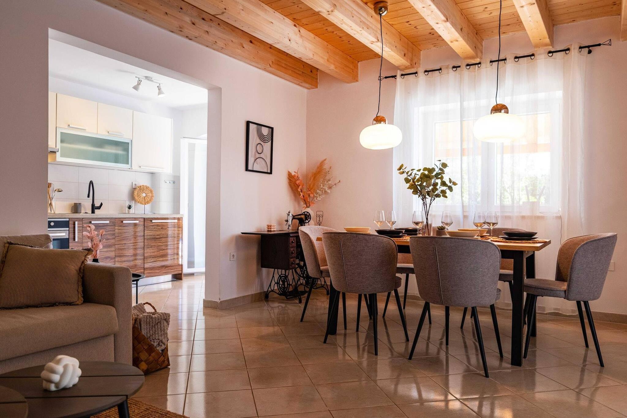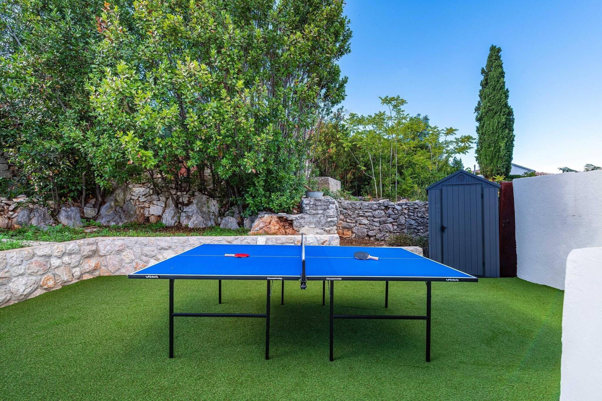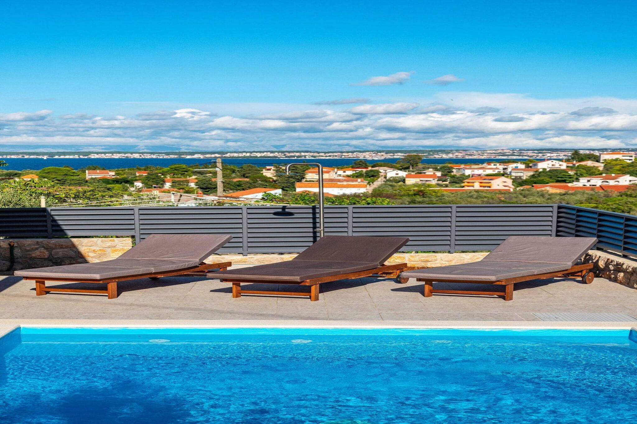 Denne moderne villa er perfekt beliggende i den rolige kystby Lukoran på øen Ugljan, kun 300 meter fra stranden. Den er designet med komfort og stil for øje og tilbyder privat pool, panoramaudsigt over havet og afslappende omgivelser, der er ideelle for op til otte personer. Udvalgt på grund af sine fremragende faciliteter og gæstfri vært, tilbyder den den perfekte balance mellem ro og nem adgang til havet. Villaen har en lys stue med spiseplads i åbent plan med fuldt udstyret køkken, tre airconditionerede soveværelser og to moderne badeværelser. Hvert soveværelse er udstyret med Smart TV med adgang til Netflix, så der er underholdning for alle. Udenfor kan gæsterne benytte sig af en privat swimmingpool med modstrømsanlæg, en volleyball- og basketballbane samt en overdækket terrasse med grill og et stort spisebord med udsigt over Adriaterhavet. En lounge og et bordtennisbord tilføjer glæde, mens liggestole og en bruser ved poolen giver plads til afslapning. Ejendommen ligger i nærheden af Preko og har gode færgeforbindelser til Zadar, hvilket giver nem adgang til restauranter, butikker og attraktioner. Den nærmeste sten- og sandstrand med gratis liggestole og brusere ligger kun få minutter væk. Med sin kombination af komfort, udsigt og fantastiske beliggenhed er denne villa det perfekte valg for familier eller venner, der søger en afslappende ferie på en ø med masser af udendørsaktiviteter.
