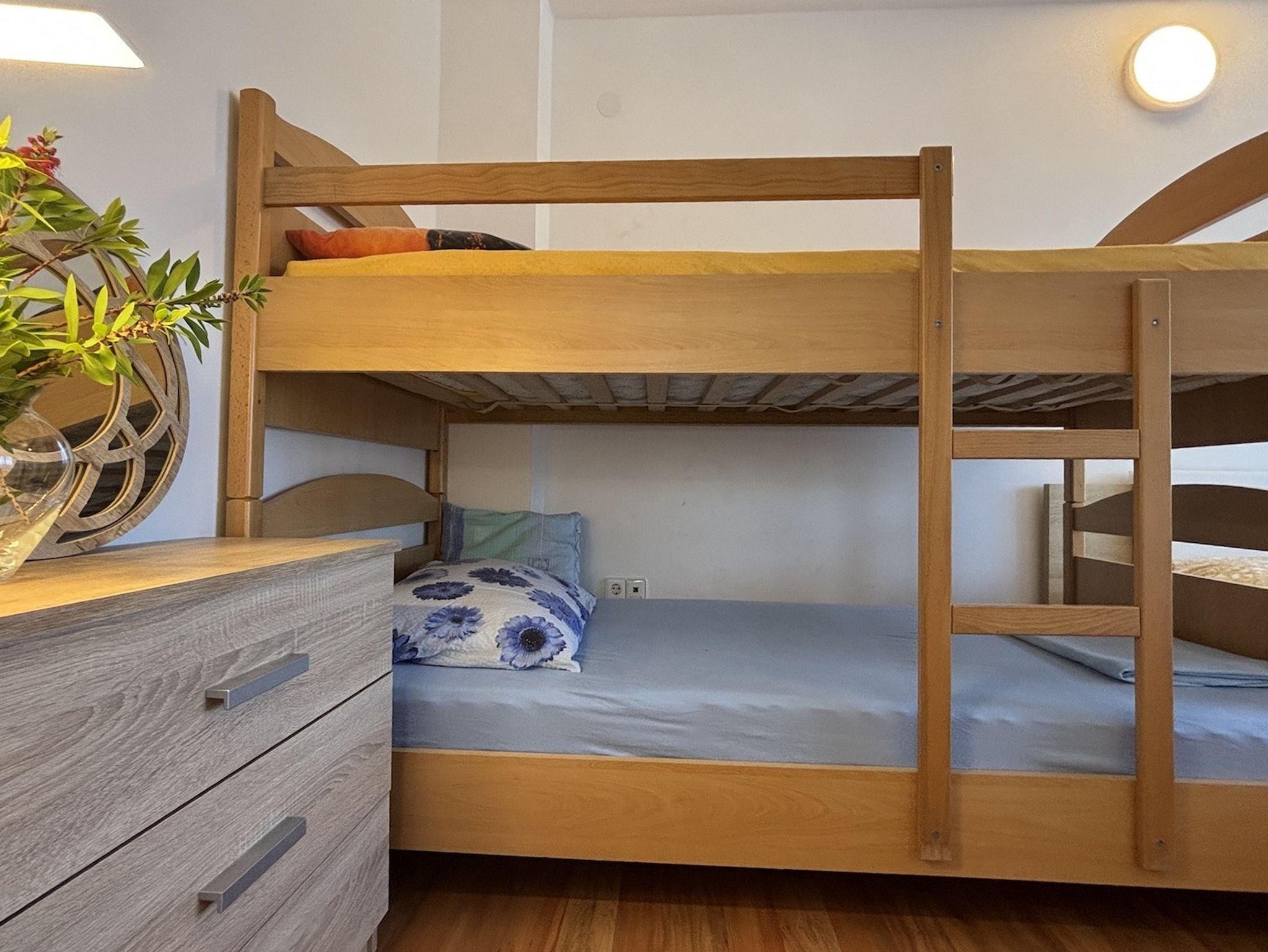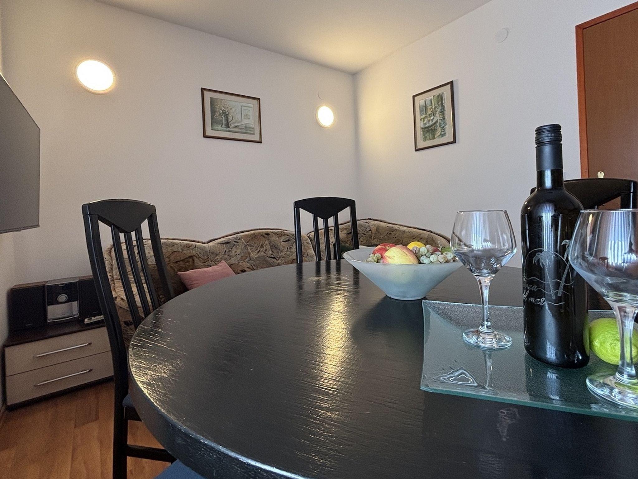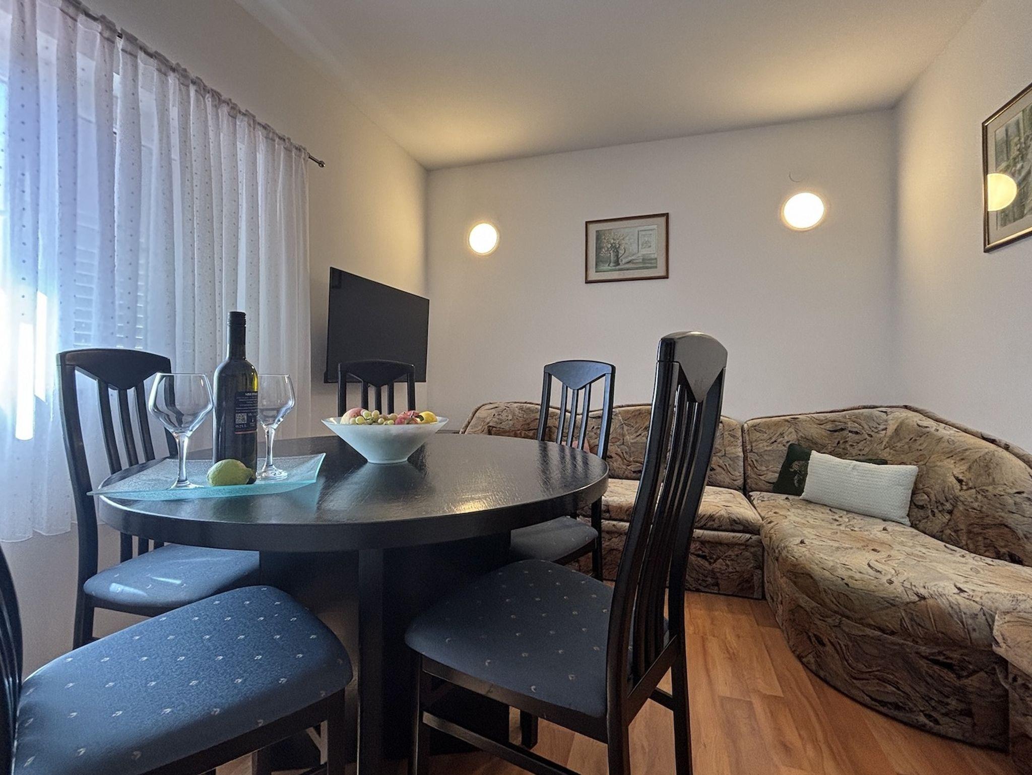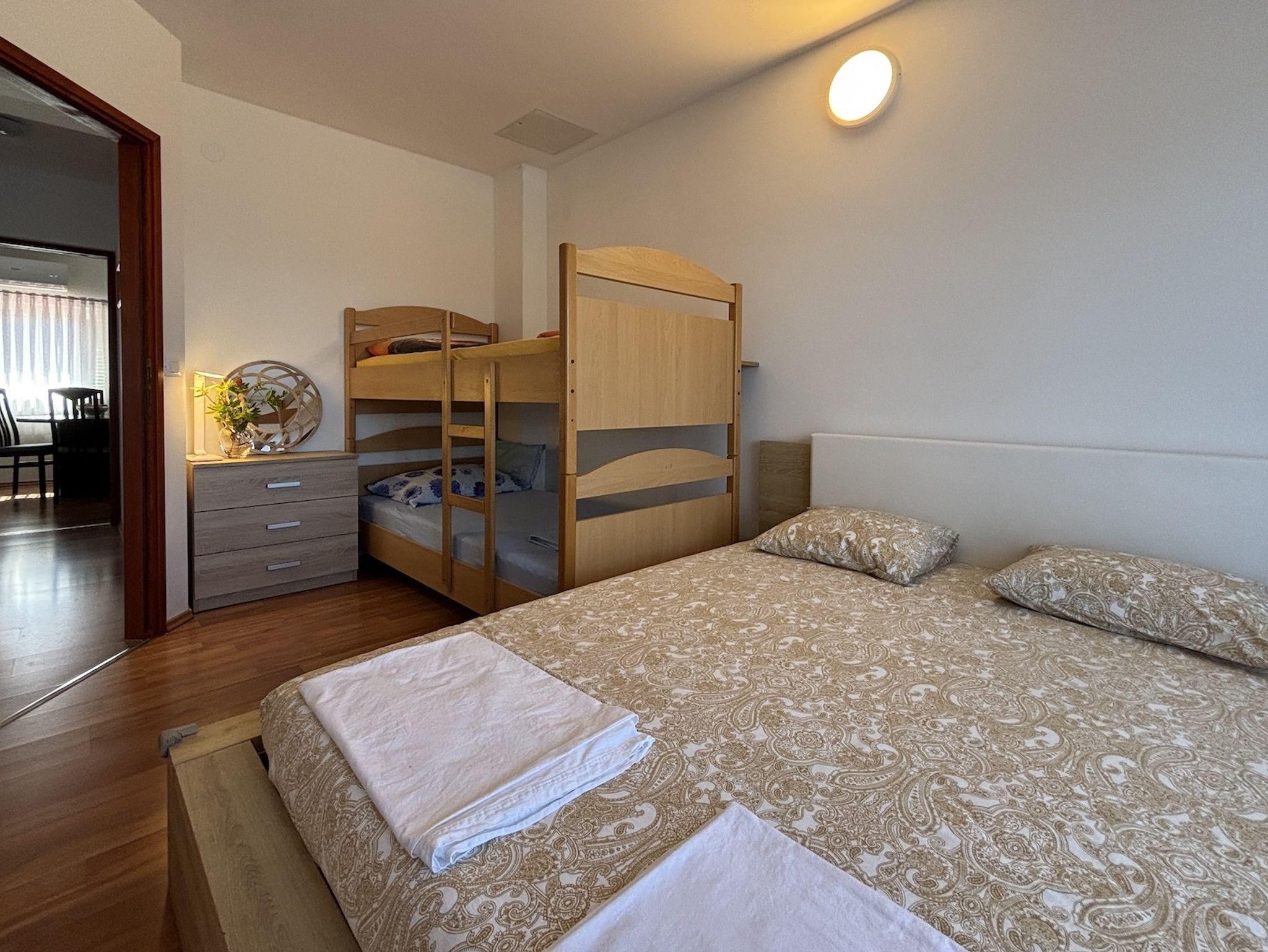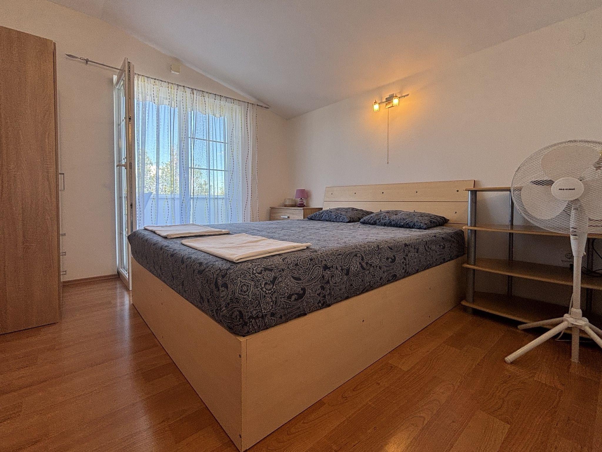 Ferienwohnung bietet Platz für 6 Gäste. Die Betten sind in Schlafzimmern, die es 2 gibt, innerhalb einer Gesamtfläche von 48m2, angeordnet. Die Gäste haben einen eigenen Balkon zur Verfügung, auf der sie in warmen Sommernächten genießen können. Das Apartment bietet Meerblick. Für vollen Genuss und Entspannung gibt es einen privaten Grill für Gäste dieser Unterkunft. In der Unterkunftseinheit besteht die Möglichkeit des Mitbringens von Haustieren gegen Aufpreis. IM PREIS INBEGRIFFEN: Kurtaxe, Endreinigung, Klimatisierung, Parkplatz, Internet, Bügeleisen, Bügelbrett, Föhn. UNVERBINDLICHE ZUSÄTZLICHE KOSTEN: Haustiere (5,00 € pro Nacht). Die Verfügbarkeit zusätzlicher Dienstleistungen in Ihrem reservierten Termin und die Preise derselben (falls nicht aufgeführt) müssen im Voraus überprüft werden. Zusätzliche Dienstleistungen die in der Zahlungsaufforderung nicht aufgeführt sind werden direkt beim Vermieter bezahlt, angenommen der Gast nutzt auch diese.