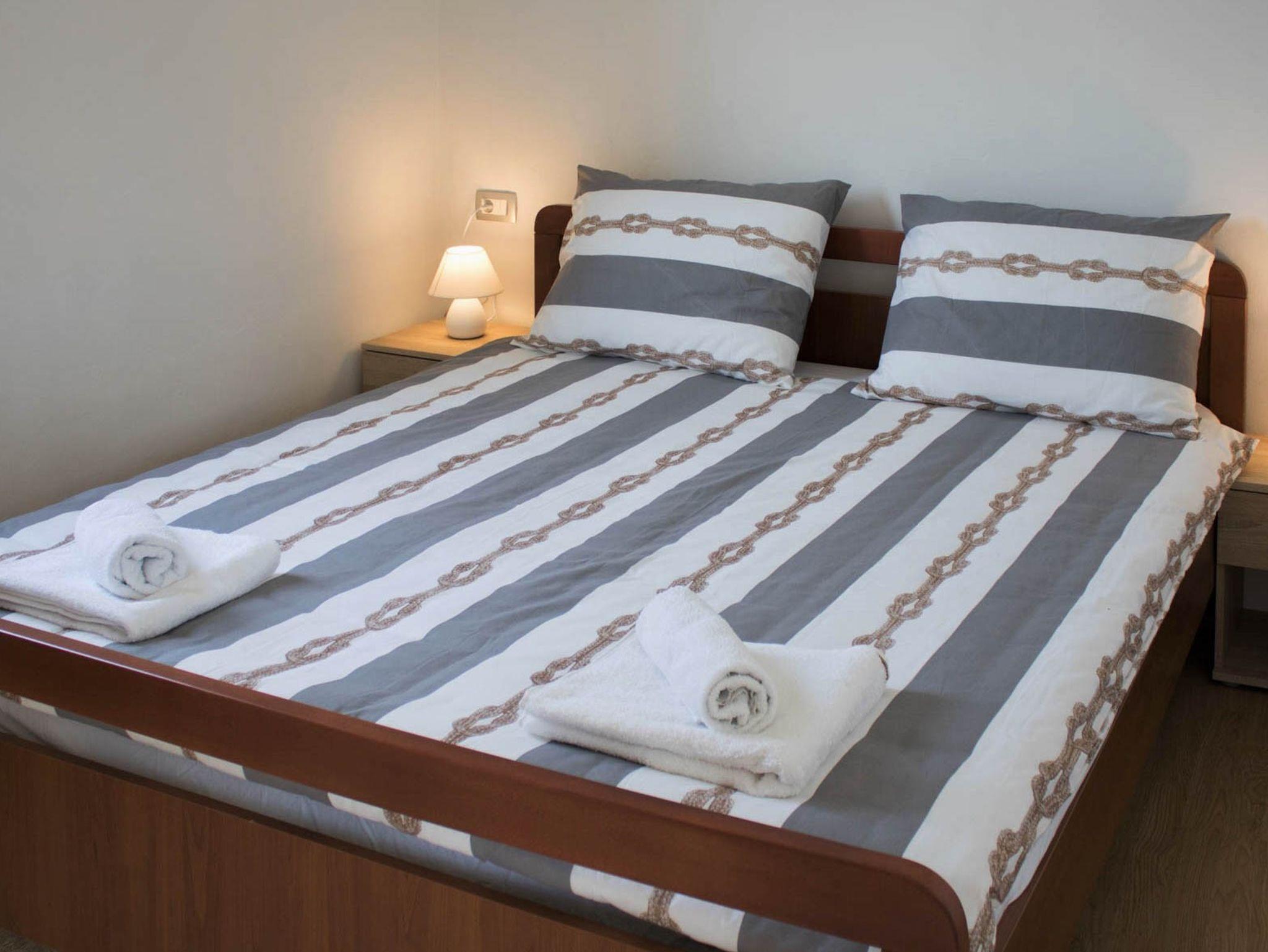 Ferienwohnung bietet Platz für 4 Gäste. Die Betten sind in Schlafzimmern, die es 1 gibt, und in Esszimmer, innerhalb einer Gesamtfläche von 37m2, angeordnet. Die Gäste haben eine eigene Terrasse zur Verfügung, auf der sie in warmen Sommernächten genießen können. Es ist erlaubt, Speisen auf dem Gemeinschafts-Grill vorzubereiten. IM PREIS INBEGRIFFEN: Kurtaxe, Endreinigung, Klimatisierung, Parkplatz, Internet, Bügeleisen, Bügelbrett, Föhn, tragbarer Grill. VERBINDLICHE ZUSÄTZLICHE KOSTEN: Aufzahlung für Kurzaufenthalte (prozentualer Zuschlag pro Nächtigungsanzahl: 30% - 1, 20% - 2, 10% - 3). Die Verfügbarkeit zusätzlicher Dienstleistungen in Ihrem reservierten Termin und die Preise derselben (falls nicht aufgeführt) müssen im Voraus überprüft werden. Zusätzliche Dienstleistungen die in der Zahlungsaufforderung nicht aufgeführt sind werden direkt beim Vermieter bezahlt, angenommen der Gast nutzt auch diese.