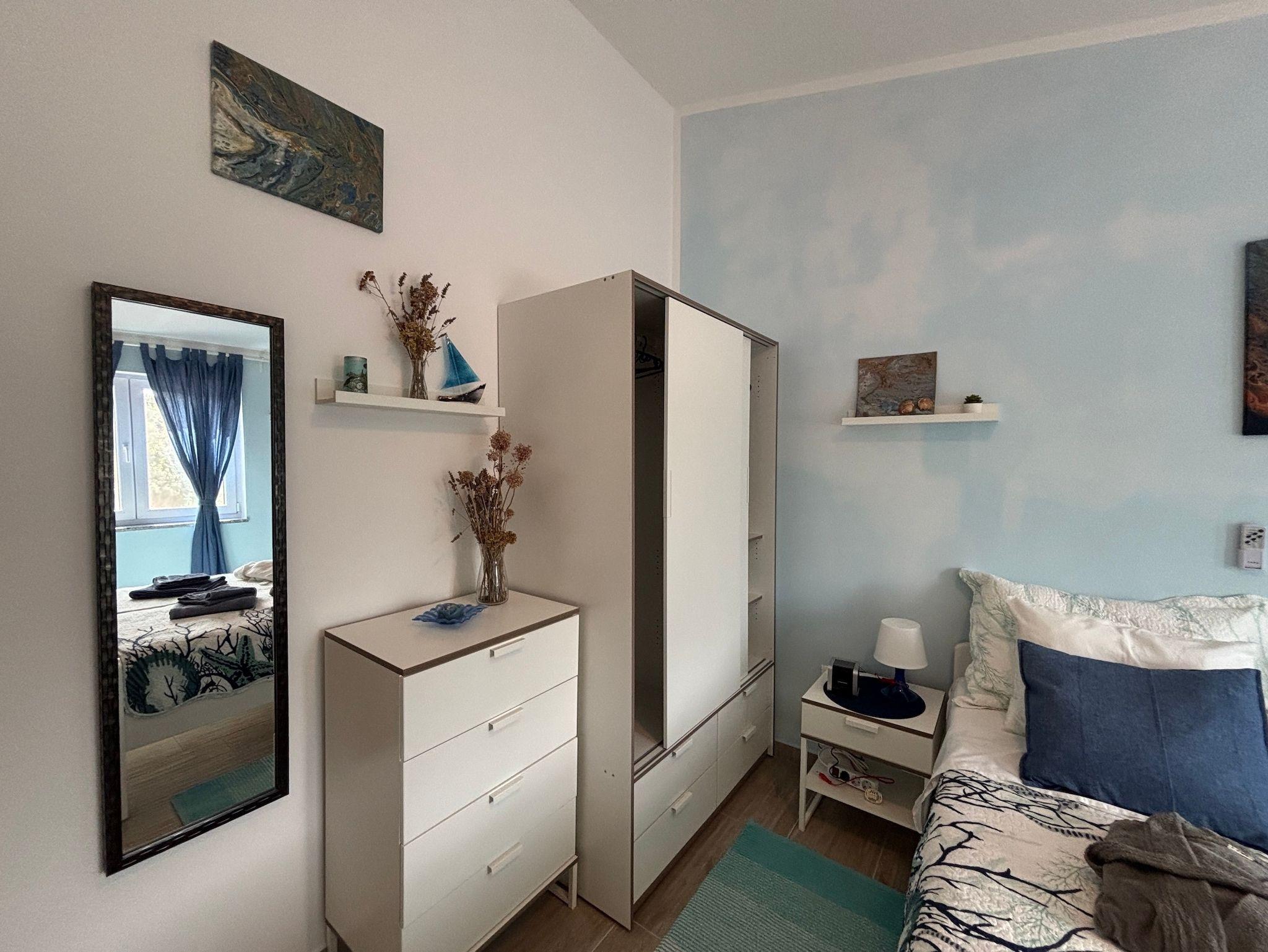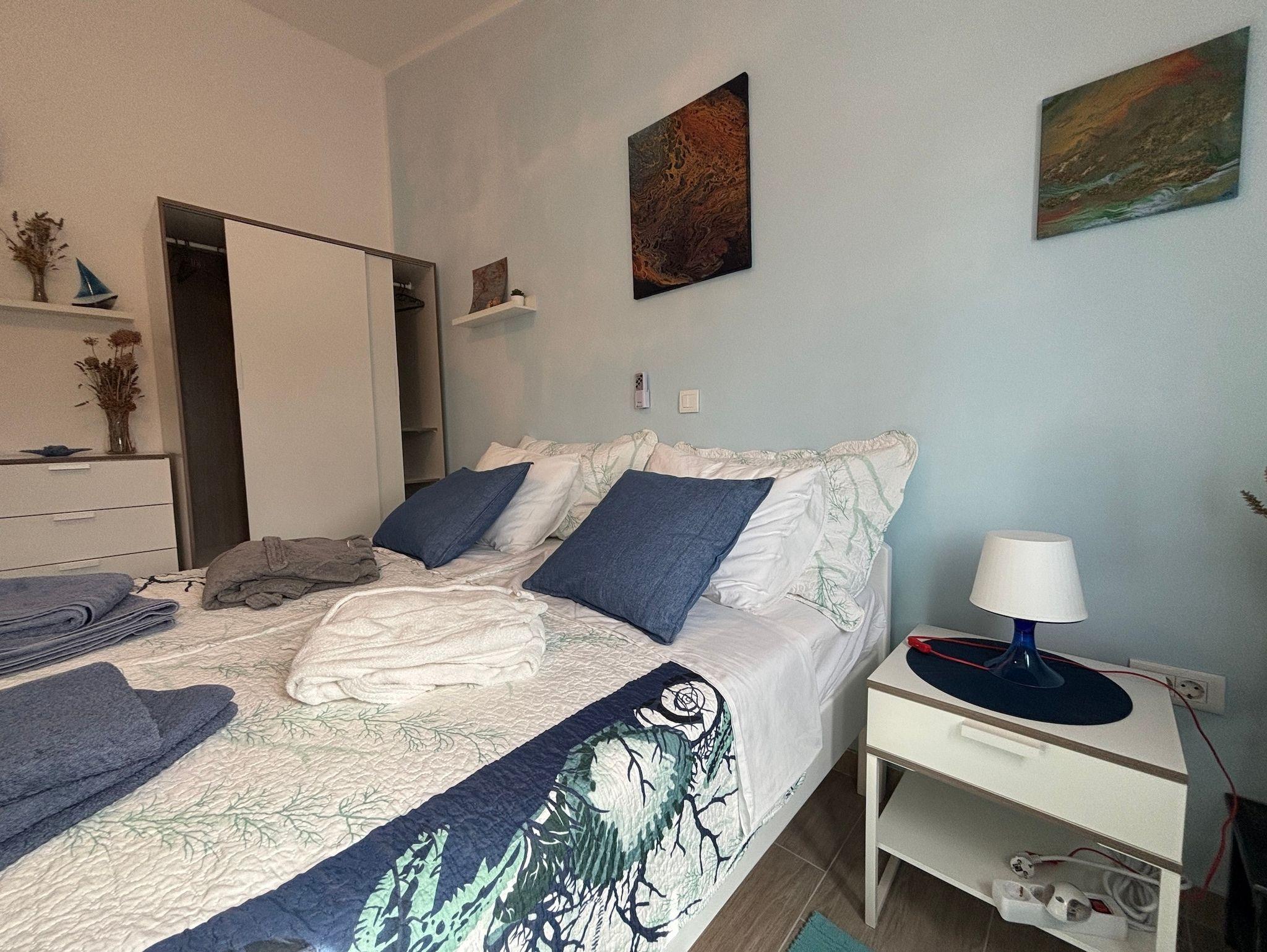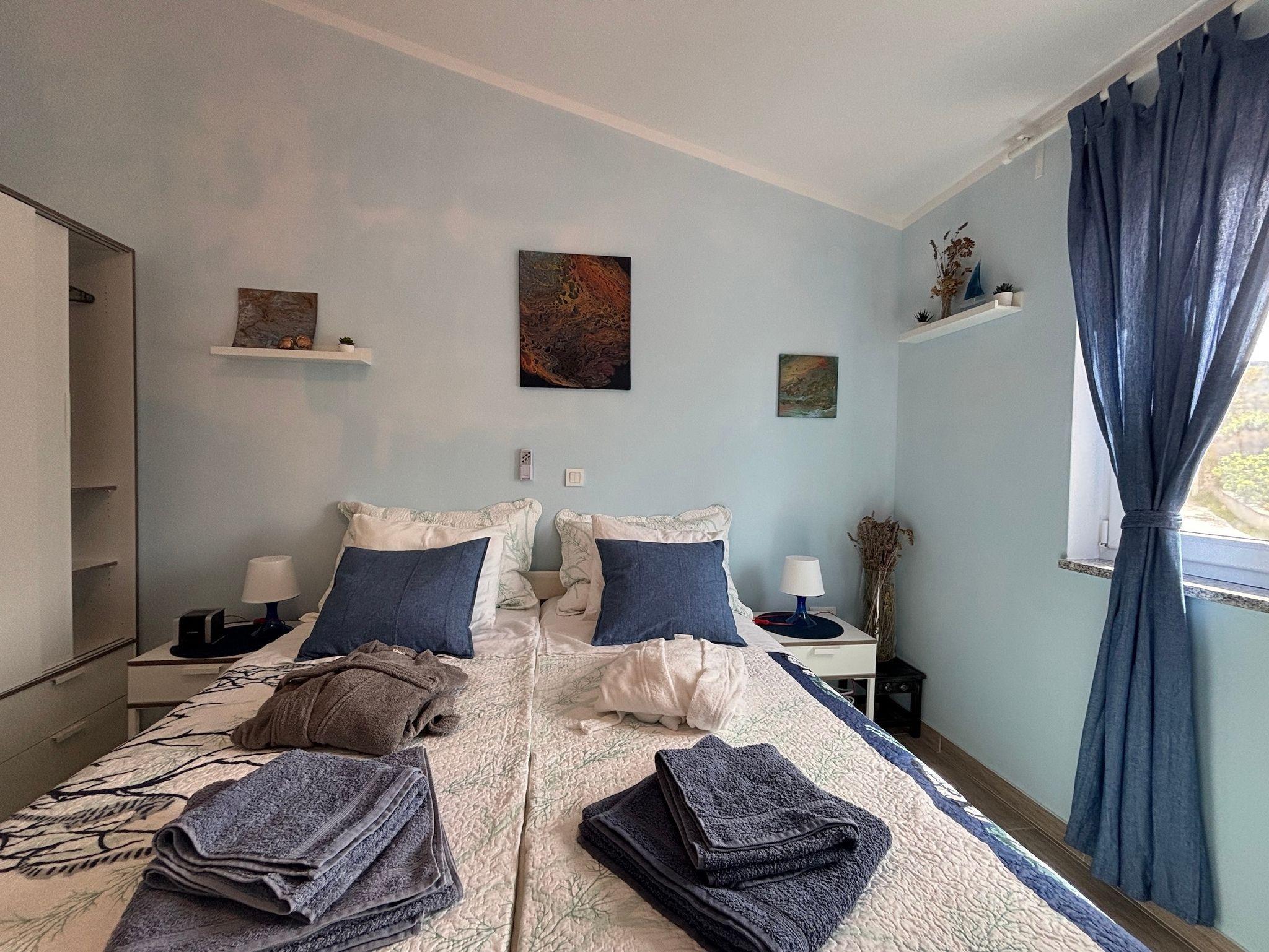 Ferienwohnung bietet Platz für 4 Gäste. Die Betten sind in Schlafzimmern, die es 2 gibt, innerhalb einer Gesamtfläche von 54m2, angeordnet. Die Gäste haben eine eigene Terrasse zur Verfügung, auf der sie in warmen Sommernächten genießen können. Das Apartment bietet Meerblick. Es ist erlaubt, Speisen auf dem Gemeinschafts-Grill vorzubereiten. In der gebuchten Unterkunftseinheit zahlt man am Ort ein Depositum ( der Preis ist an der Internetseite angeführt ). IM PREIS INBEGRIFFEN: Kurtaxe, Endreinigung, Klimatisierung, Zentralheizung, Parkplatz, Internet, Bügeleisen, Bügelbrett, Föhn, tragbarer Grill. VERBINDLICHE ZUSÄTZLICHE KOSTEN: Kaution (500,00 € Einmalzahlung). UNVERBINDLICHE ZUSÄTZLICHE KOSTEN: Zusatzbett (15,00 € pro Nacht). Die Verfügbarkeit zusätzlicher Dienstleistungen in Ihrem reservierten Termin und die Preise derselben (falls nicht aufgeführt) müssen im Voraus überprüft werden. Zusätzliche Dienstleistungen die in der Zahlungsaufforderung nicht aufgeführt sind werden direkt beim Vermieter bezahlt, angenommen der Gast nutzt auch diese.