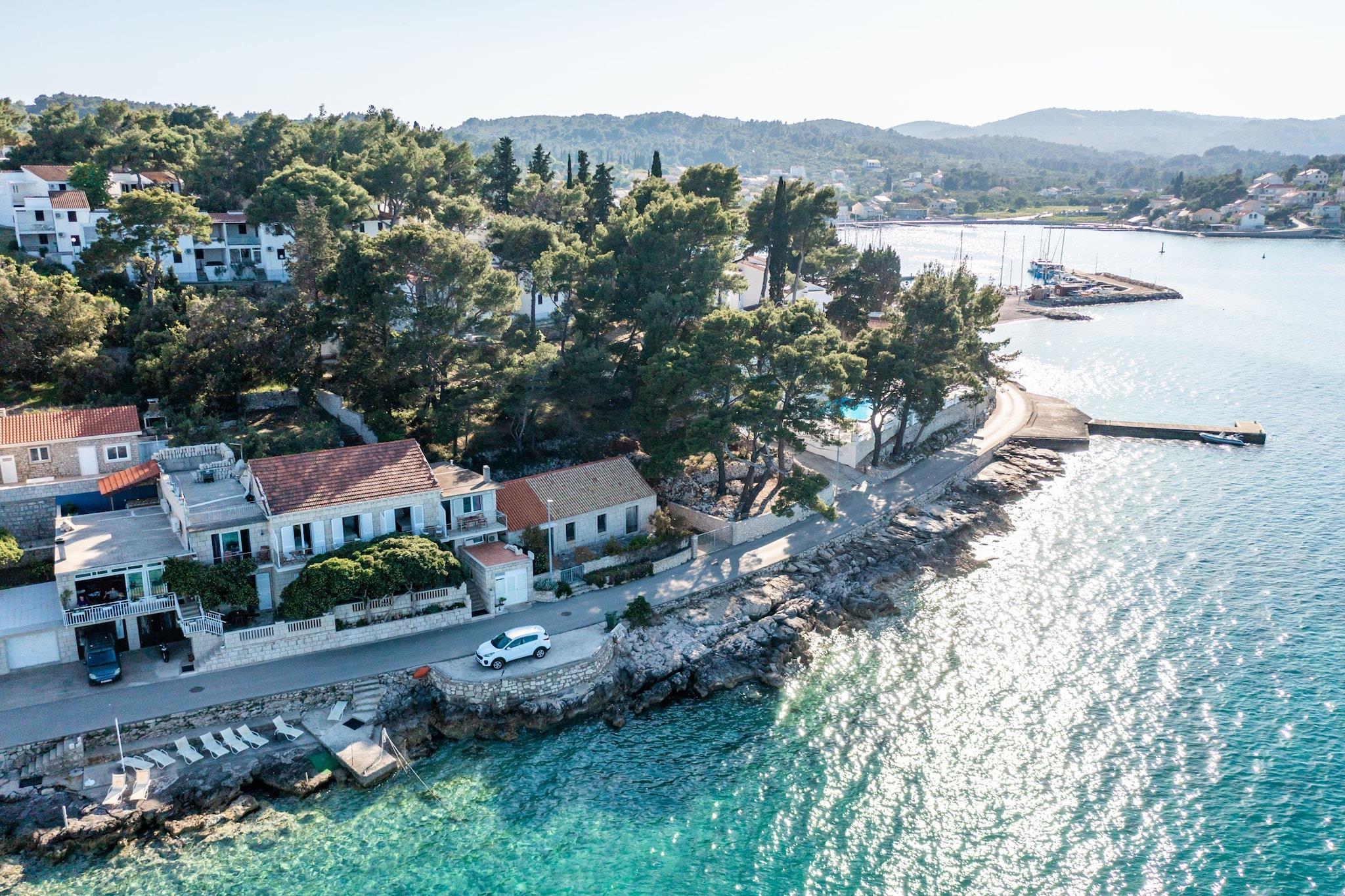 Apartments Nikolina ligger i Lumbarda, en lille landsby på den østlige kappe af øen Korcula. Ejendommen ligger lige ved havet og har en privat strand med liggestole og parasoller. Morgenmad er inkluderet i prisen. Bagageopbevaring før indtjekning og efter udtjekning er tilgængelig.Privat parkering er gratis på stedet. Kæledyr er tilladt efter anmodning. Bemærk venligst, at der kan opkræves gebyrer. Denne dejlige lejlighed med 1 soveværelse passer perfekt til op til fem personer. Det har aircondition, fladskærms-satellit-tv og tekøkken med spiseplads. Der er eget badeværelse med bruser og hårtørrer. Møbleret balkon med havudsigt er til gæsternes rådighed.Privat strand med liggestole og parasoller er til rådighed.Strygefaciliteter, vaskemaskine og barneseng er tilgængelige efter anmodning.Lejligheden ligger lige ved havet og har egen indgang til havet. Der er liggestole og parasoller. Tatinja sandstrand med meget gradvis adgang til havet ligger 60 meter fra huset og er ideel til små børn. Strandstenen ligger 200 m væk. Marked, restaurant, café og hæveautomat kan findes inden for 200 m fra ejendommen.Den nærmeste lufthavn er Dubrovnik Lufthavn, 124 km væk.(færgetur inkluderet)