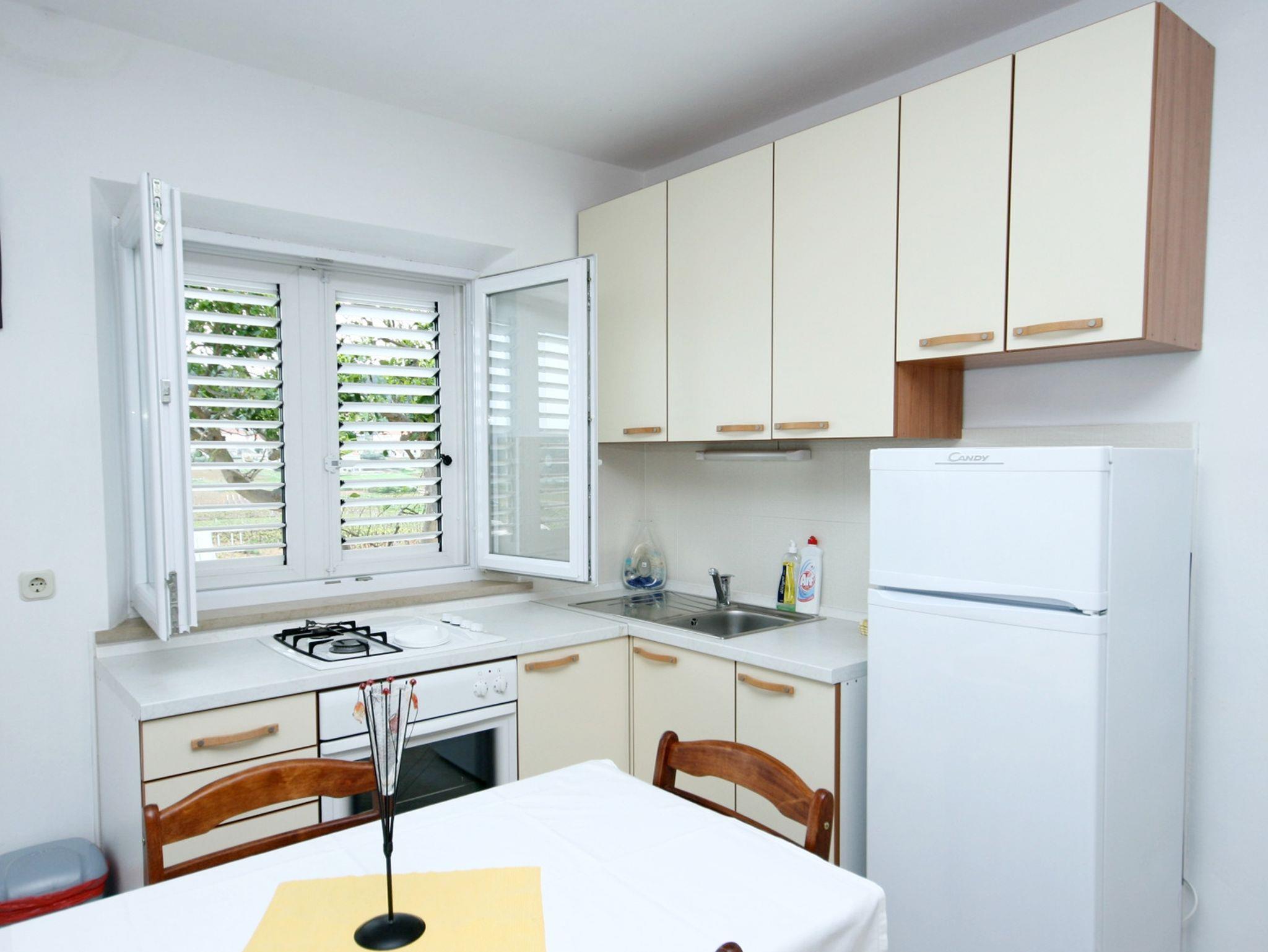 Ferienwohnung bietet Platz für 4 Gäste. Die Betten sind in Schlafzimmern, die es 1 gibt, und in Wohnzimmer, innerhalb einer Gesamtfläche von 30m2, angeordnet. Die Gäste haben eine eigene Terrasse zur Verfügung, auf der sie in warmen Sommernächten genießen können. Das Apartment bietet Meerblick. Es ist erlaubt, Speisen auf dem Gemeinschafts-Grill vorzubereiten. IM PREIS INBEGRIFFEN: Kurtaxe, Endreinigung, Klimatisierung, Parkplatz, Internet, Kinderbett, Bügeleisen, Bügelbrett, Föhn. VERBINDLICHE ZUSÄTZLICHE KOSTEN: Aufzahlung für Kurzaufenthalte (prozentualer Zuschlag pro Nächtigungsanzahl: 30% - 1, 20% - 2, 10% - 3). UNVERBINDLICHE ZUSÄTZLICHE KOSTEN: Boot (53,00 € pro Nacht). Die Verfügbarkeit zusätzlicher Dienstleistungen in Ihrem reservierten Termin und die Preise derselben (falls nicht aufgeführt) müssen im Voraus überprüft werden. Zusätzliche Dienstleistungen die in der Zahlungsaufforderung nicht aufgeführt sind werden direkt beim Vermieter bezahlt, angenommen der Gast nutzt auch diese.