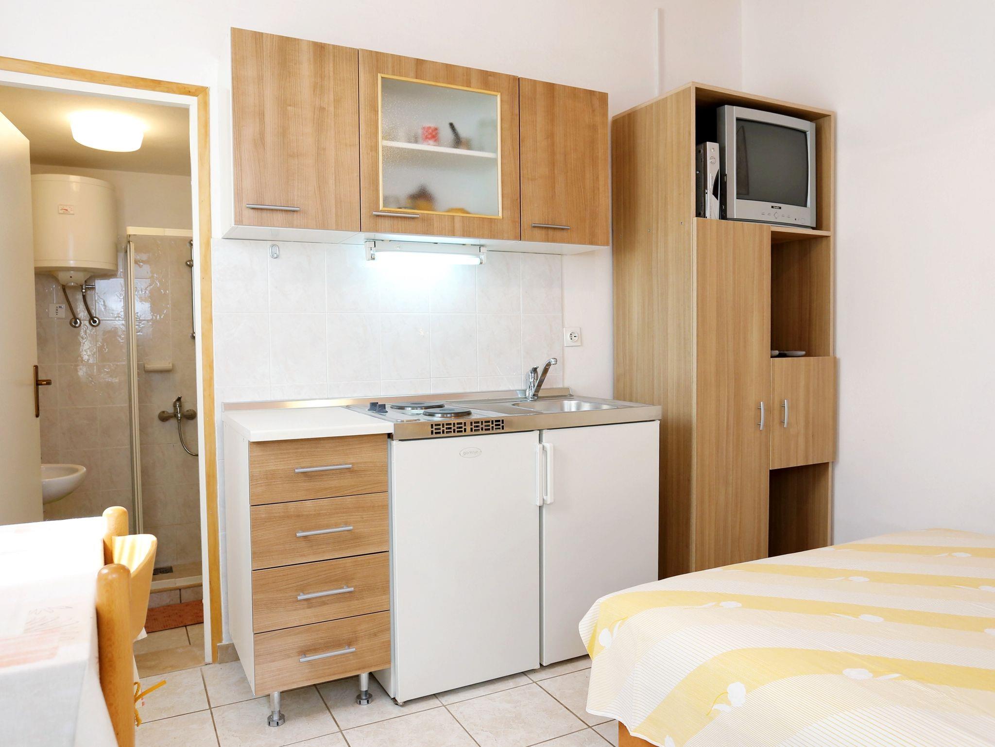 Studio bietet Platz für 2 Gäste. Die Betten sind in Schlafzimmern, die es 1 gibt, innerhalb einer Gesamtfläche von 13m2, angeordnet. Die Gäste haben eine eigene Terrasse zur Verfügung, auf der sie in warmen Sommernächten genießen können. Es ist erlaubt, Speisen auf dem Gemeinschafts-Grill vorzubereiten. In der Unterkunftseinheit besteht die Möglichkeit des Mitbringens von Haustieren, und die Dienstleistung ist im Preis der Unterkunft enthalten. IM PREIS INBEGRIFFEN: Kurtaxe, Endreinigung, Klimatisierung, Parkplatz, Internet, Bootsanlegeplatz, Haustiere, Kinderbett, Bügeleisen, Bügelbrett, Föhn. VERBINDLICHE ZUSÄTZLICHE KOSTEN: Aufzahlung für Kurzaufenthalte (prozentualer Zuschlag pro Nächtigungsanzahl: 30% - 1, 20% - 2, 10% - 3). UNVERBINDLICHE ZUSÄTZLICHE KOSTEN: Frühstück (10,00 €, 50% Nachlass für Kinder zwischen 4 und 12 Jahren, Kinder bis 4 Jahre sind frei.), Fahrrad (10,00 € täglich (pro Stück)). Die Verfügbarkeit zusätzlicher Dienstleistungen in Ihrem reservierten Termin und die Preise derselben (falls nicht aufgeführt) müssen im Voraus überprüft werden. Zusätzliche Dienstleistungen die in der Zahlungsaufforderung nicht aufgeführt sind werden direkt beim Vermieter bezahlt, angenommen der Gast nutzt auch diese.