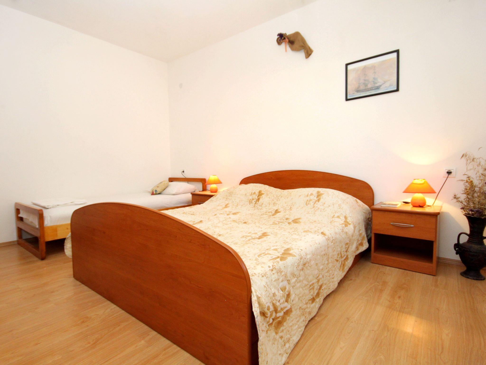 Ferienwohnung bietet Platz für 5 Gäste. Die Betten sind in Schlafzimmern, die es 2 gibt, innerhalb einer Gesamtfläche von 73m2, angeordnet. Die Gäste haben eine eigene Terrasse zur Verfügung, auf der sie in warmen Sommernächten genießen können. Das Apartment bietet Meerblick. Es ist erlaubt, Speisen auf dem Gemeinschafts-Grill vorzubereiten. IM PREIS INBEGRIFFEN: Kurtaxe, Endreinigung, Klimatisierung, Parkplatz, Internet, Wäschewaschen, Kinderbett, Zusatzbett, Bügeleisen, Bügelbrett, Föhn. VERBINDLICHE ZUSÄTZLICHE KOSTEN: Aufzahlung für Kurzaufenthalte (prozentualer Zuschlag pro Nächtigungsanzahl: 30% - 1, 20% - 2, 10% - 3). Die Verfügbarkeit zusätzlicher Dienstleistungen in Ihrem reservierten Termin und die Preise derselben (falls nicht aufgeführt) müssen im Voraus überprüft werden. Zusätzliche Dienstleistungen die in der Zahlungsaufforderung nicht aufgeführt sind werden direkt beim Vermieter bezahlt, angenommen der Gast nutzt auch diese. Ermäßigung auf den Grundpreis: Gratistag 14=13 (bei einem Aufenthalt von 14 Tagen oder mehr erhalten Sie einen Gratistag für den Aufenthalt bis 31.12.26).