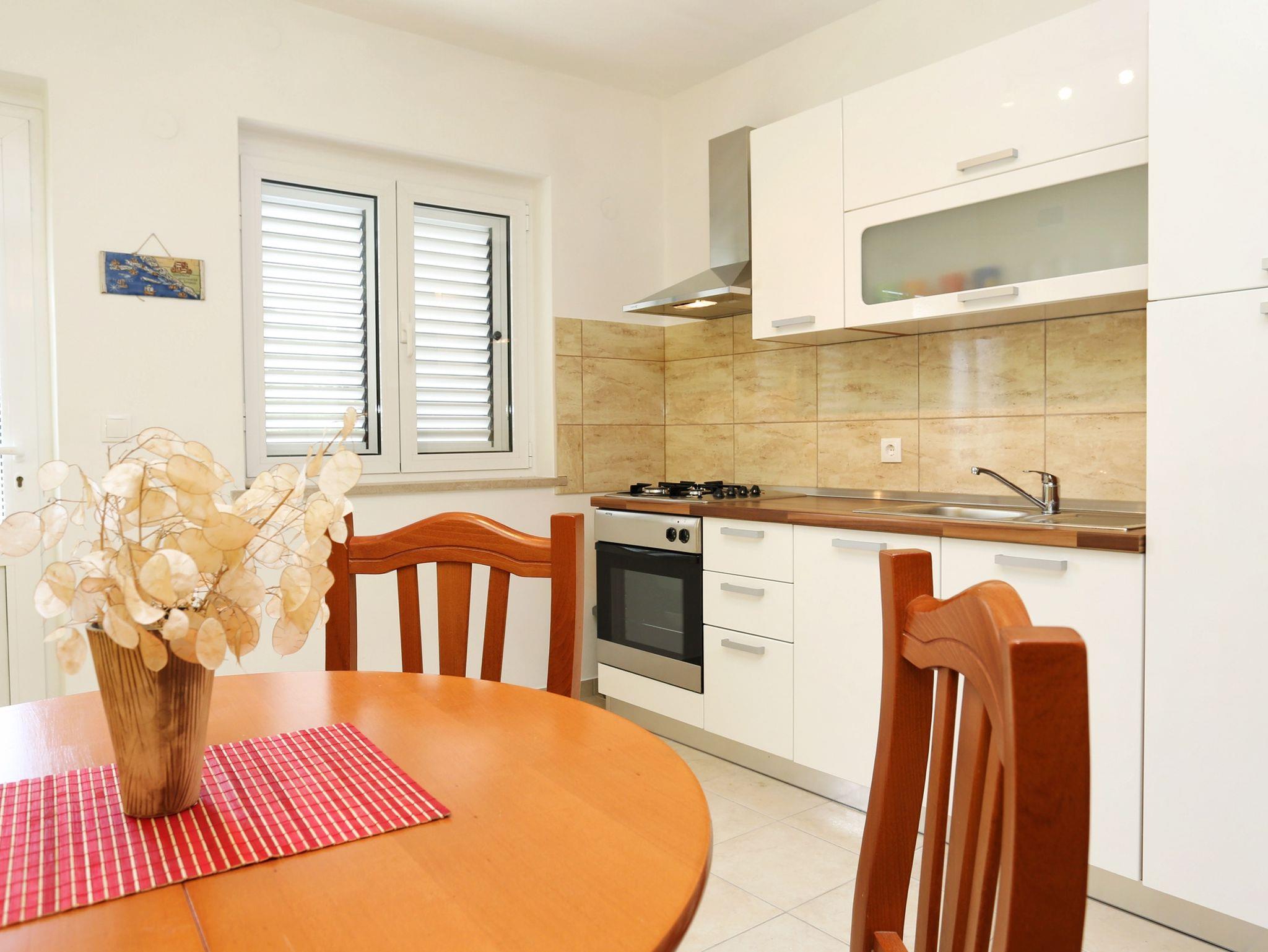 Ferienwohnung bietet Platz für 5 Gäste. Die Betten sind in Schlafzimmern, die es 2 gibt, und in Wohnzimmer, innerhalb einer Gesamtfläche von 51m2, angeordnet. Die Gäste haben eine eigene Terrasse zur Verfügung, auf der sie in warmen Sommernächten genießen können. Das Apartment bietet Meerblick. Es ist erlaubt, Speisen auf dem Gemeinschafts-Grill vorzubereiten. In der Unterkunftseinheit besteht die Möglichkeit des Mitbringens von Haustieren, und die Dienstleistung ist im Preis der Unterkunft enthalten. IM PREIS INBEGRIFFEN: Kurtaxe, Endreinigung, Klimatisierung, Parkplatz, Internet, Bootsanlegeplatz, Haustiere, Kinderbett, Bügeleisen, Bügelbrett, Föhn. VERBINDLICHE ZUSÄTZLICHE KOSTEN: Aufzahlung für Kurzaufenthalte (prozentualer Zuschlag pro Nächtigungsanzahl: 30% - 1, 20% - 2, 10% - 3). UNVERBINDLICHE ZUSÄTZLICHE KOSTEN: Frühstück (10,00 €, 50% Nachlass für Kinder zwischen 4 und 12 Jahren, Kinder bis 4 Jahre sind frei.), Fahrrad (10,00 € täglich (pro Stück)). Die Verfügbarkeit zusätzlicher Dienstleistungen in Ihrem reservierten Termin und die Preise derselben (falls nicht aufgeführt) müssen im Voraus überprüft werden. Zusätzliche Dienstleistungen die in der Zahlungsaufforderung nicht aufgeführt sind werden direkt beim Vermieter bezahlt, angenommen der Gast nutzt auch diese.