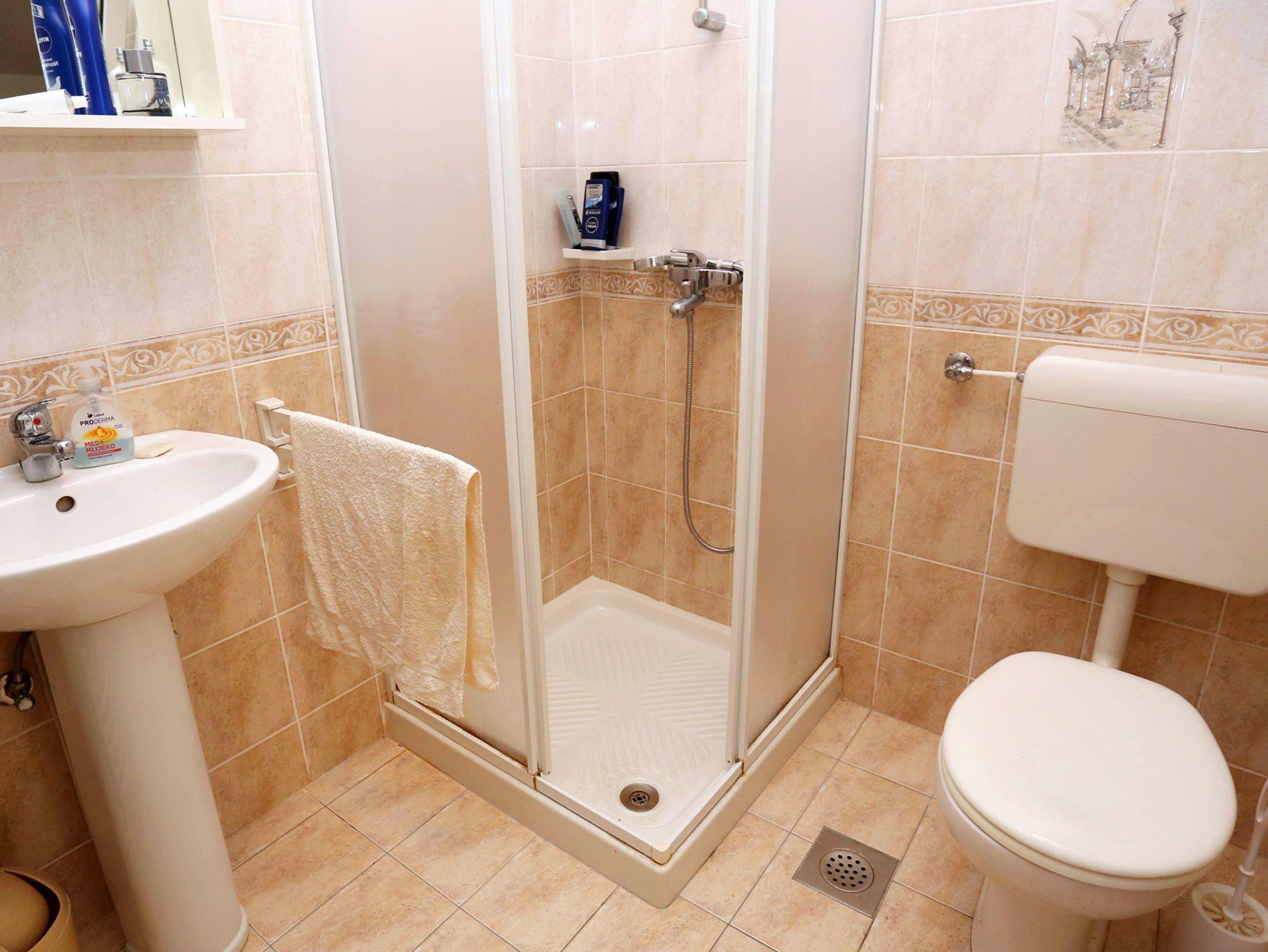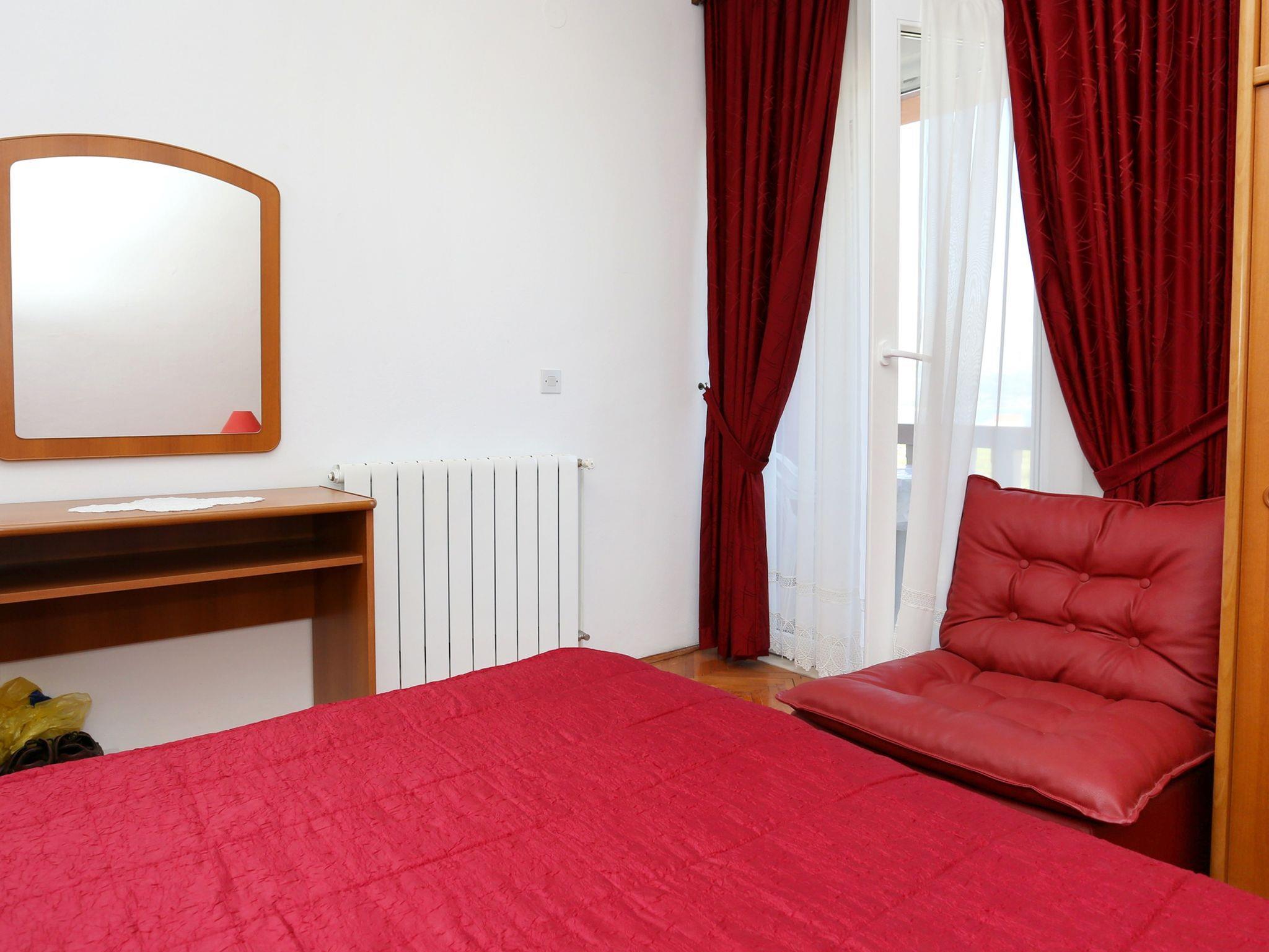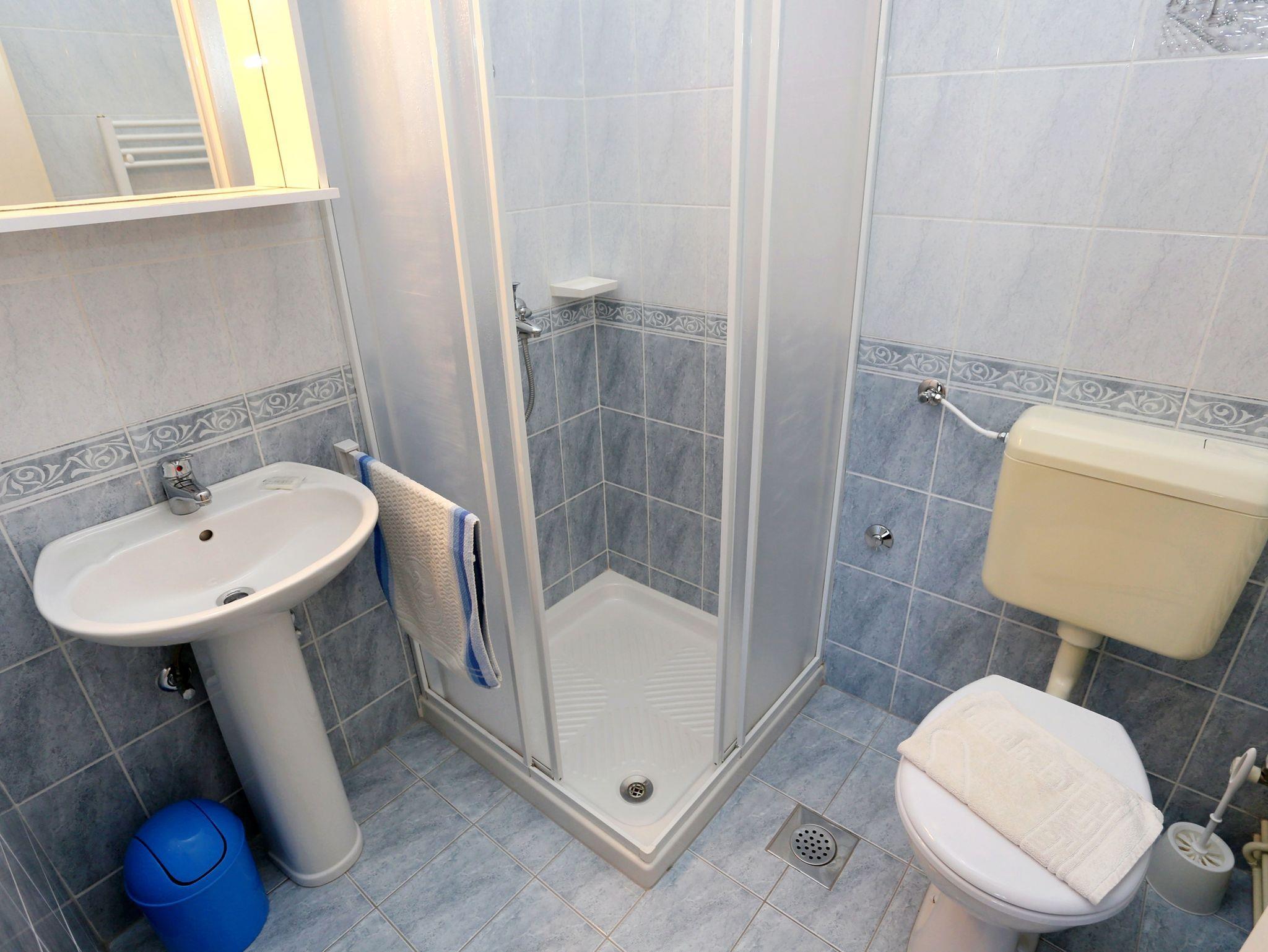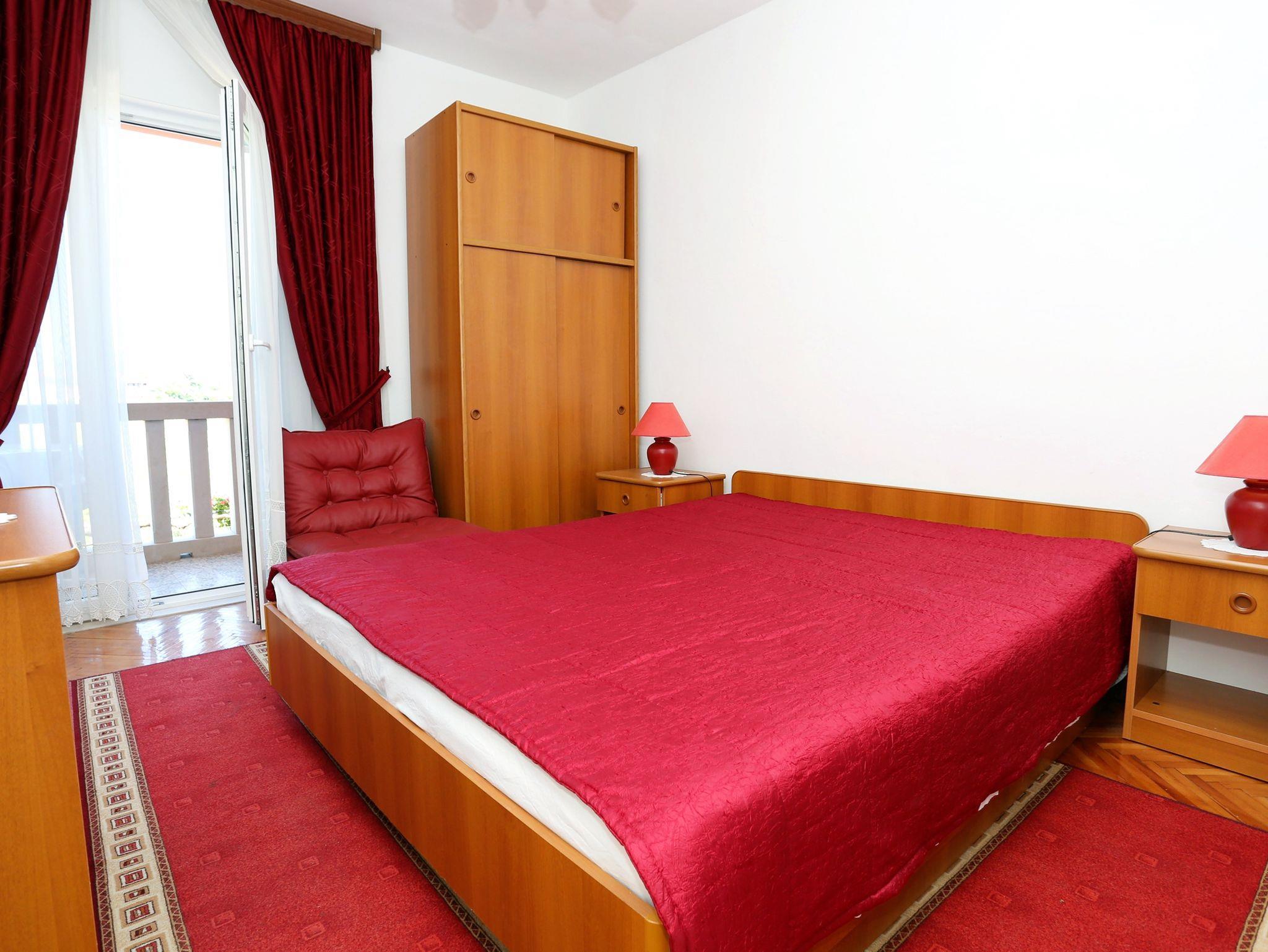 Ferienwohnung bietet Platz für 4 Gäste. Die Betten sind in Schlafzimmern, die es 2 gibt, innerhalb einer Gesamtfläche von 47m2, angeordnet. Die Gäste haben eine eigene Terrasse zur Verfügung, auf der sie in warmen Sommernächten genießen können. Das Apartment bietet Meerblick. Es ist erlaubt, Speisen auf dem Gemeinschafts-Grill vorzubereiten. In der Unterkunftseinheit besteht die Möglichkeit des Mitbringens von Haustieren, und die Dienstleistung ist im Preis der Unterkunft enthalten. IM PREIS INBEGRIFFEN: Kurtaxe, Endreinigung, Klimatisierung, Parkplatz, Internet, Wäschewaschen, Haustiere, Kinderbett, Bügeleisen, Bügelbrett, Föhn. VERBINDLICHE ZUSÄTZLICHE KOSTEN: Aufzahlung für Kurzaufenthalte (prozentualer Zuschlag pro Nächtigungsanzahl: 30% - 1, 20% - 2, 10% - 3). Die Verfügbarkeit zusätzlicher Dienstleistungen in Ihrem reservierten Termin und die Preise derselben (falls nicht aufgeführt) müssen im Voraus überprüft werden. Zusätzliche Dienstleistungen die in der Zahlungsaufforderung nicht aufgeführt sind werden direkt beim Vermieter bezahlt, angenommen der Gast nutzt auch diese.