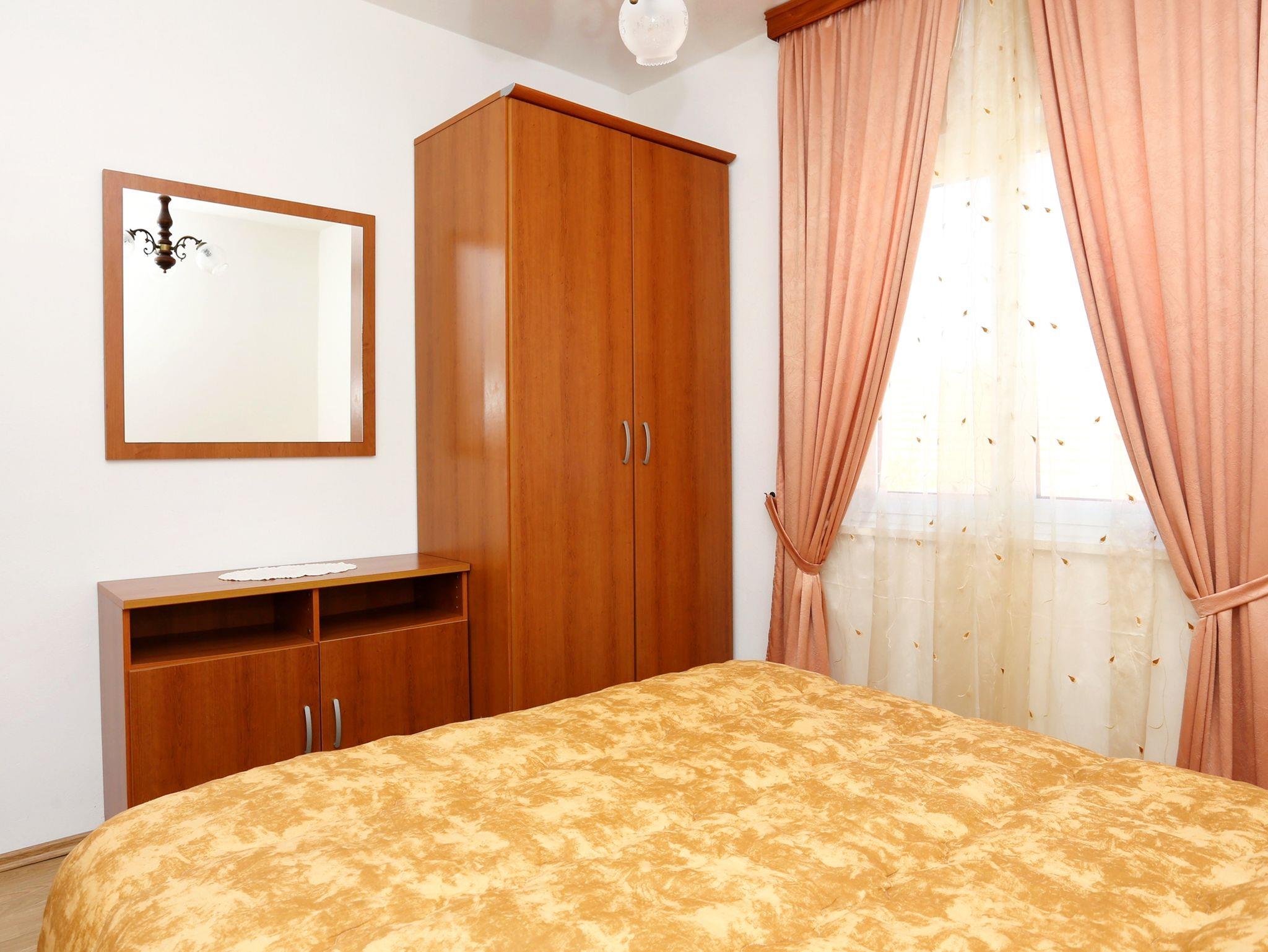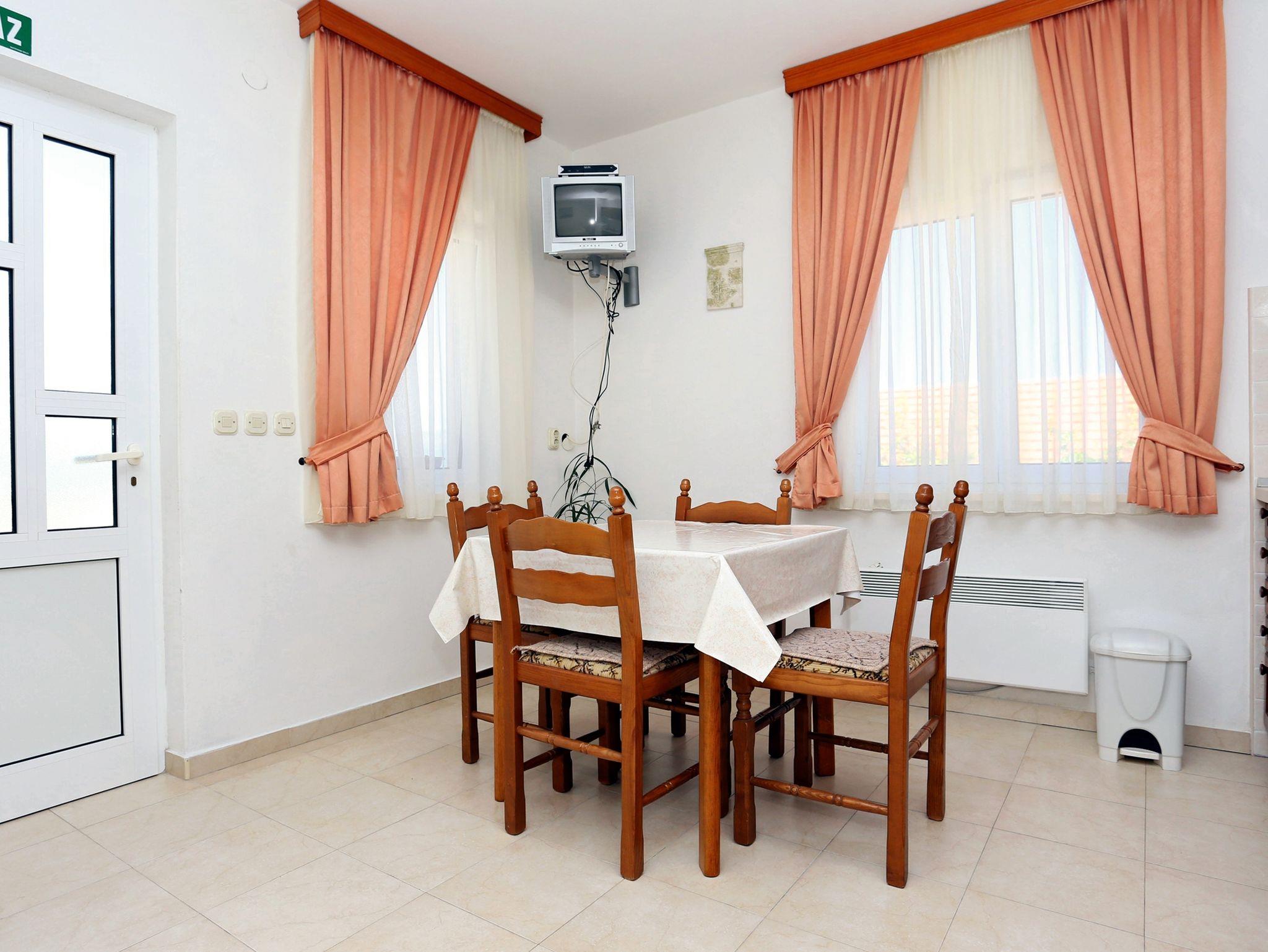 Ferienwohnung bietet Platz für 3 Gäste. Die Betten sind in Schlafzimmern, die es 1 gibt, und in Wohnzimmer, innerhalb einer Gesamtfläche von 26m2, angeordnet. Die Gäste haben eine eigene Terrasse zur Verfügung, auf der sie in warmen Sommernächten genießen können. Das Apartment bietet Meerblick. Es ist erlaubt, Speisen auf dem Gemeinschafts-Grill vorzubereiten. In der Unterkunftseinheit besteht die Möglichkeit des Mitbringens von Haustieren, und die Dienstleistung ist im Preis der Unterkunft enthalten. Durch die Terrasse der gebuchten Unterkunftseinheit gehen auch andere Gäste oder Vermieter. IM PREIS INBEGRIFFEN: Kurtaxe, Endreinigung, Klimatisierung, Parkplatz, Internet, Wäschewaschen, Haustiere, Kinderbett, Bügeleisen, Bügelbrett, Föhn. VERBINDLICHE ZUSÄTZLICHE KOSTEN: Aufzahlung für Kurzaufenthalte (prozentualer Zuschlag pro Nächtigungsanzahl: 30% - 1, 20% - 2, 10% - 3). Die Verfügbarkeit zusätzlicher Dienstleistungen in Ihrem reservierten Termin und die Preise derselben (falls nicht aufgeführt) müssen im Voraus überprüft werden. Zusätzliche Dienstleistungen die in der Zahlungsaufforderung nicht aufgeführt sind werden direkt beim Vermieter bezahlt, angenommen der Gast nutzt auch diese.