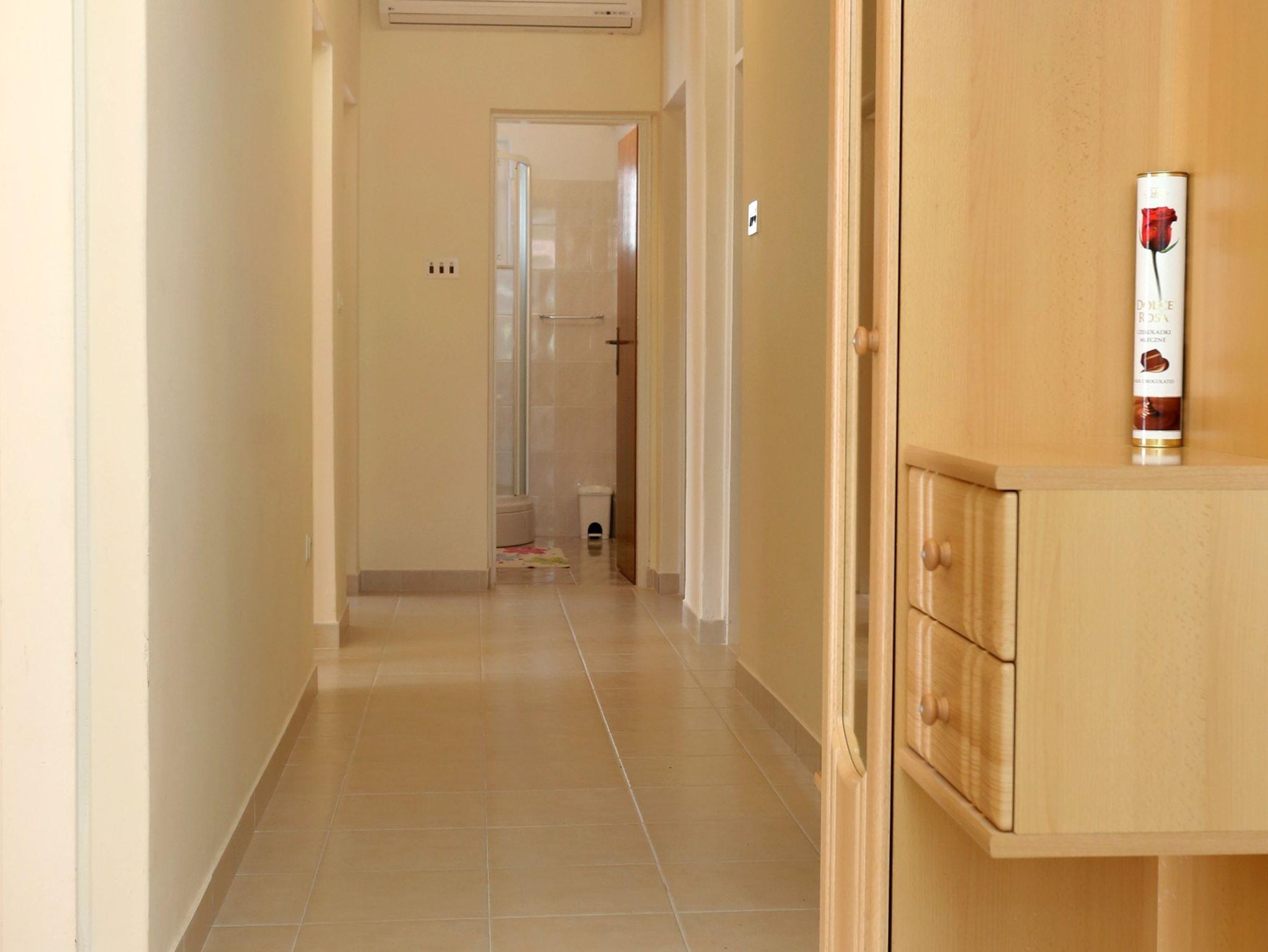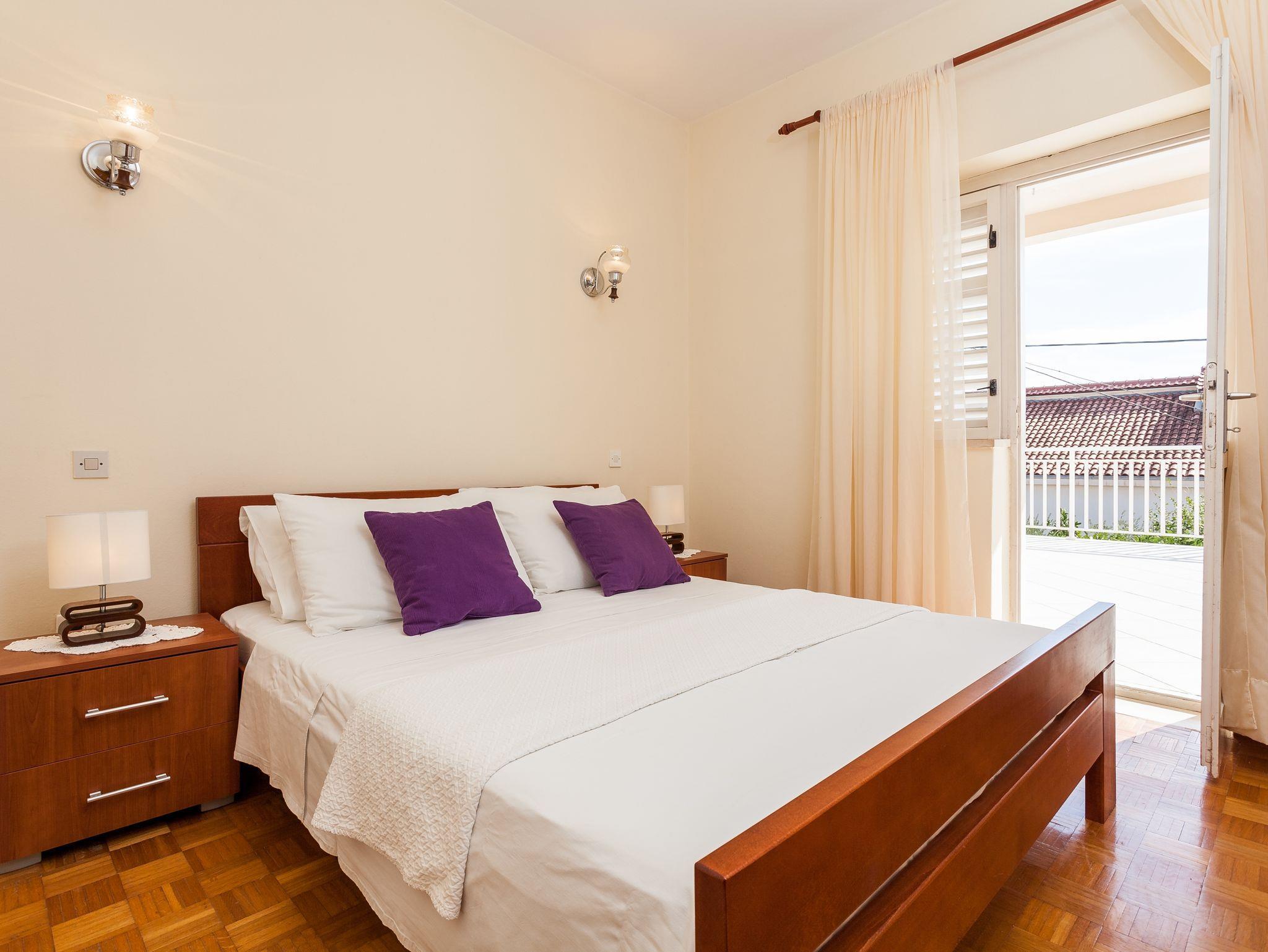 Ferienwohnung bietet Platz für 6 Gäste. Die Betten sind in Schlafzimmern, die es 3 gibt, innerhalb einer Gesamtfläche von 83m2, angeordnet. Die Gäste haben eine eigene Terrasse zur Verfügung, auf der sie in warmen Sommernächten genießen können. Das Apartment bietet Meerblick. Es ist erlaubt, Speisen auf dem Gemeinschafts-Grill vorzubereiten. IM PREIS INBEGRIFFEN: Kurtaxe, Endreinigung, Parkplatz, Internet, Bügeleisen, Bügelbrett, Föhn, Liegestühle. VERBINDLICHE ZUSÄTZLICHE KOSTEN: Aufzahlung für Kurzaufenthalte (prozentualer Zuschlag pro Nächtigungsanzahl: 30% - 1, 20% - 2, 10% - 3). UNVERBINDLICHE ZUSÄTZLICHE KOSTEN: Frühstück (7,00 €, 50% Nachlass für Kinder zwischen 4 und 12 Jahren, Kinder bis 4 Jahre sind frei.), Klimatisierung (5,00 € pro Nacht), Wäschewaschen (5,00 € Waschen), Zusatzbett (5,00 € pro Nacht). Die Verfügbarkeit zusätzlicher Dienstleistungen in Ihrem reservierten Termin und die Preise derselben (falls nicht aufgeführt) müssen im Voraus überprüft werden. Zusätzliche Dienstleistungen die in der Zahlungsaufforderung nicht aufgeführt sind werden direkt beim Vermieter bezahlt, angenommen der Gast nutzt auch diese.