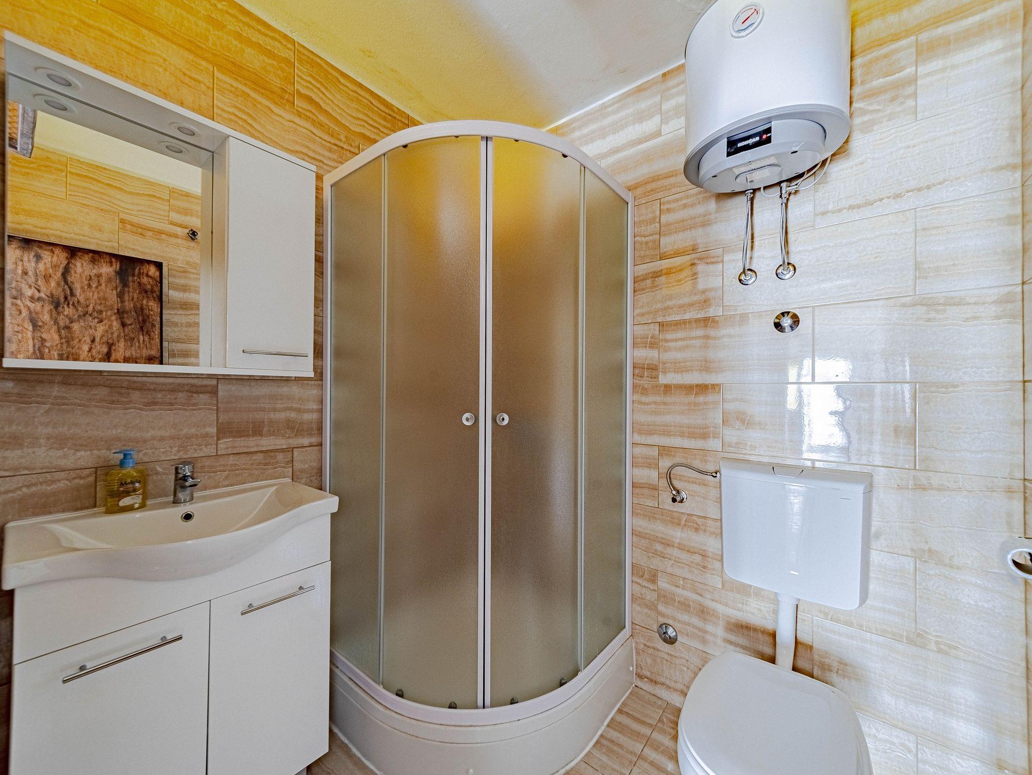 Ferienwohnung bietet Platz für 14 Gäste. Die Betten sind in Schlafzimmern, die es 7 gibt, innerhalb einer Gesamtfläche von 200m2, angeordnet. Die Gäste haben eine eigene Terrasse zur Verfügung, auf der sie in warmen Sommernächten genießen können. Das Apartment bietet Meerblick. Für vollen Genuss und Entspannung gibt es einen privaten Grill für Gäste dieser Unterkunft. Räume der gebuchten Unterkunftseinheit werden nicht in eine Ganze verbunden. IM PREIS INBEGRIFFEN: Kurtaxe, Endreinigung, Klimatisierung, Parkplatz, Internet, Föhn. VERBINDLICHE ZUSÄTZLICHE KOSTEN: Aufzahlung für Kurzaufenthalte (prozentualer Zuschlag pro Nächtigungsanzahl: 30% - 1, 20% - 2, 10% - 3). UNVERBINDLICHE ZUSÄTZLICHE KOSTEN: Garage (5,00 € pro Nacht), Wäschewaschen (6,00 € Waschen). Die Verfügbarkeit zusätzlicher Dienstleistungen in Ihrem reservierten Termin und die Preise derselben (falls nicht aufgeführt) müssen im Voraus überprüft werden. Zusätzliche Dienstleistungen die in der Zahlungsaufforderung nicht aufgeführt sind werden direkt beim Vermieter bezahlt, angenommen der Gast nutzt auch diese.