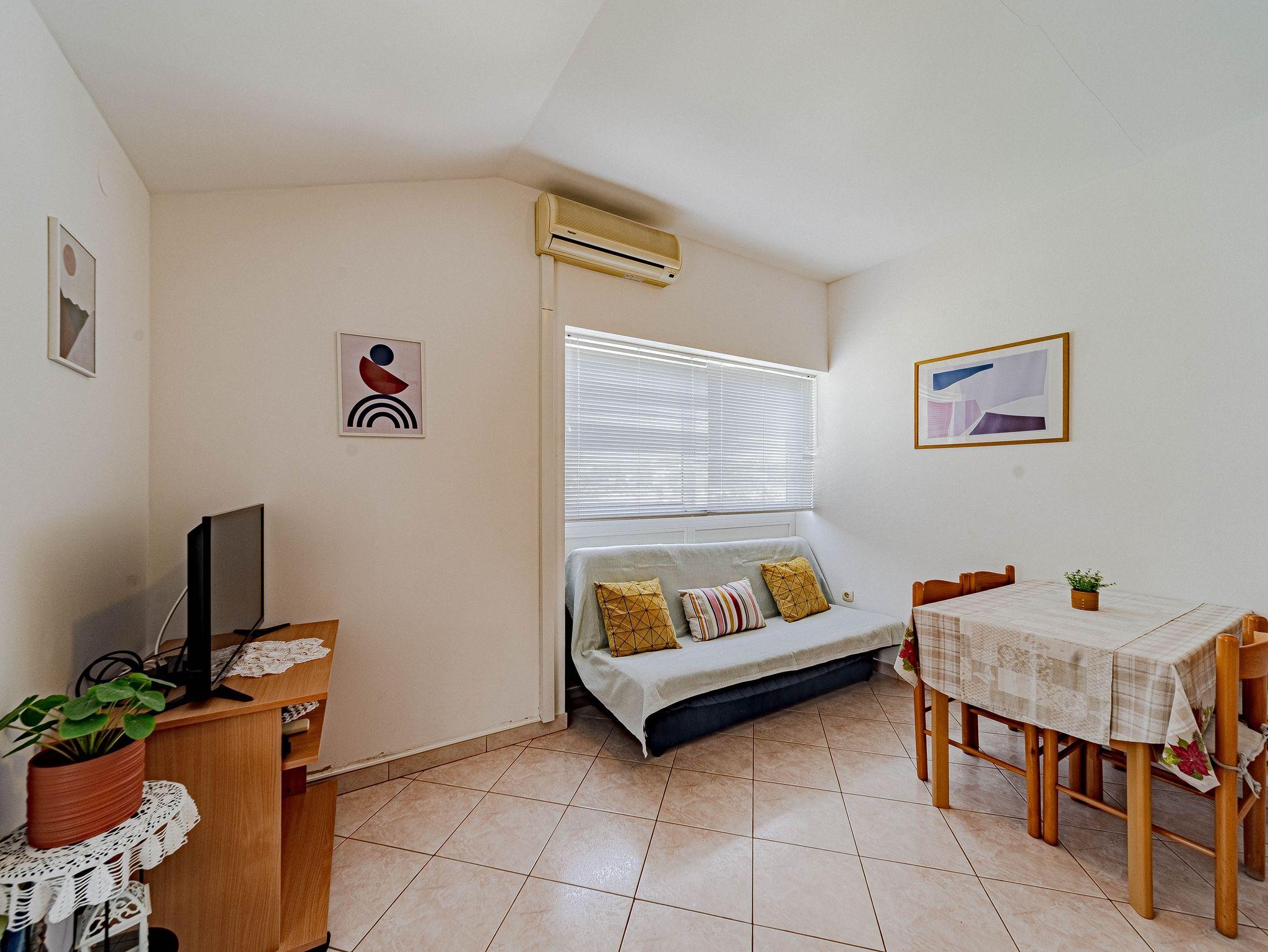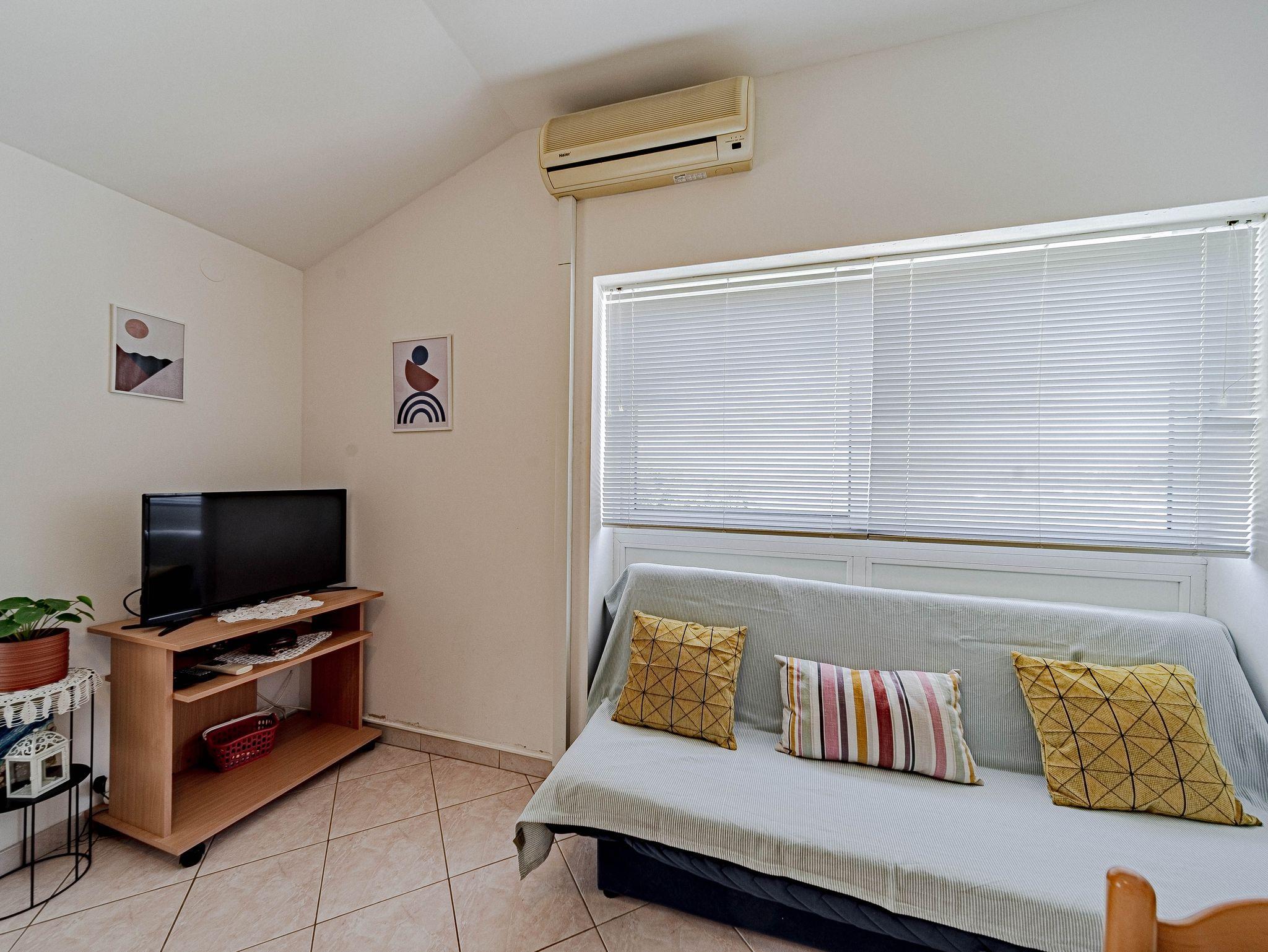 Ferienwohnung bietet Platz für 3 Gäste. Die Betten sind in Schlafzimmern, die es 1 gibt, und in Wohnzimmer, innerhalb einer Gesamtfläche von 34m2, angeordnet. Die Gäste haben eine eigene Terrasse zur Verfügung, auf der sie in warmen Sommernächten genießen können. Das Apartment bietet Meerblick. Es ist erlaubt, Speisen auf dem Gemeinschafts-Grill vorzubereiten. In der Unterkunftseinheit besteht die Möglichkeit des Mitbringens von Haustieren gegen Aufpreis. IM PREIS INBEGRIFFEN: Kurtaxe, Endreinigung, Klimatisierung, Parkplatz, Internet, Bootsanlegeplatz, Bügeleisen, Föhn. VERBINDLICHE ZUSÄTZLICHE KOSTEN: Aufzahlung für Kurzaufenthalte (prozentualer Zuschlag pro Nächtigungsanzahl: 30% - 1, 20% - 2, 10% - 3). UNVERBINDLICHE ZUSÄTZLICHE KOSTEN: Wäschewaschen (15,00 € Waschen), Boot (60,00 € pro Nacht), Haustiere (5,00 € pro Nacht). Die Verfügbarkeit zusätzlicher Dienstleistungen in Ihrem reservierten Termin und die Preise derselben (falls nicht aufgeführt) müssen im Voraus überprüft werden. Zusätzliche Dienstleistungen die in der Zahlungsaufforderung nicht aufgeführt sind werden direkt beim Vermieter bezahlt, angenommen der Gast nutzt auch diese.