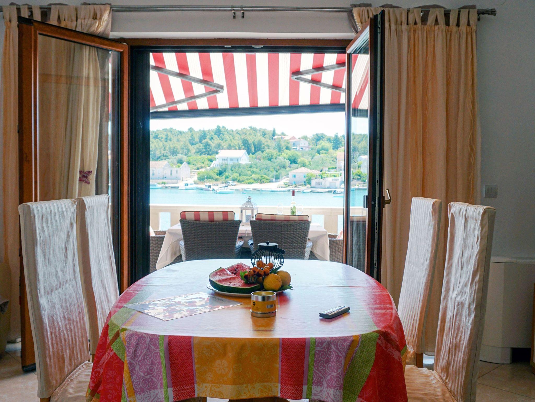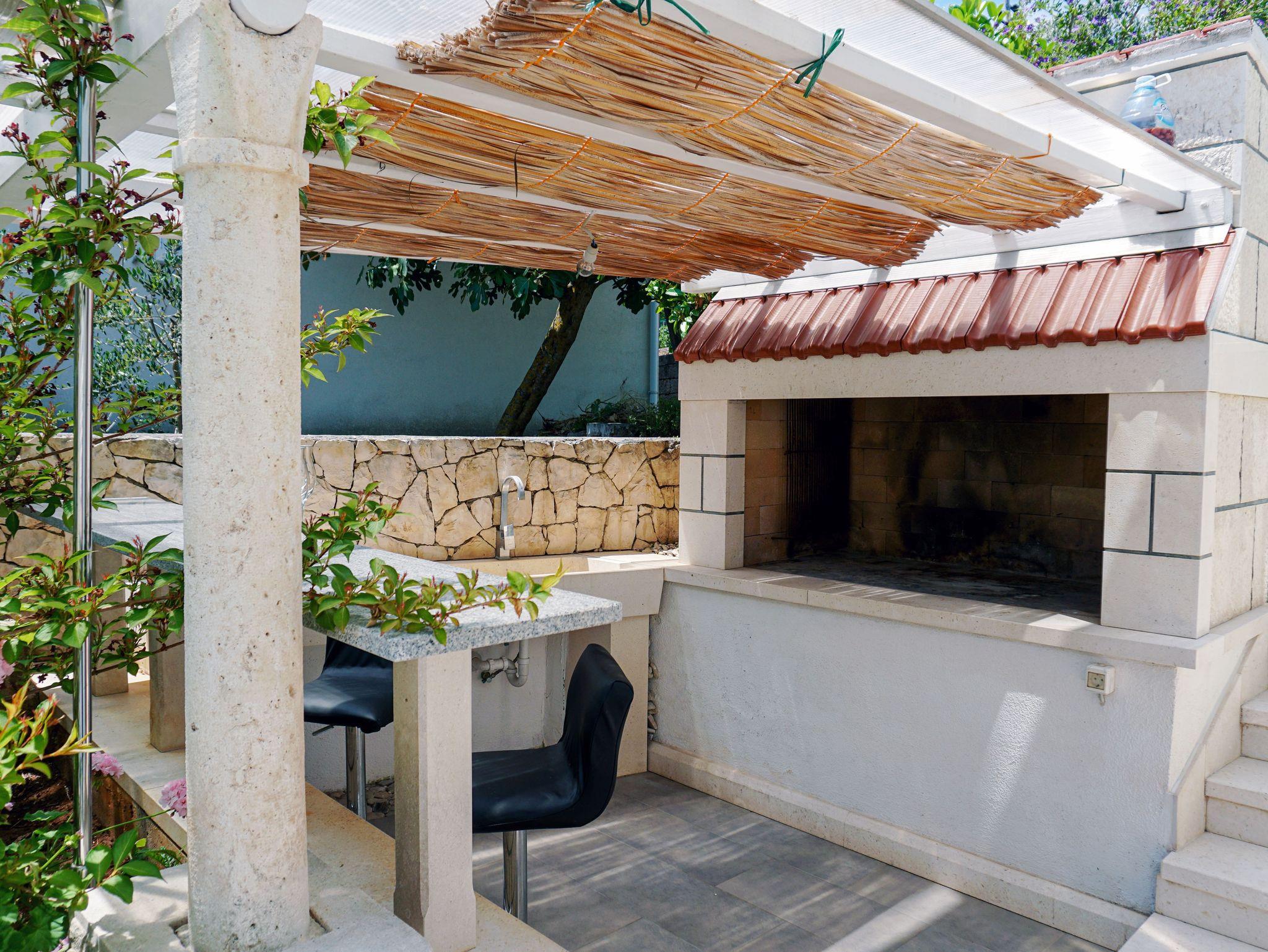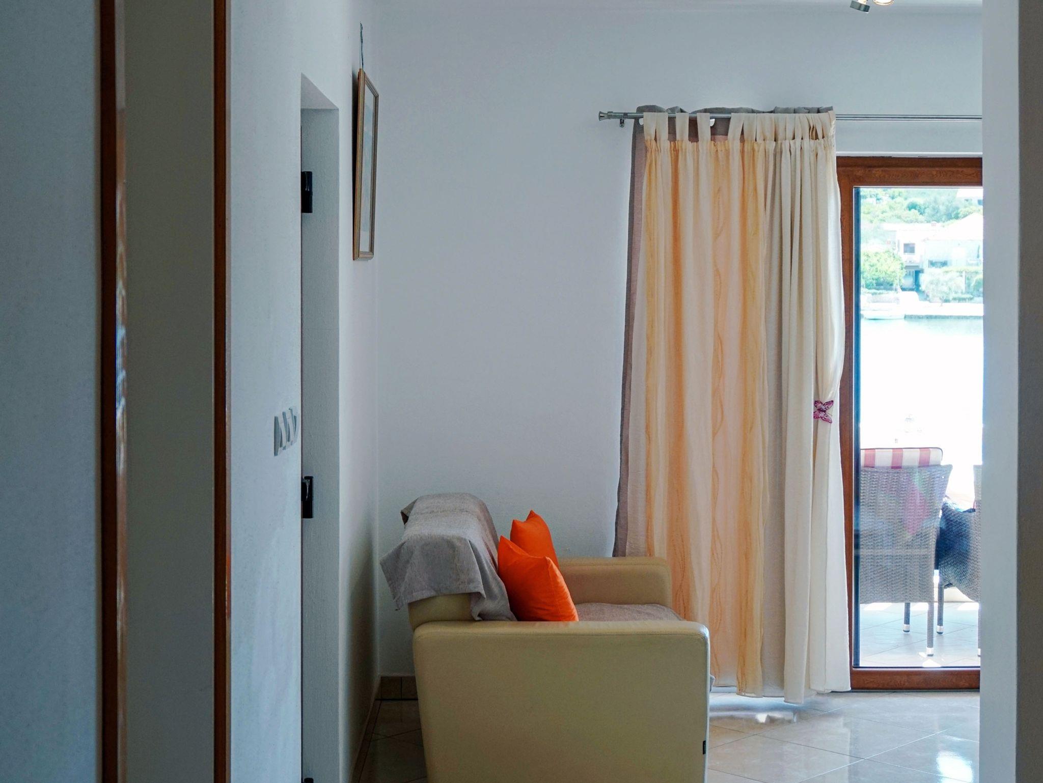 Ferienwohnung bietet Platz für 5 Gäste. Die Betten sind in Schlafzimmern, die es 2 gibt, und in Esszimmer, innerhalb einer Gesamtfläche von 52m2, angeordnet. Die Gäste haben eine eigene Terrasse zur Verfügung, auf der sie in warmen Sommernächten genießen können. Das Apartment bietet Meerblick. Es ist erlaubt, Speisen auf dem Gemeinschafts-Grill vorzubereiten. IM PREIS INBEGRIFFEN: Kurtaxe, Endreinigung, Klimatisierung, Zentralheizung, Parkplatz, Internet, Wäschewaschen, Bootsanlegeplatz, Kinderbett, Bügeleisen, Bügelbrett, Föhn. VERBINDLICHE ZUSÄTZLICHE KOSTEN: Aufzahlung für Kurzaufenthalte (prozentualer Zuschlag pro Nächtigungsanzahl: 30% - 1, 20% - 2, 10% - 3). UNVERBINDLICHE ZUSÄTZLICHE KOSTEN: Frühstück (10,00 €, 50% Nachlass für Kinder zwischen 4 und 12 Jahren, Kinder bis 4 Jahre sind frei.), Halbpension (30,00 €, 50% Nachlass für Kinder zwischen 4 und 12 Jahren, Kinder bis 4 Jahre sind frei.). Die Verfügbarkeit zusätzlicher Dienstleistungen in Ihrem reservierten Termin und die Preise derselben (falls nicht aufgeführt) müssen im Voraus überprüft werden. Zusätzliche Dienstleistungen die in der Zahlungsaufforderung nicht aufgeführt sind werden direkt beim Vermieter bezahlt, angenommen der Gast nutzt auch diese. Ermäßigung auf den Grundpreis: Gratistag 14=13 (bei einem Aufenthalt von 14 Tagen oder mehr erhalten Sie einen Gratistag für den Aufenthalt bis 31.12.26).