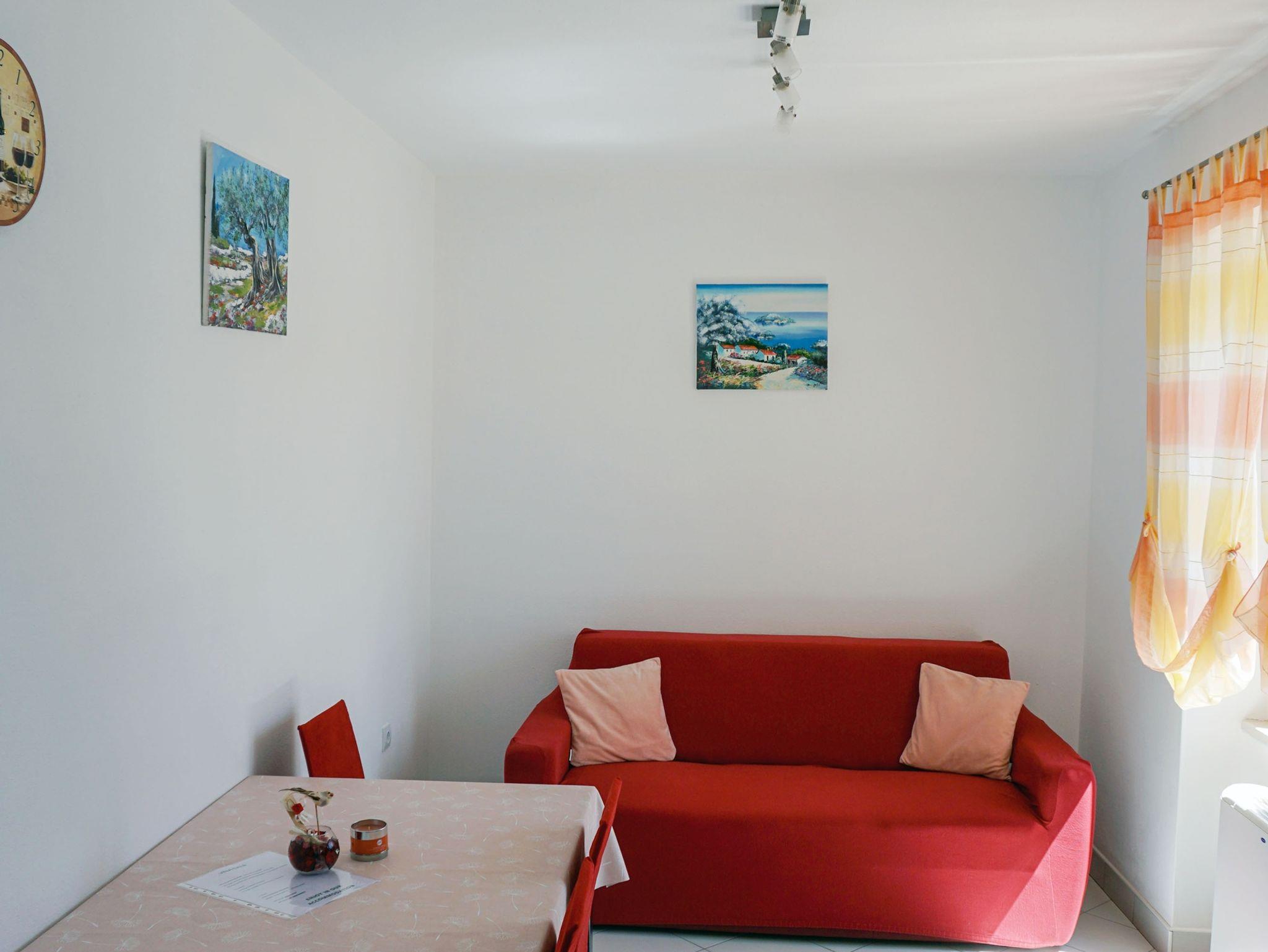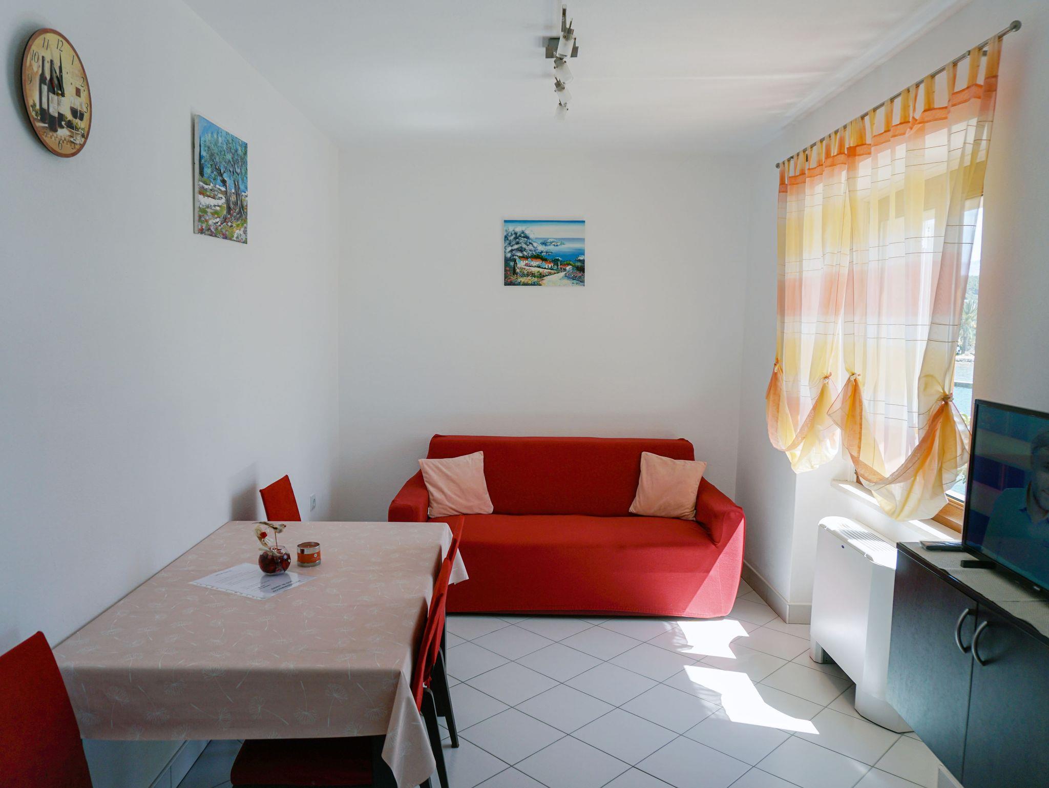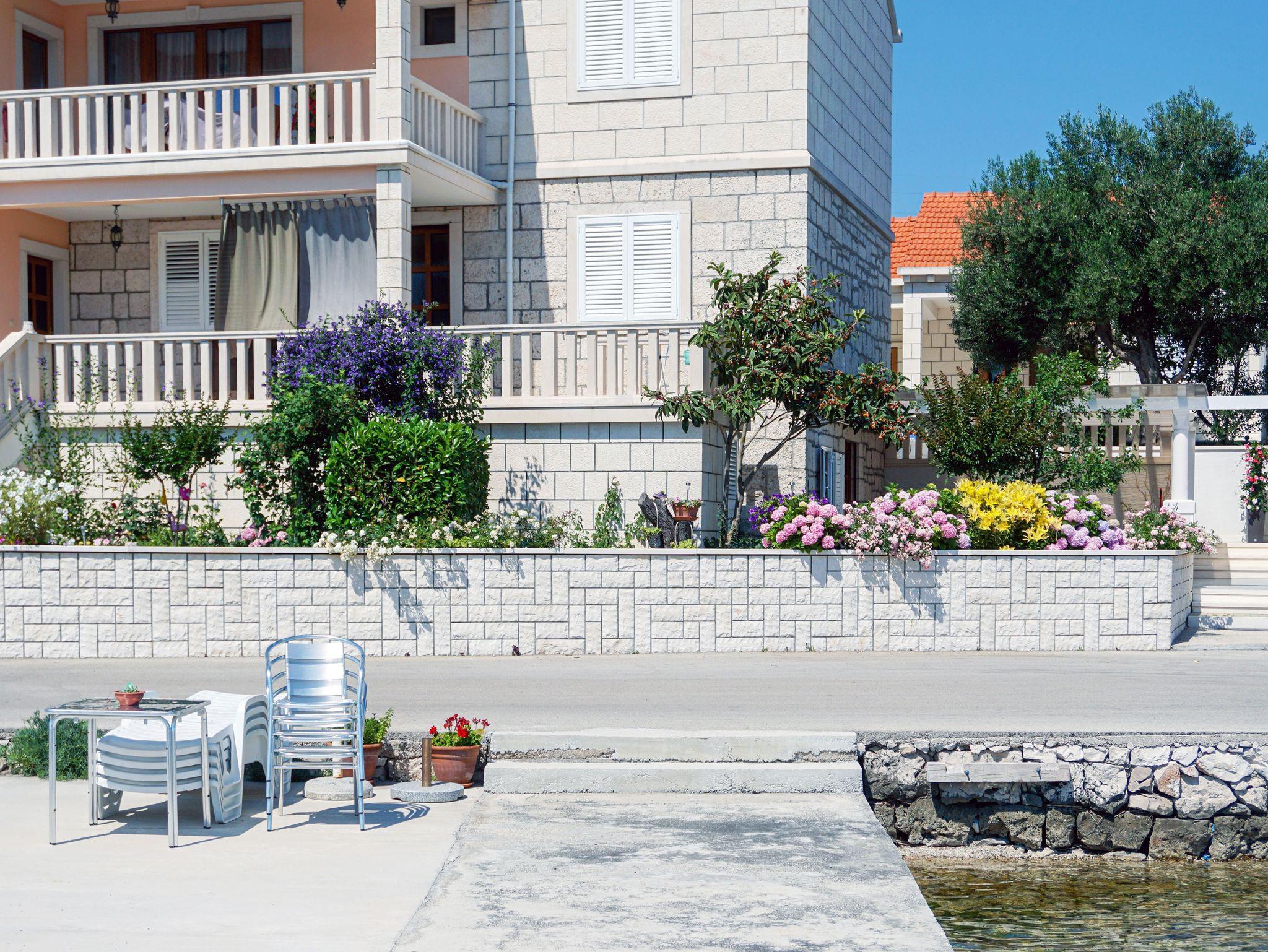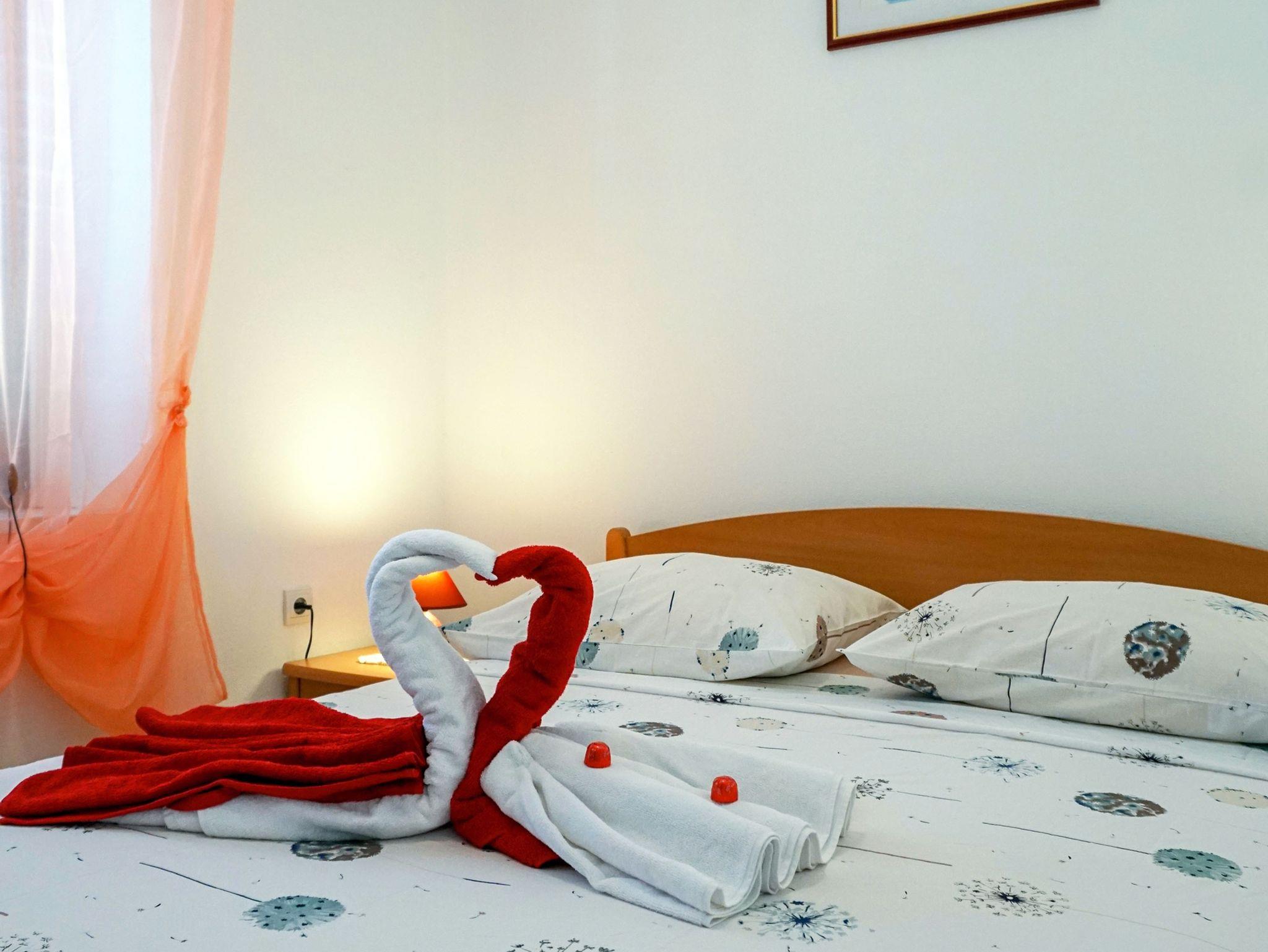 Ferienwohnung bietet Platz für 4 Gäste. Die Betten sind in Schlafzimmern, die es 1 gibt, und in Wohnzimmer, innerhalb einer Gesamtfläche von 29m2, angeordnet. Die Gäste haben eine eigene Terrasse zur Verfügung, auf der sie in warmen Sommernächten genießen können. Das Apartment bietet Meerblick. Es ist erlaubt, Speisen auf dem Gemeinschafts-Grill vorzubereiten. IM PREIS INBEGRIFFEN: Kurtaxe, Endreinigung, Klimatisierung, Zentralheizung, Parkplatz, Internet, Wäschewaschen, Bootsanlegeplatz, Kinderbett, Bügeleisen, Bügelbrett, Föhn. VERBINDLICHE ZUSÄTZLICHE KOSTEN: Aufzahlung für Kurzaufenthalte (prozentualer Zuschlag pro Nächtigungsanzahl: 30% - 1, 20% - 2, 10% - 3). UNVERBINDLICHE ZUSÄTZLICHE KOSTEN: Frühstück (10,00 €, 50% Nachlass für Kinder zwischen 4 und 12 Jahren, Kinder bis 4 Jahre sind frei.), Halbpension (30,00 €, 50% Nachlass für Kinder zwischen 4 und 12 Jahren, Kinder bis 4 Jahre sind frei.). Die Verfügbarkeit zusätzlicher Dienstleistungen in Ihrem reservierten Termin und die Preise derselben (falls nicht aufgeführt) müssen im Voraus überprüft werden. Zusätzliche Dienstleistungen die in der Zahlungsaufforderung nicht aufgeführt sind werden direkt beim Vermieter bezahlt, angenommen der Gast nutzt auch diese. Ermäßigung auf den Grundpreis: Gratistag 14=13 (bei einem Aufenthalt von 14 Tagen oder mehr erhalten Sie einen Gratistag für den Aufenthalt bis 31.12.26).