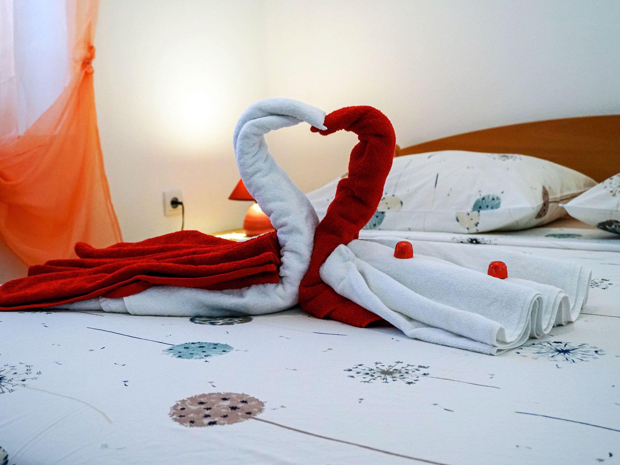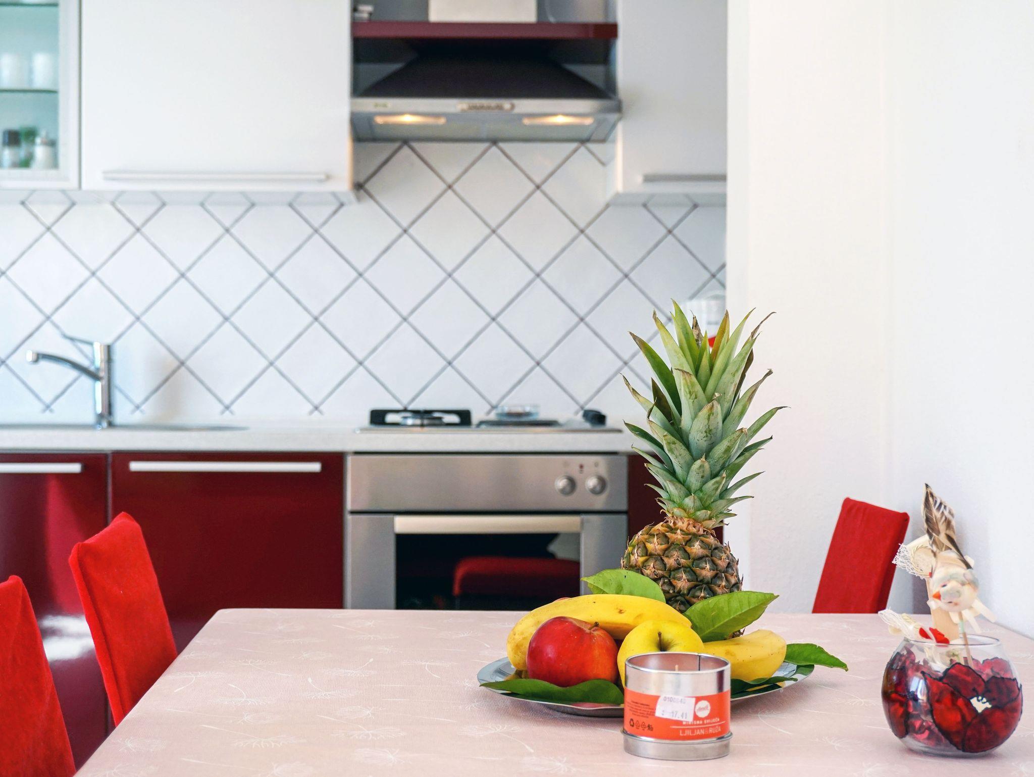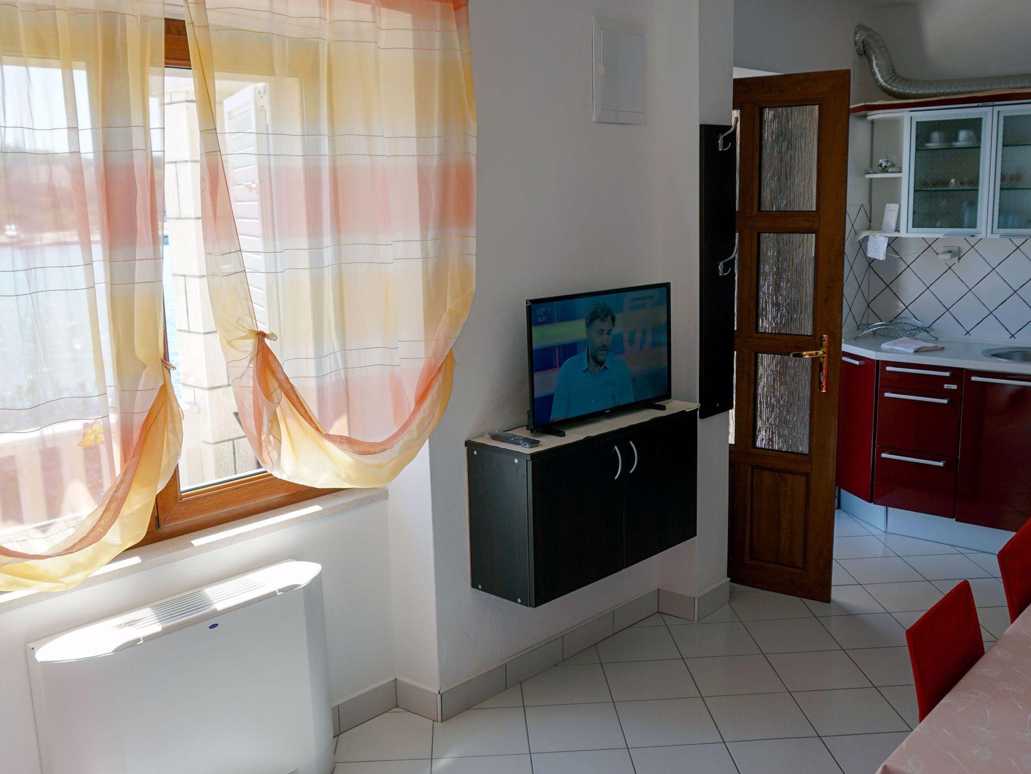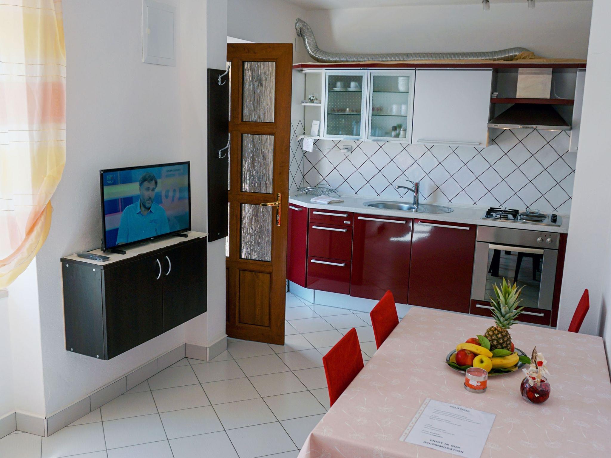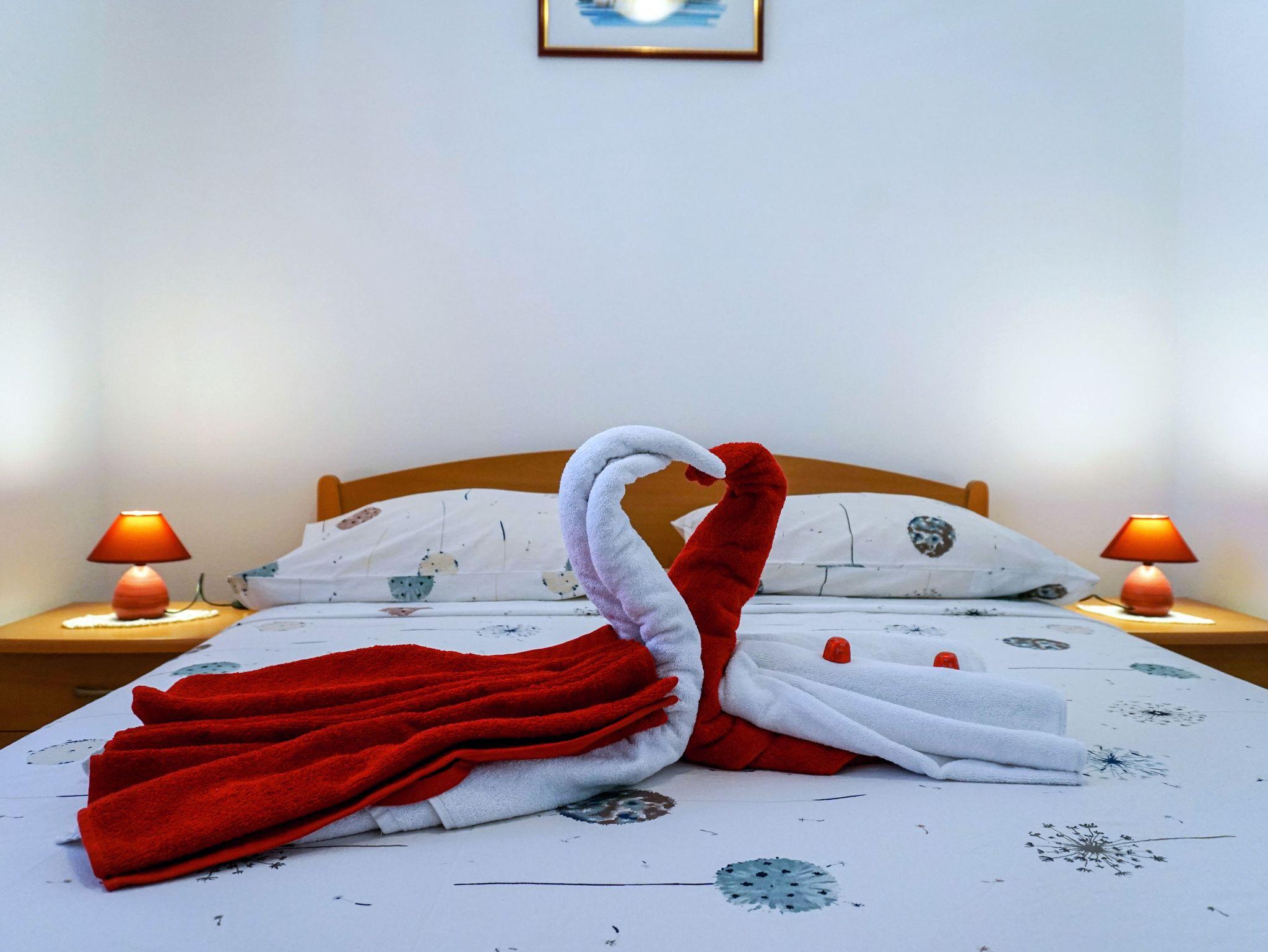 Ferienwohnung bietet Platz für 4 Gäste. Die Betten sind in Schlafzimmern, die es 1 gibt, und in Wohnzimmer, innerhalb einer Gesamtfläche von 29m2, angeordnet. Die Gäste haben eine eigene Terrasse zur Verfügung, auf der sie in warmen Sommernächten genießen können. Das Apartment bietet Meerblick. Es ist erlaubt, Speisen auf dem Gemeinschafts-Grill vorzubereiten. IM PREIS INBEGRIFFEN: Kurtaxe, Endreinigung, Klimatisierung, Zentralheizung, Parkplatz, Internet, Wäschewaschen, Bootsanlegeplatz, Kinderbett, Bügeleisen, Bügelbrett, Föhn. VERBINDLICHE ZUSÄTZLICHE KOSTEN: Aufzahlung für Kurzaufenthalte (prozentualer Zuschlag pro Nächtigungsanzahl: 30% - 1, 20% - 2, 10% - 3). UNVERBINDLICHE ZUSÄTZLICHE KOSTEN: Frühstück (10,00 €, 50% Nachlass für Kinder zwischen 4 und 12 Jahren, Kinder bis 4 Jahre sind frei.), Halbpension (30,00 €, 50% Nachlass für Kinder zwischen 4 und 12 Jahren, Kinder bis 4 Jahre sind frei.). Die Verfügbarkeit zusätzlicher Dienstleistungen in Ihrem reservierten Termin und die Preise derselben (falls nicht aufgeführt) müssen im Voraus überprüft werden. Zusätzliche Dienstleistungen die in der Zahlungsaufforderung nicht aufgeführt sind werden direkt beim Vermieter bezahlt, angenommen der Gast nutzt auch diese. Ermäßigung auf den Grundpreis: Gratistag 14=13 (bei einem Aufenthalt von 14 Tagen oder mehr erhalten Sie einen Gratistag für den Aufenthalt bis 31.12.26).