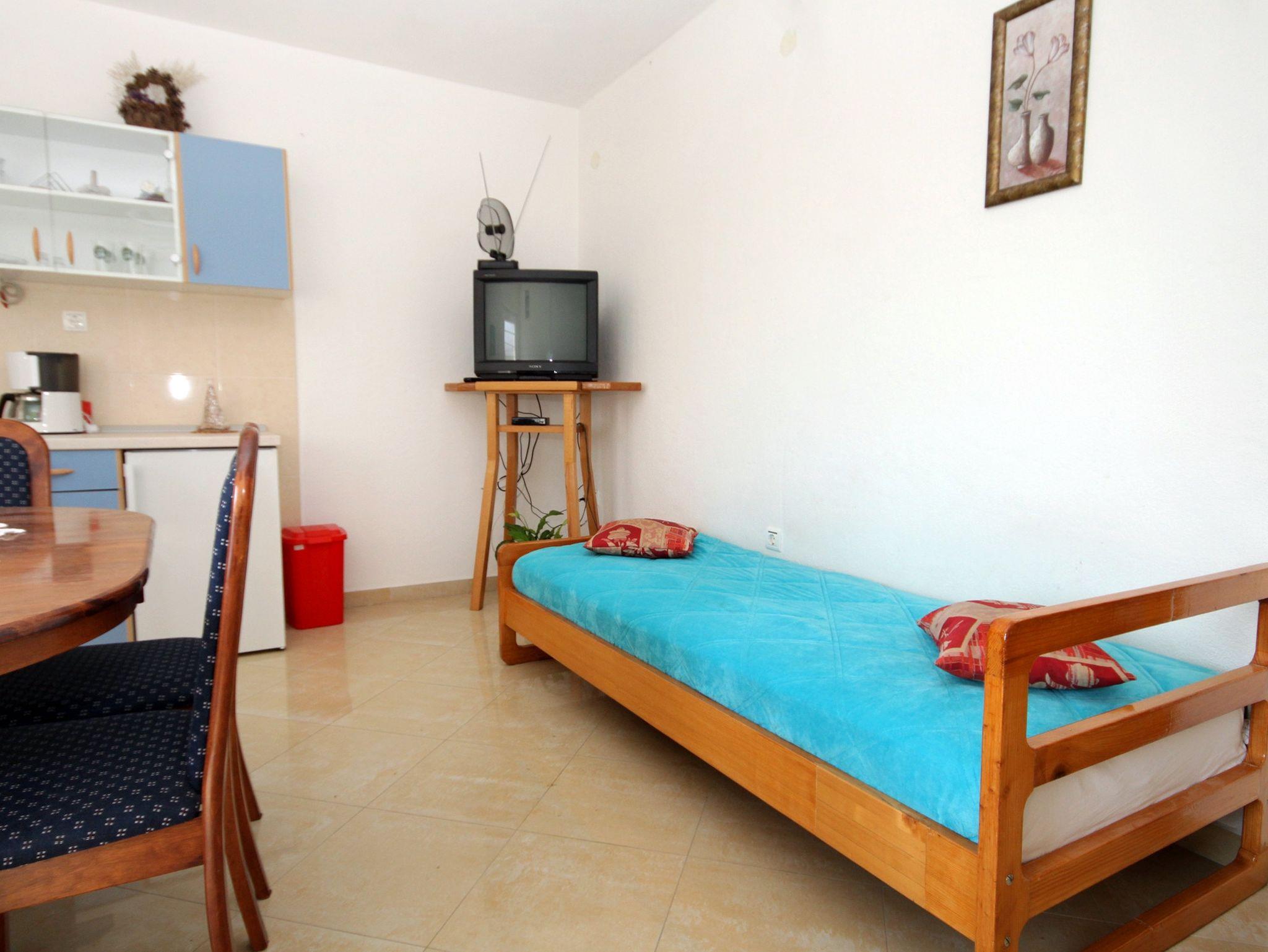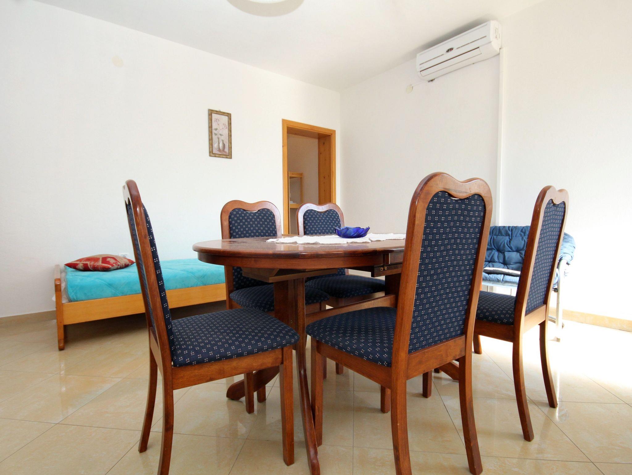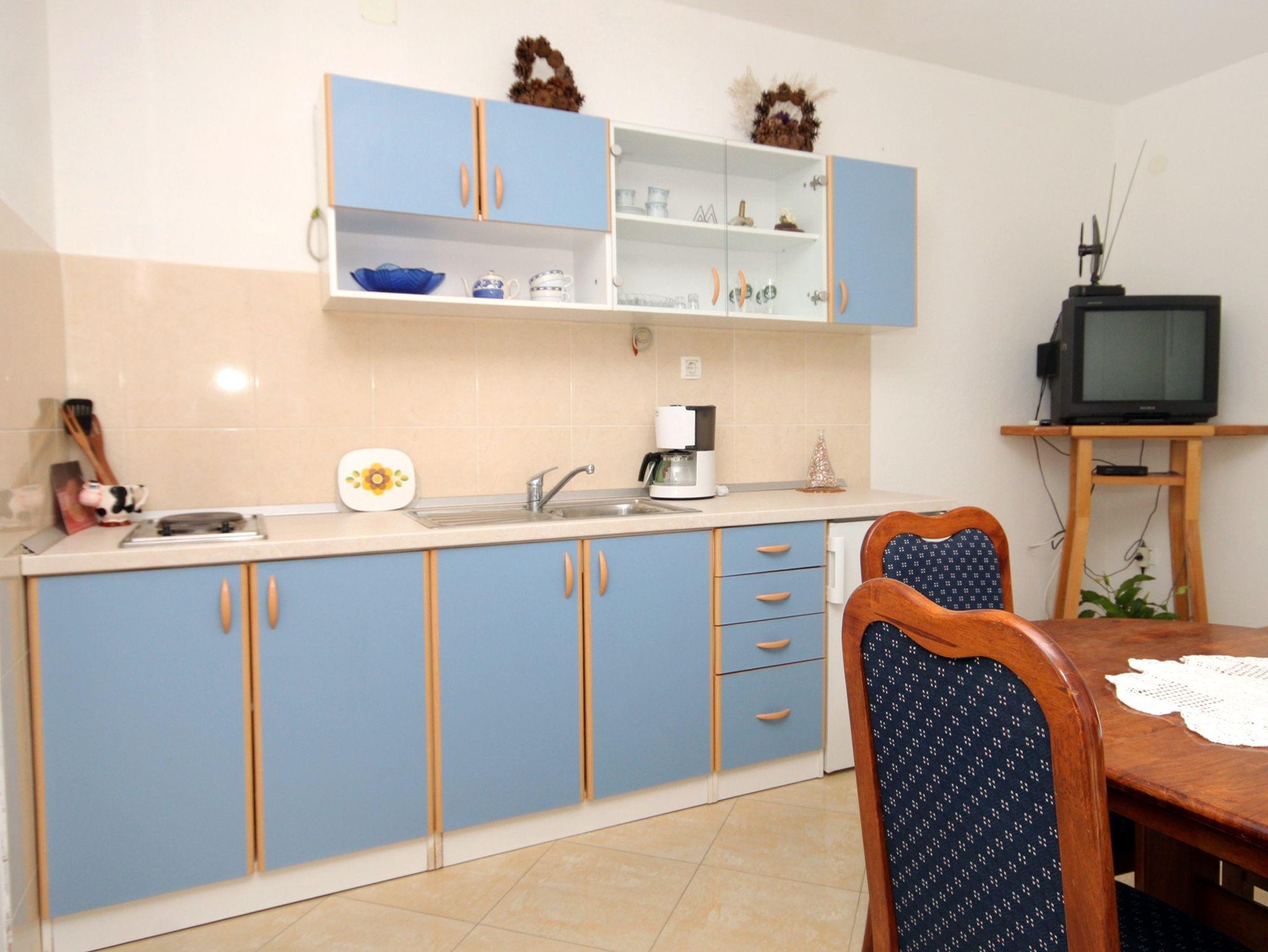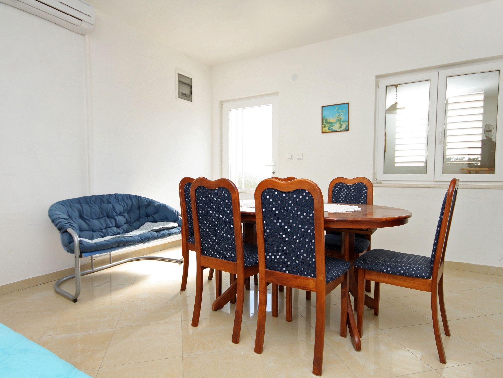 Ferienwohnung bietet Platz für 3 Gäste. Die Betten sind in Schlafzimmern, die es 1 gibt, und in Esszimmer, innerhalb einer Gesamtfläche von 36m2, angeordnet. Die Gäste haben eine eigene Terrasse zur Verfügung, auf der sie in warmen Sommernächten genießen können. Das Apartment bietet Meerblick. Es ist erlaubt, Speisen auf dem Gemeinschafts-Grill vorzubereiten. IM PREIS INBEGRIFFEN: Kurtaxe, Endreinigung, Klimatisierung, Parkplatz, Internet, Wäschewaschen, Kinderbett, Zusatzbett, Bügeleisen, Bügelbrett, Föhn. VERBINDLICHE ZUSÄTZLICHE KOSTEN: Aufzahlung für Kurzaufenthalte (prozentualer Zuschlag pro Nächtigungsanzahl: 30% - 1, 20% - 2, 10% - 3). Die Verfügbarkeit zusätzlicher Dienstleistungen in Ihrem reservierten Termin und die Preise derselben (falls nicht aufgeführt) müssen im Voraus überprüft werden. Zusätzliche Dienstleistungen die in der Zahlungsaufforderung nicht aufgeführt sind werden direkt beim Vermieter bezahlt, angenommen der Gast nutzt auch diese. Ermäßigung auf den Grundpreis: Gratistag 14=13 (bei einem Aufenthalt von 14 Tagen oder mehr erhalten Sie einen Gratistag für den Aufenthalt bis 31.12.26).