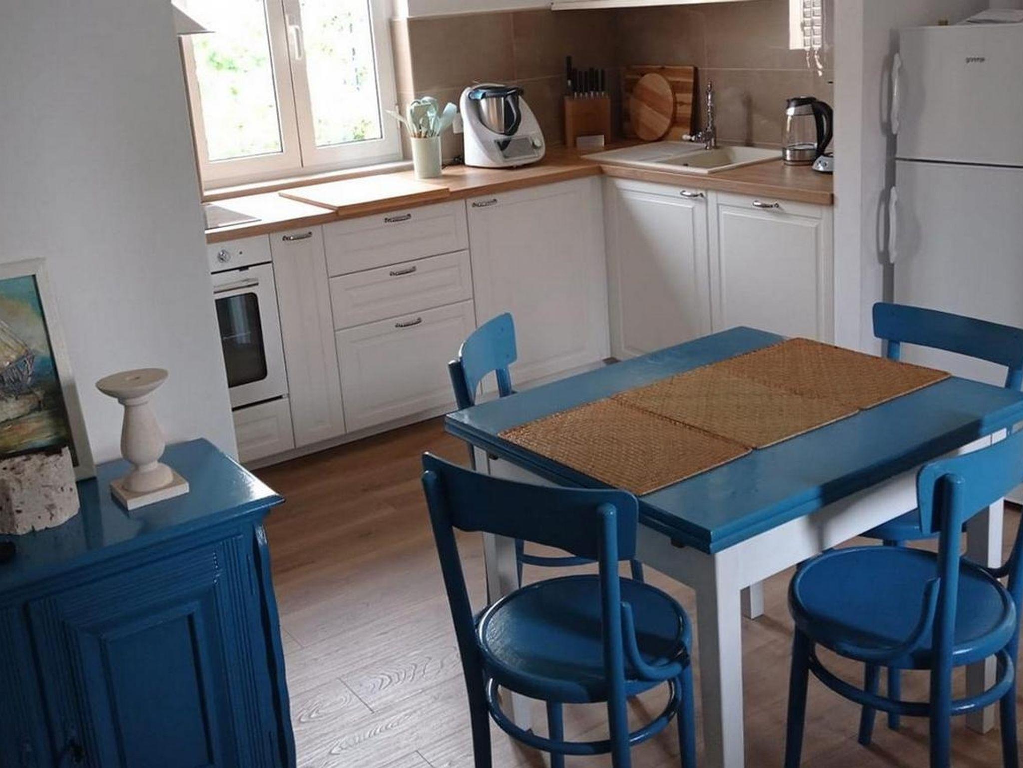 Hof (700m2, Sitzbereich), Parkplatz (Anzahl der Parkplätze: 2, Entfernung vom Objekt: im Hof), WiFi Internet, Bootsanlegeplatz (Entfernung vom Objekt: 50 m, Bootsanlegeplatztyp: an der Küste), Föhn, Bügeleisen, Bügelbrett, Tragbarer Grill, Kinderbett