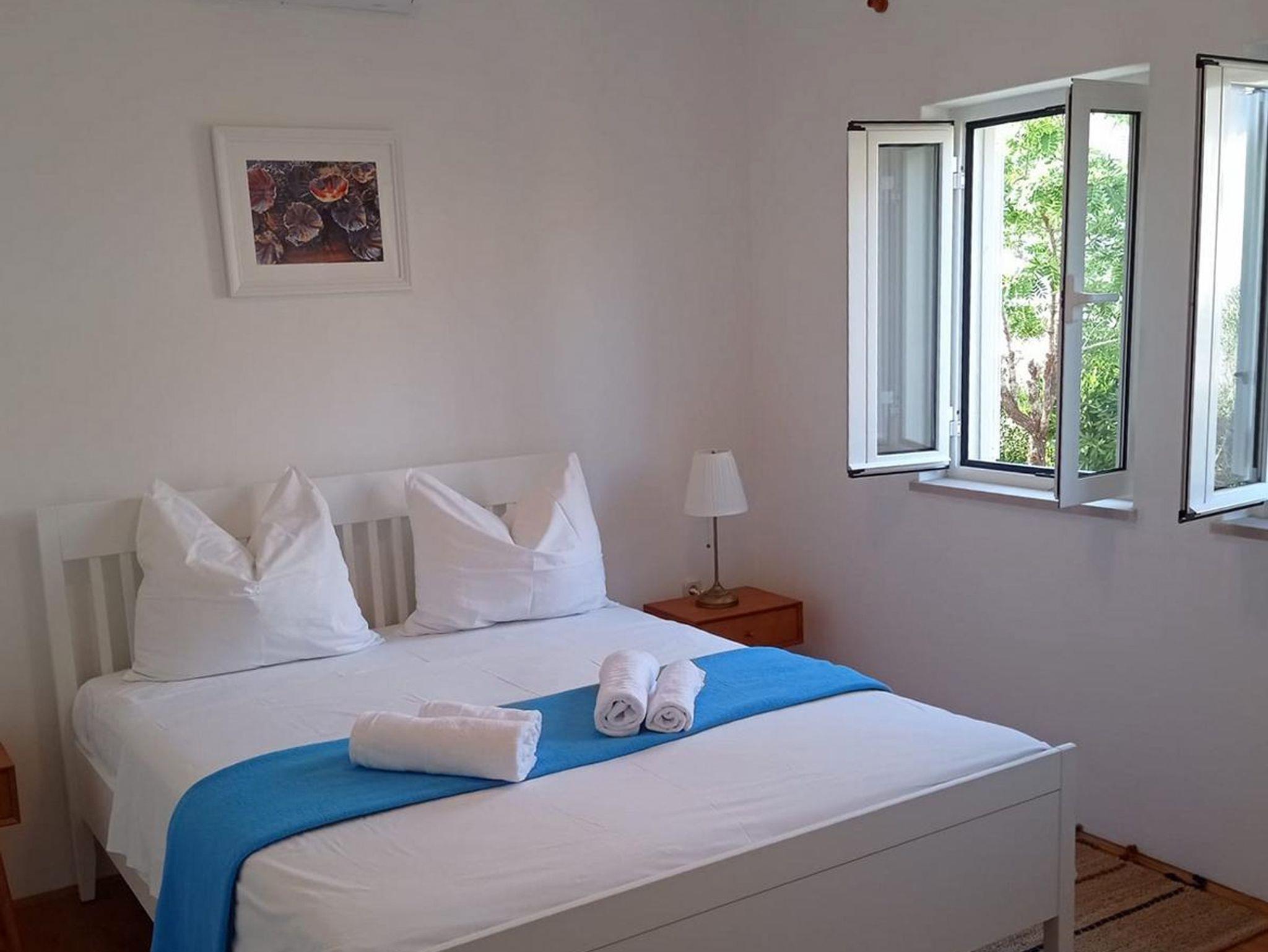 Haus bietet Platz für 4 Gäste. Die Betten sind in Schlafzimmern, die es 2 gibt, innerhalb einer Gesamtfläche von 74m2, angeordnet. Die Gäste haben eine eigene Terrasse zur Verfügung, auf der sie in warmen Sommernächten genießen können. Das Haus bietet Meerblick. Es ist erlaubt, Speisen auf dem Gemeinschafts-Grill vorzubereiten. IM PREIS INBEGRIFFEN: Kurtaxe, Endreinigung, Klimatisierung, Parkplatz, Internet, Bootsanlegeplatz, Kinderbett, Bügeleisen, Bügelbrett, Föhn, tragbarer Grill. Die Verfügbarkeit zusätzlicher Dienstleistungen in Ihrem reservierten Termin und die Preise derselben (falls nicht aufgeführt) müssen im Voraus überprüft werden. Zusätzliche Dienstleistungen die in der Zahlungsaufforderung nicht aufgeführt sind werden direkt beim Vermieter bezahlt, angenommen der Gast nutzt auch diese.