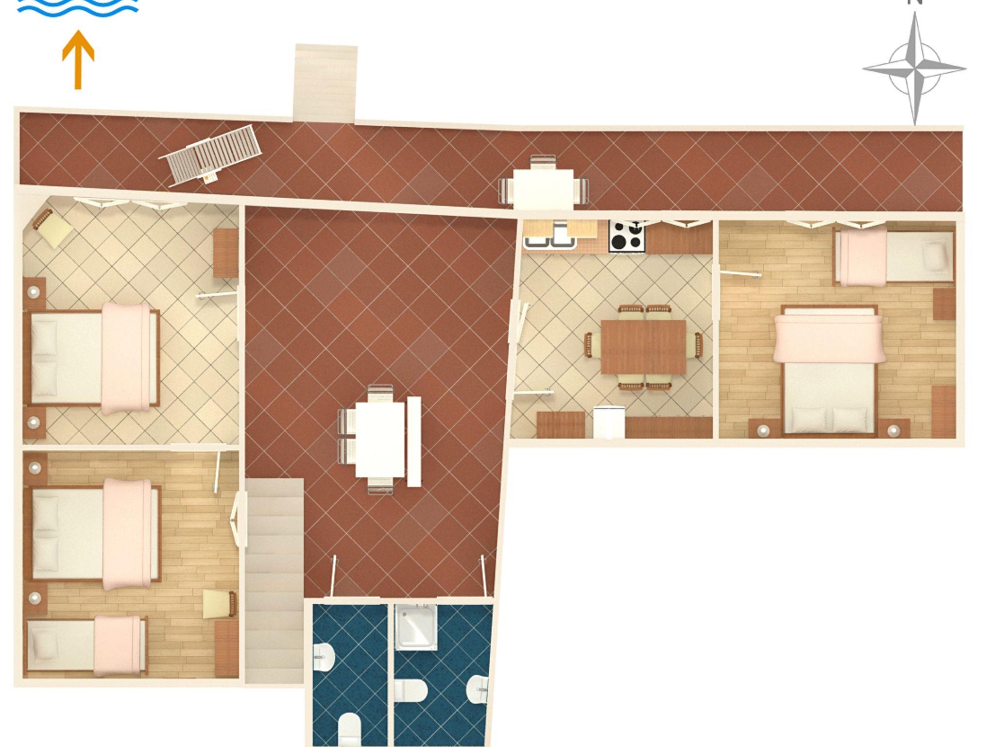 Haus bietet Platz für 8 Gäste. Die Betten sind in Schlafzimmern, die es 3 gibt, innerhalb einer Gesamtfläche von 56m2, angeordnet. Die Gäste haben eine eigene Terrasse zur Verfügung, auf der sie in warmen Sommernächten genießen können. Das Haus bietet Meerblick. Für vollen Genuss und Entspannung gibt es einen privaten Grill für Gäste dieser Unterkunft. In der Unterkunftseinheit besteht die Möglichkeit des Mitbringens von Haustieren, und die Dienstleistung ist im Preis der Unterkunft enthalten. IM PREIS INBEGRIFFEN: Kurtaxe, Endreinigung, Internet, Haustiere, Kinderbett, Zusatzbett, Bügeleisen, Bügelbrett, Föhn, Sonnenschirm, Liegestühle. Die Verfügbarkeit zusätzlicher Dienstleistungen in Ihrem reservierten Termin und die Preise derselben (falls nicht aufgeführt) müssen im Voraus überprüft werden. Zusätzliche Dienstleistungen die in der Zahlungsaufforderung nicht aufgeführt sind werden direkt beim Vermieter bezahlt, angenommen der Gast nutzt auch diese. Ermäßigung auf den Grundpreis: Gratistag 14=13 (bei einem Aufenthalt von 14 Tagen oder mehr erhalten Sie einen Gratistag für den Aufenthalt bis 31.12.26).