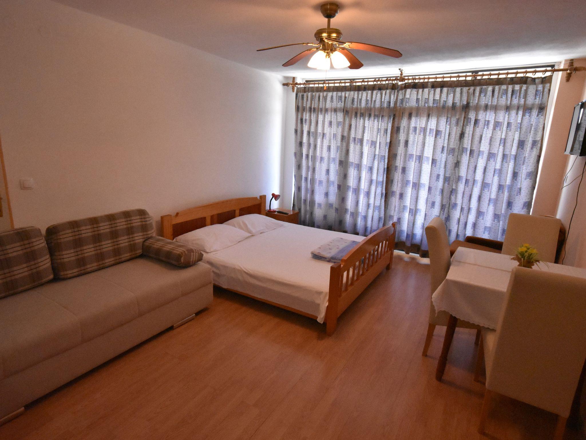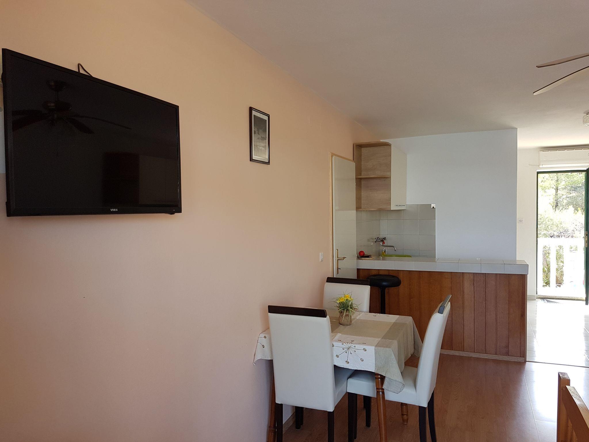 Studio bietet Platz für 2 Gäste. Die Betten sind in Schlafzimmern, die es 1 gibt, innerhalb einer Gesamtfläche von 29m2, angeordnet. Die Gäste haben eine eigene Terrasse zur Verfügung, auf der sie in warmen Sommernächten genießen können. Das Studio-Apartment bietet Meerblick. Es ist erlaubt, Speisen auf dem Gemeinschafts-Grill vorzubereiten. IM PREIS INBEGRIFFEN: Kurtaxe, Endreinigung, Klimatisierung, Parkplatz, Internet, Kinderbett, Föhn. UNVERBINDLICHE ZUSÄTZLICHE KOSTEN: Bootsanlegeplatz (15,00 € pro Nacht). Die Verfügbarkeit zusätzlicher Dienstleistungen in Ihrem reservierten Termin und die Preise derselben (falls nicht aufgeführt) müssen im Voraus überprüft werden. Zusätzliche Dienstleistungen die in der Zahlungsaufforderung nicht aufgeführt sind werden direkt beim Vermieter bezahlt, angenommen der Gast nutzt auch diese. Ermäßigung auf den Grundpreis: Gratistag 14=13 (bei einem Aufenthalt von 14 Tagen oder mehr erhalten Sie einen Gratistag für den Aufenthalt bis 31.12.26).