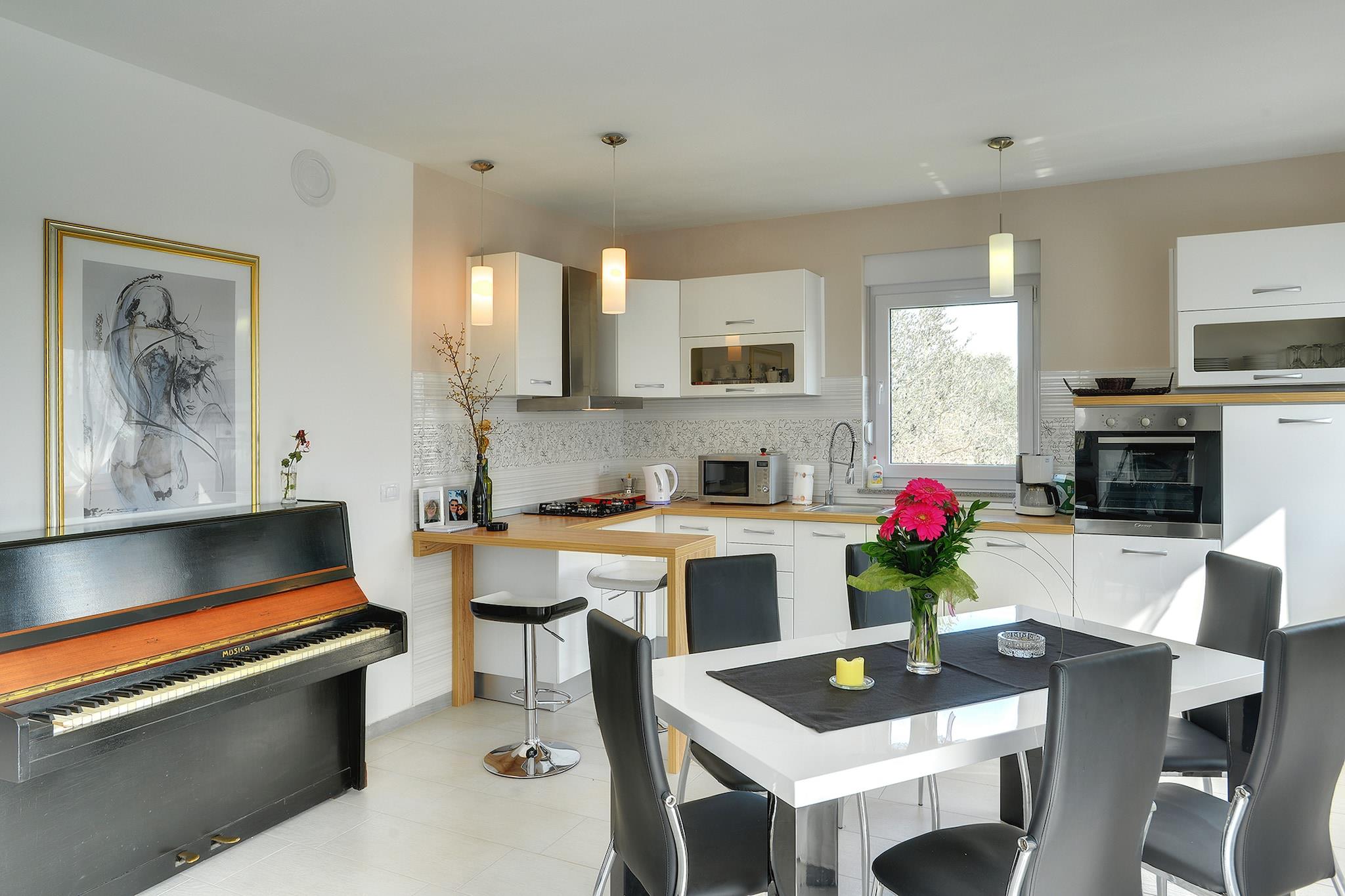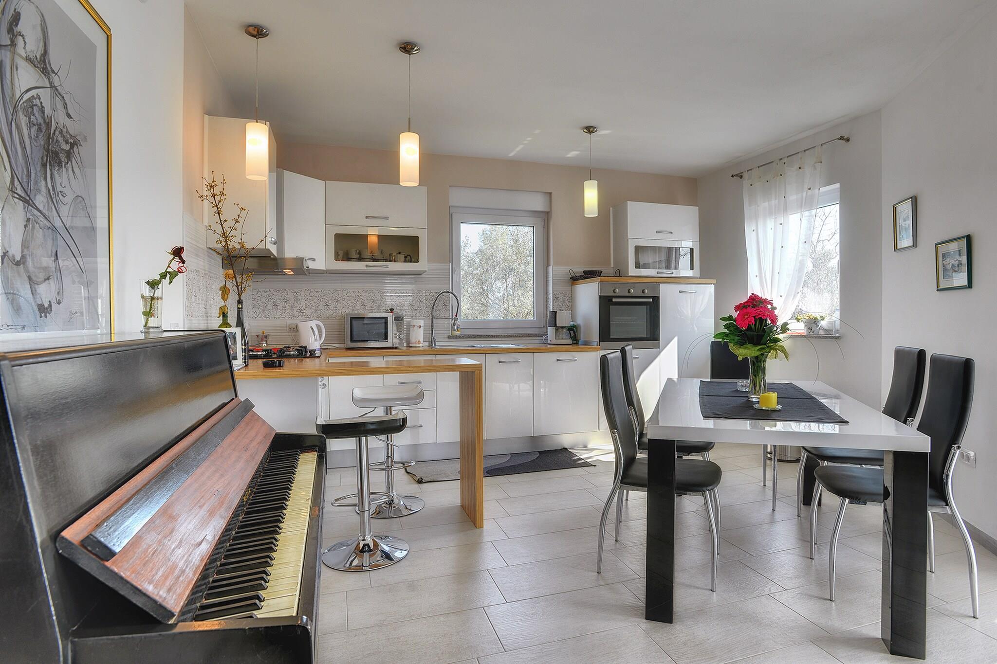 Beliggende i det charmerende istriske hinterland er Villa Amber i Majmajola kun fem minutter i bil fra byen Vodnjan. Denne moderne villa i Majmajola er fuldt udstyret og spredes på to niveauer - stue og køkken er indrettet i stueetagen samt et af soveværelserne, mens de resterende tre soveværelser ligger ovenpå og alle har eget badeværelse. Stueetagen er et rum stort og lyst, der er godt forbundet. Køkkenet er hvidt, enkelt og fuldt udstyret, mens stuen er meget komfortabel takket være sofaen hjørnet ligger lige overfor indgangsdøren. Gæsterne kan nyde de komfortable liggestole ved poolen, udendørs bruser og plads til at lege med børn og kæledyr, i den indhegnede ejendoms sikkerhed. Villa Amber er et godt valg, hvis du er på udkig efter et roligt sted og privatliv, og det er perfekt for en familieferie. I nærheden er der også en fantastisk cykelsti, der vil glæde fans af aktive ferier.
