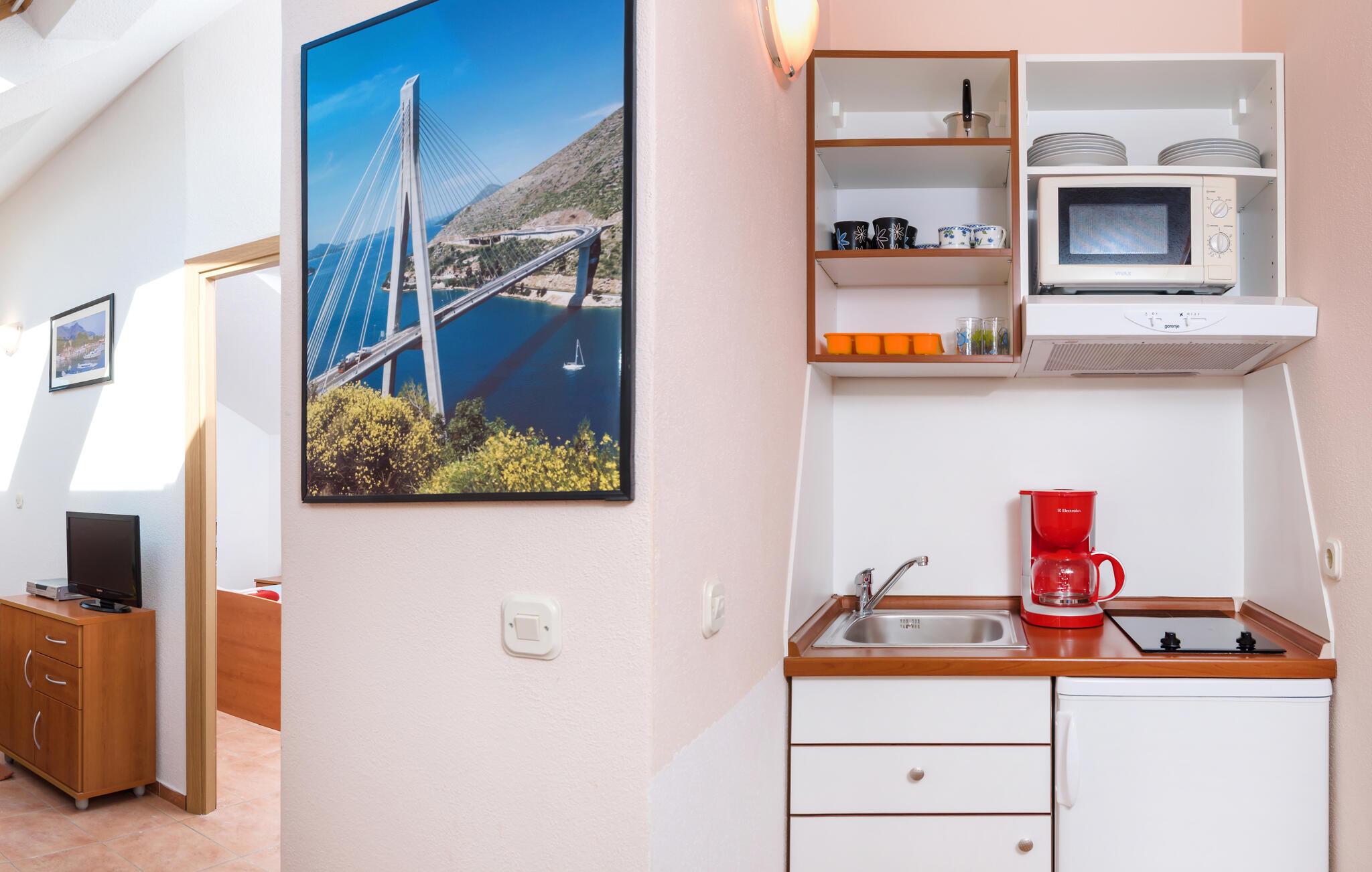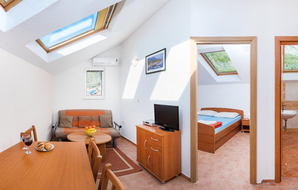 Velkommen til jeres indbydende feriebase og en god beliggenhed nord for centrum af Baska Voda, hvor I både kommer til at bo tæt på stranden, et udvalg af aktiviteter og rekreationsmuligheder. Lejligheden er hyggelig klassisk sydlandsk i sin indretning, så her har I en skøn, autentisk ramme om dagens små pauser.