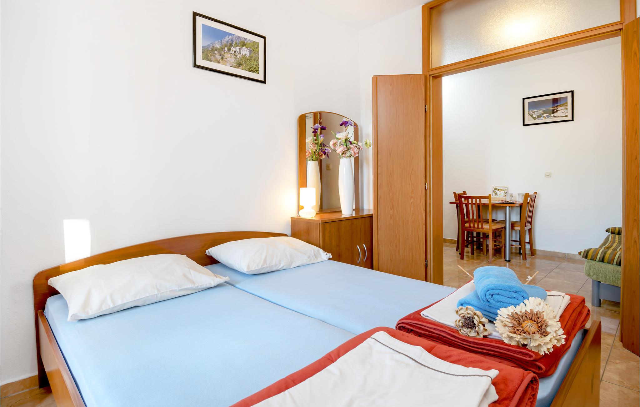 Velkommen til jeres indbydende feriebase og en god beliggenhed nord for centrum af Baska Voda, hvor I både kommer til at bo tæt på stranden, et udvalg af aktiviteter og rekreationsmuligheder. Lejligheden er hyggelig klassisk sydlandsk i sin indretning, så her har I en skøn, autentisk ramme om dagens små pauser.