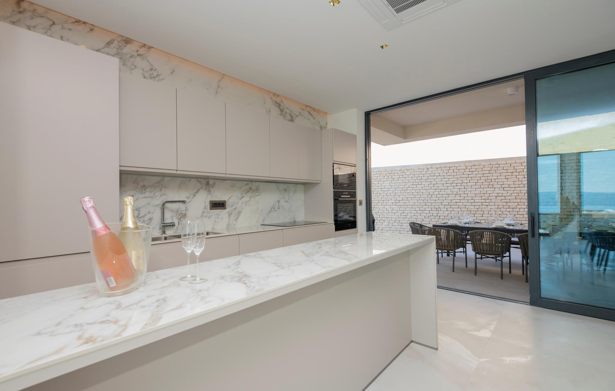 Udeområdet er tilsvarende lækkert. Her kan I glæde jer til en fantastisk pool, en betagende havudsigt og et vejrbeskyttet terrasseområde, hvor I kan dække op til lækre grill-måltider under aftensolen. Nyd solnedgangen på jeres private altaner med en kølig drink og nyd, at I ikke skal tidligt op dagen efter.