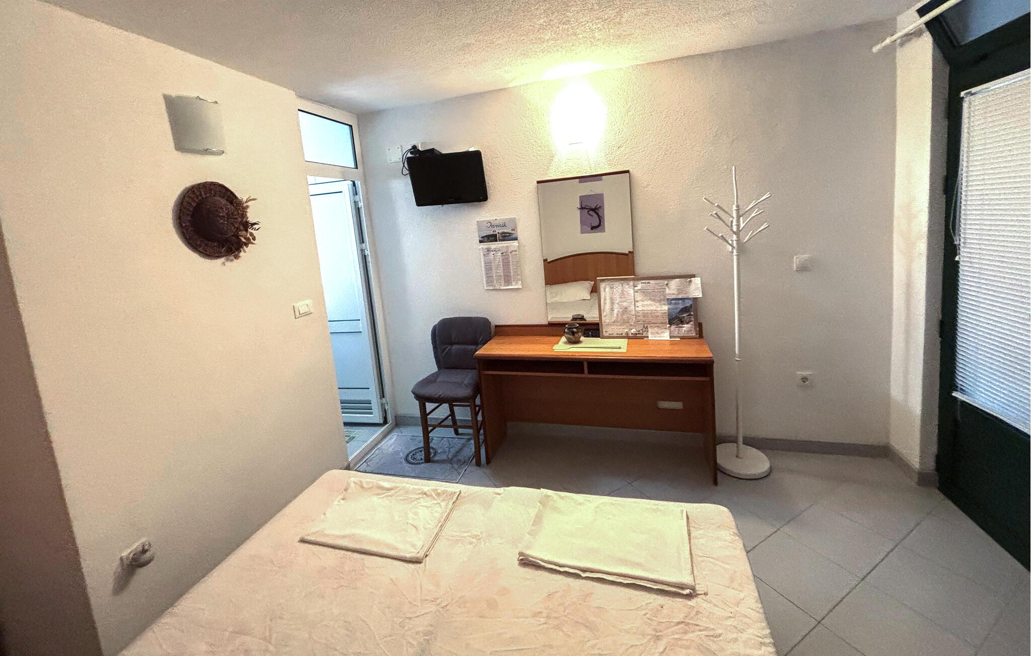 Glæd jer til en varieret ferie i denne charmerende ferielejlighed nær stranden. Denne praktisk indrettede lejlighed ligger kun få skridt fra stranden og tilbyder den ideelle base for en afslappende ferie ved havet for to, kombineret med spændende udflugter. Tilbered middelhavsretter med lækre, lokale råvarer, og planlæg jeres aktiviteter med afslappende måltider. Afslut en begivenhedsrig dag med et brætspil eller en god bog. Tag en morgentur til stranden og svøm i Adriaterhavets turkisblå vand. På vej tilbage kan I købe lækre ingredienser til en afslappet morgenmad og finde en restaurant til aftensmad. Tag en bådtur til øerne Hvar eller Brac, og snorkel i afsidesliggende bugter. Vandr gennem Biokovo-bjergene, og nyd panoramaudsigten fra toppen af Sveti Jure. Oplev de charmerende gamle byer Brela, Tucepi eller Omiš, smag frisk fisk og skaldyr i lokale konobas, og afslut dagen med et glas regional vin på en terrasse med udsigt over det glitrende hav.