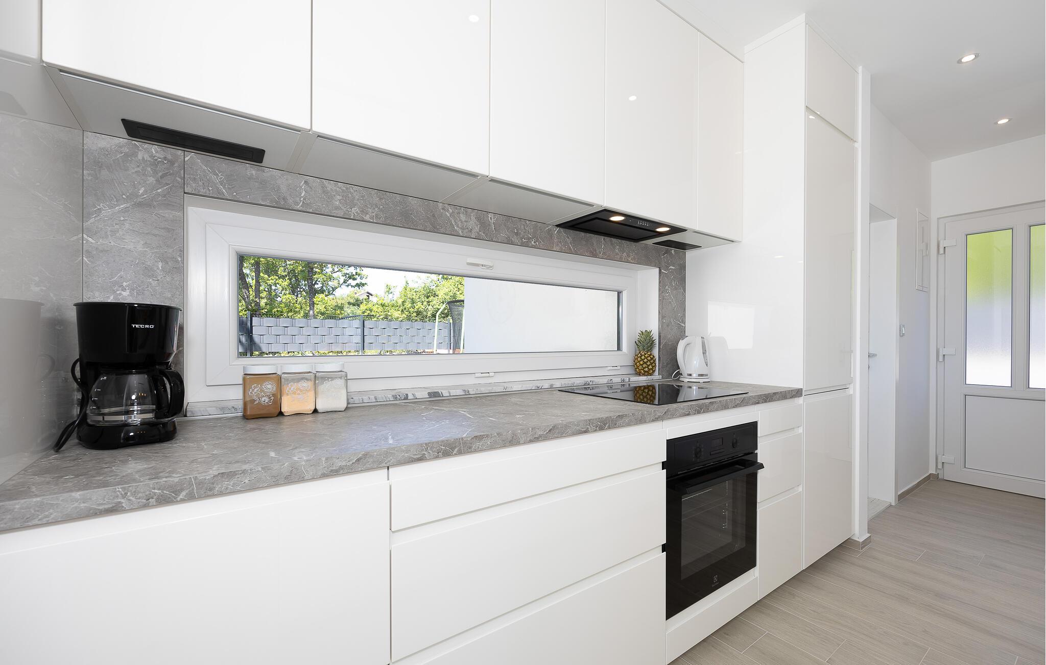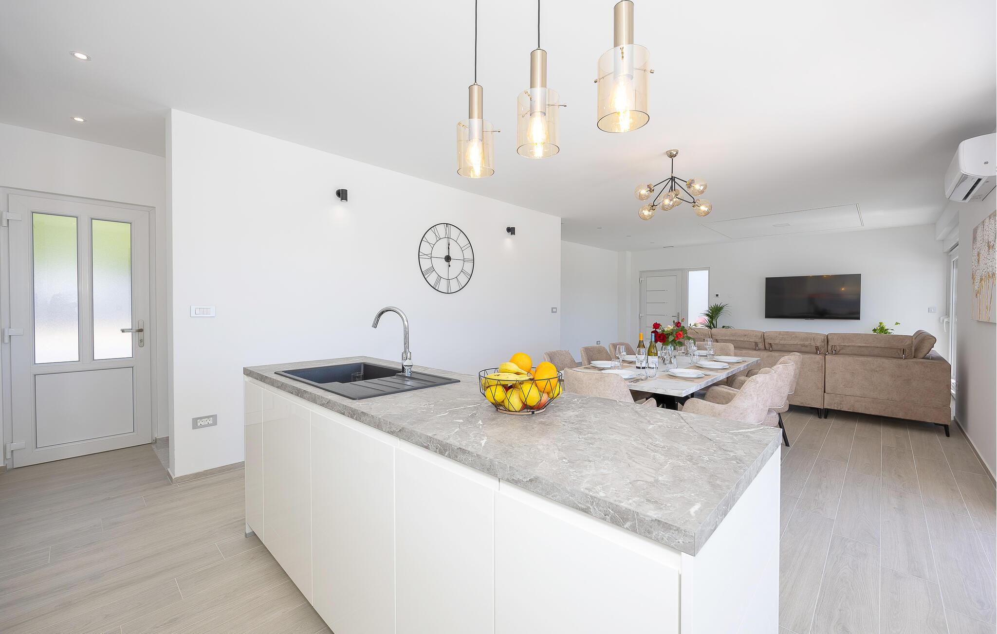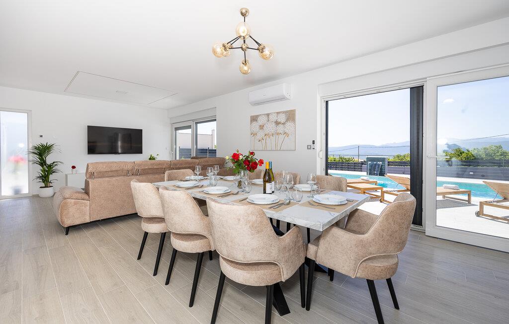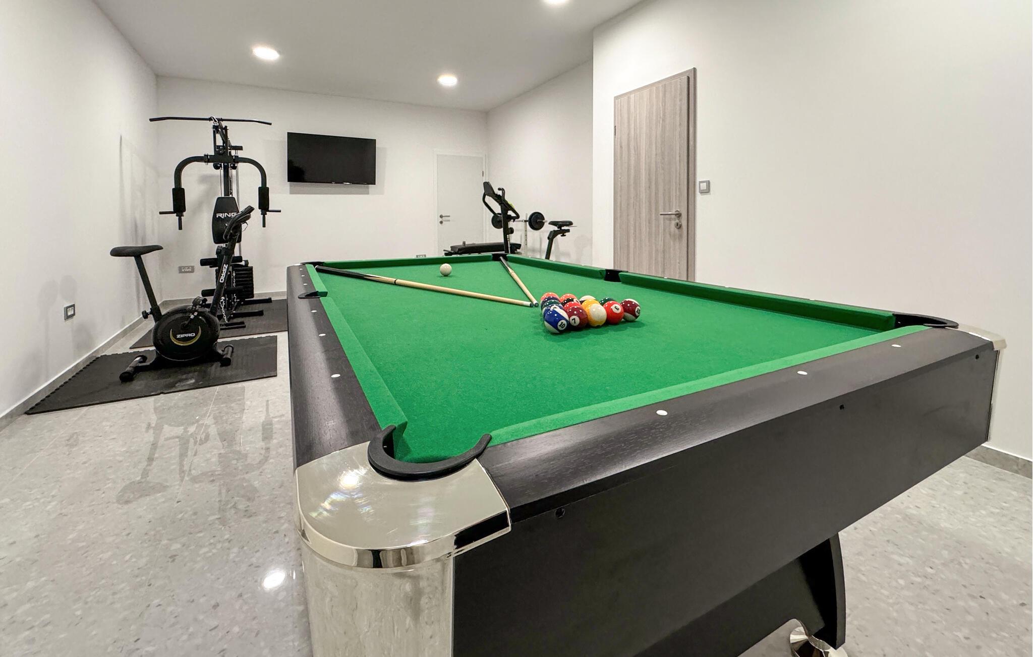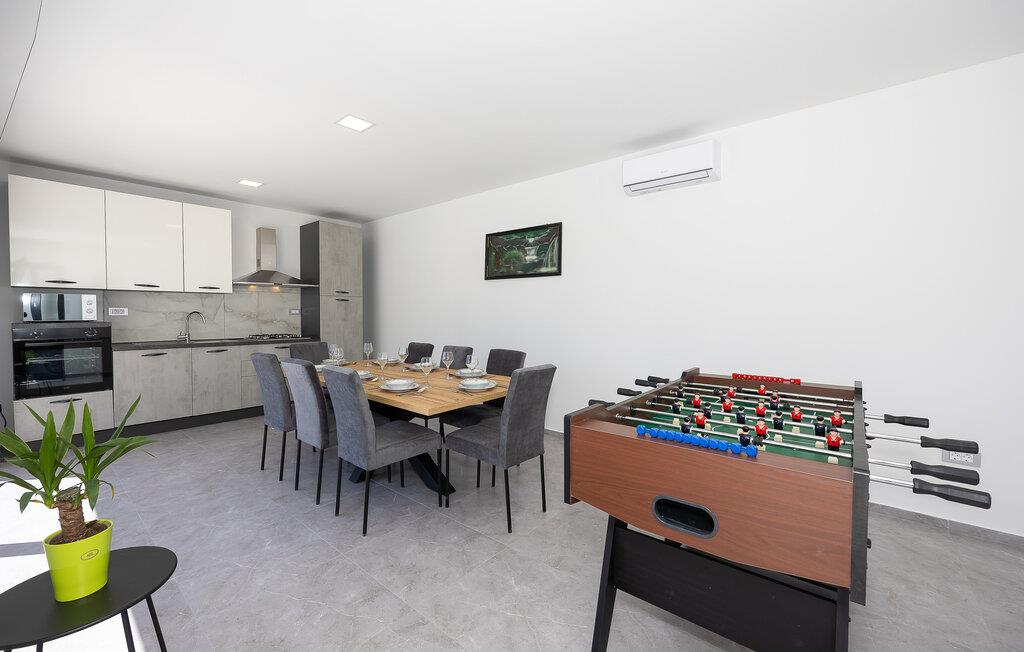 Velkommen til dette rummelige og flotte hus, der ligger smukt omgivet af naturen i Dalmatien og kun en kort køretur fra stranden ved Makarska. Med sit stilrene interiør og fremragende faciliteter har I her den perfekte bolig, hvis I gerne vil rejse som større familie og måske endda på tværs af generationerne. Indvendigt emmer det af kvalitet og gode materialer over hele linjen. Nyd en lækker aftensmad ved spisebordet, udfordr flokken til et slag bordfodbold eller flad ud i sofahjørnet med en god film, inden I går til køjs. Hvis I gerne vil holde formen ved lige, kan I gøre dette i det veludstyrede fitness-rum; det er sådan set bare at vælge.
