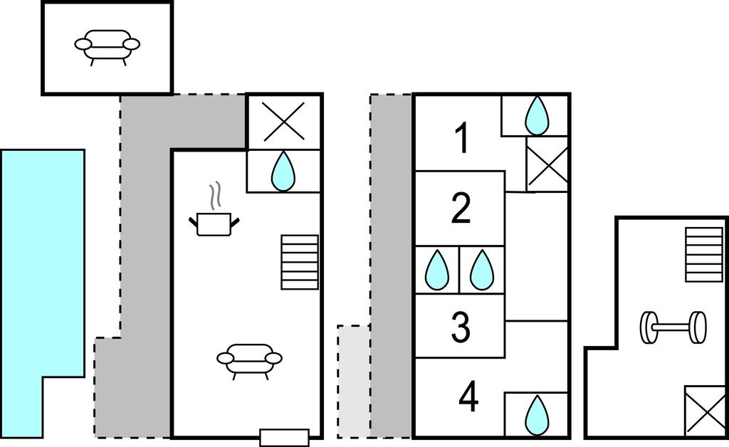 Badeværelse 3m2 (nr. 4) - WC. Varmt og koldt vand. Bruser