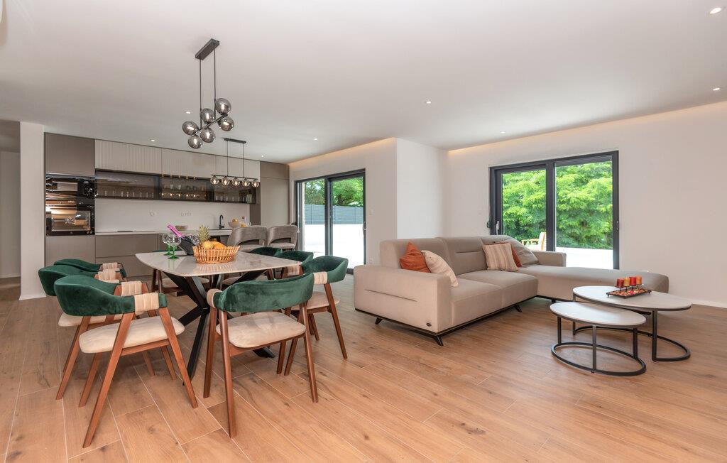 Denne moderne villa, indlejret i det grønne landskab, er det optimale sted sætte hverdagen på pause.