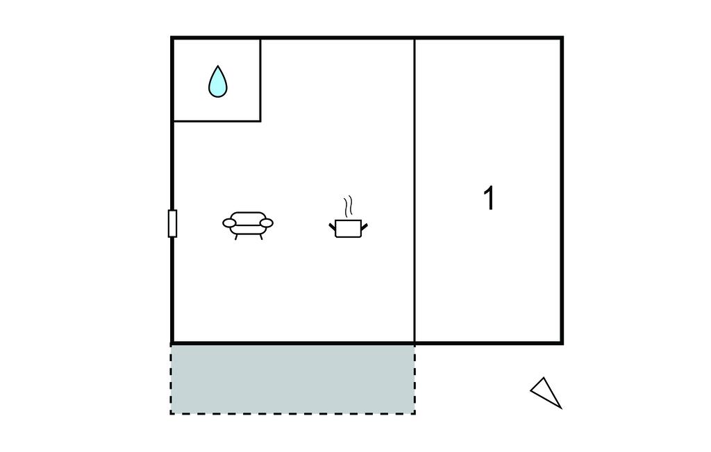 Opholdsstue/køkken 10m2 - 2 Sovepladser. (Sofa, madras eller lignende).