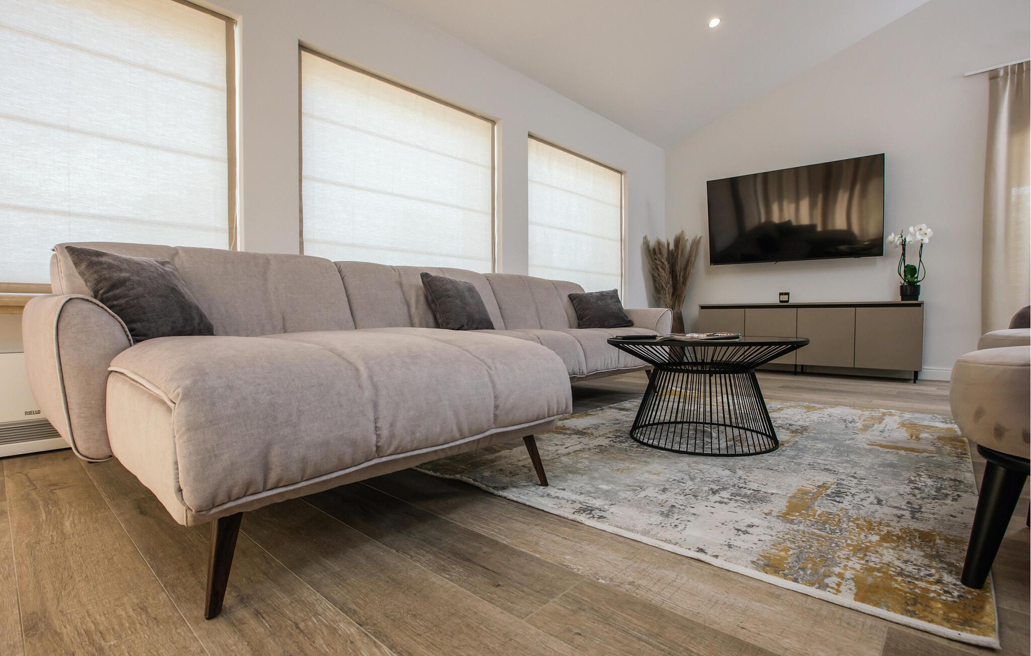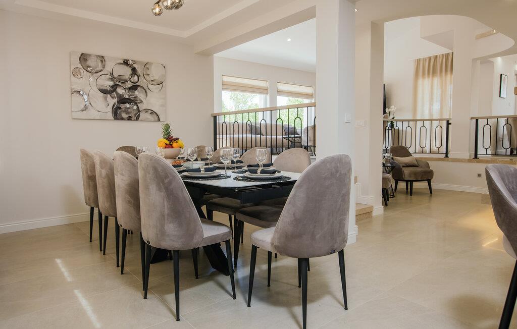 Hvis I er på udkig efter en ferie med helt ekstravagant luksus, er denne kæmpestore villa et virkelig godt valg. Huset ligger i flotte omgivelser i baglandet til kysten og byder på masser af plads og nærmest uanede mængder af komfort, der gør jeres ferie til en, I ikke vil hjem fra. Nyd godt af det moderne og komfortable interiør, nyd privatlivets fred i soveværelserne med eget badeværelse og glæd jer til en ferie, hvor Ingen kommer til at kede sig. Om aftenen kan I finde jer godt til rette med drinks og snacks i de rummelige sofaer, i saunaen eller spabadet, mens I lægger planer for de kommende dage.
