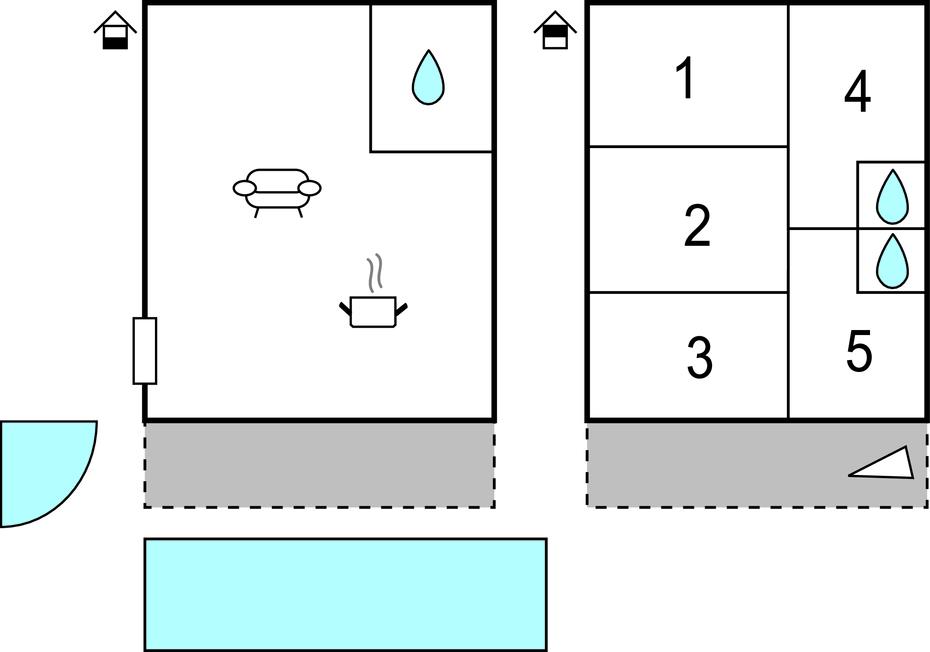 Badeværelse 5m2 (nr. 1) - WC. Varmt og koldt vand. Bruser