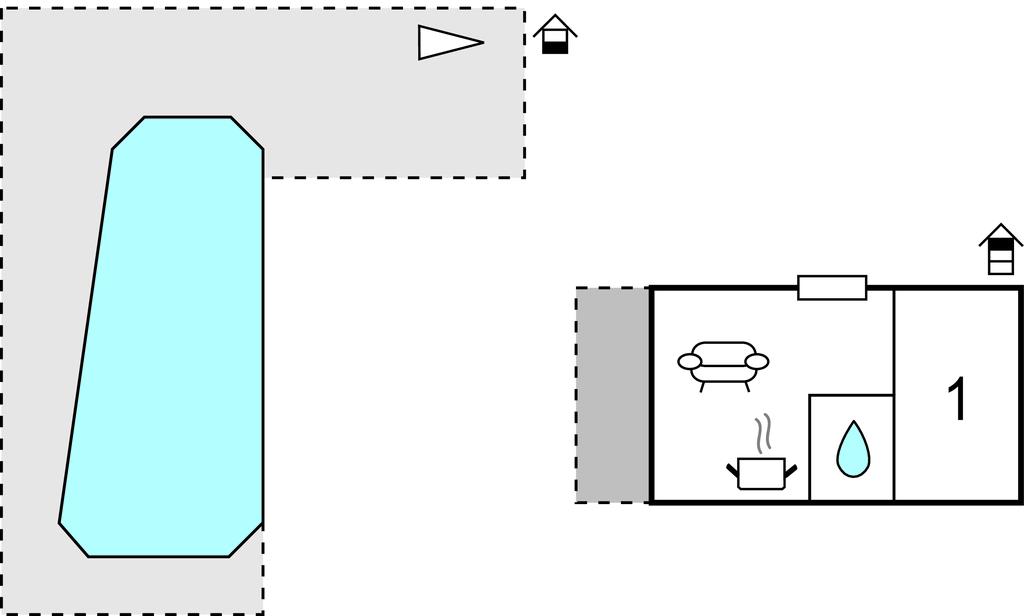 Opholdsstue/køkken 25m2 - 2 Sovepladser. (Sofa, madras eller lignende).