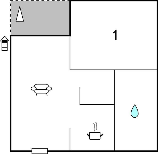 Opholdsstue/køkken 24m2 - 2 Sovepladser. (Sofa, madras eller lignende).