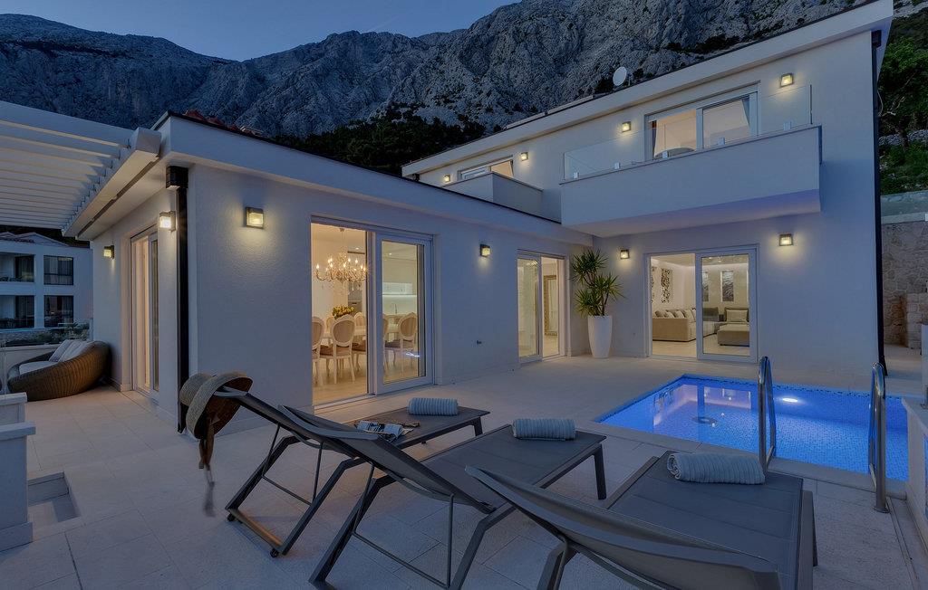 Tilbring en vidunderlig flugt fra hverdagen i denne roligt beliggende villa med pool og fantastisk havudsigt. Villa SunnySide kombinerer stilfuld elegance med moderne komfort og lyse værelser. Den rummelige opholdsstue med lyse møbler lægger op til at tilbringe afslappende timer med familie eller venner. I spisestuen med den funklende lysekrone kan I nyde festlige måltider med udsigt over havet, mens fitnessrummet og saunaen tilbyder motion og beroligende afslapning. Her finder I de ideelle rammer til at planlægge hver dag af jeres ferie præcis som I ønsker – nogle gange aktiv, nogle gange afslappet, men altid i en luksuriøs atmosfære. Villaens udendørsområde tilbyder mange muligheder for at slappe af og genoplade batterierne. snup en frisk dukkert i poolen, nyd solen eller slap af i spabadet. Hæld jer et glas vin eller bland jer en forfriskende cocktail og nyd den storslåede udsigt: Fra næsten alle hjørner af villaen kan I nyde en fantastisk panoramaudsigt over det glitrende hav og øerne foran kysten – et syn, der vil forblive uforglemmeligt. Tag en kort tur til de berømte strande i Brela eller den vidtstrakte Oseka-strand og slap af, mens I svømmer eller solbader. Tag en vandretur i Biokovo Naturpark og se den spektakulære udsigt. I Makarska venter en livlig gammel bydel, maleriske gyder og en havn fuld af middelhavsk livsglæde. Bemærk: Poolen kan opvarmes mod et gebyr fra midten af september til slutningen af maj, som skal betales lokalt til ejeren.