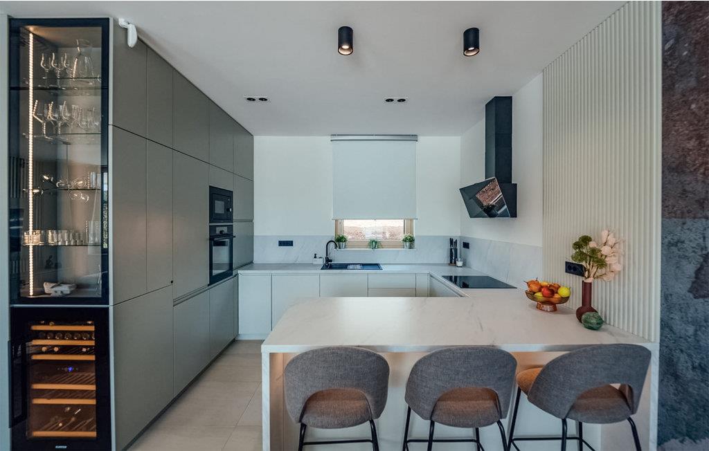 Det børnevenlige og komfortable hus byder jer velkommen med en fantastisk beliggenhed bag den dalmatiske kyst, og her kommer I ikke til at mangle noget. Noget af det første, I vil lægge mærke til, er udsigten over det maleriske landskab gennem de store panoramavinduer. Den stilfulde atmosfære indgyder ren afslapning, og efter en behagelig massage i boblebadet og en tur i saunaen kan I sætte jer godt til rette ved pejsen og sludre til sent ud på aftenen. Her har I valget mellem flere terrasser, hvor I kan nyde solen og den smukke udsigt. Se jeres børn lege på den store grund og saml hele familien om aftenen til et lækkert måltid fra grillen.