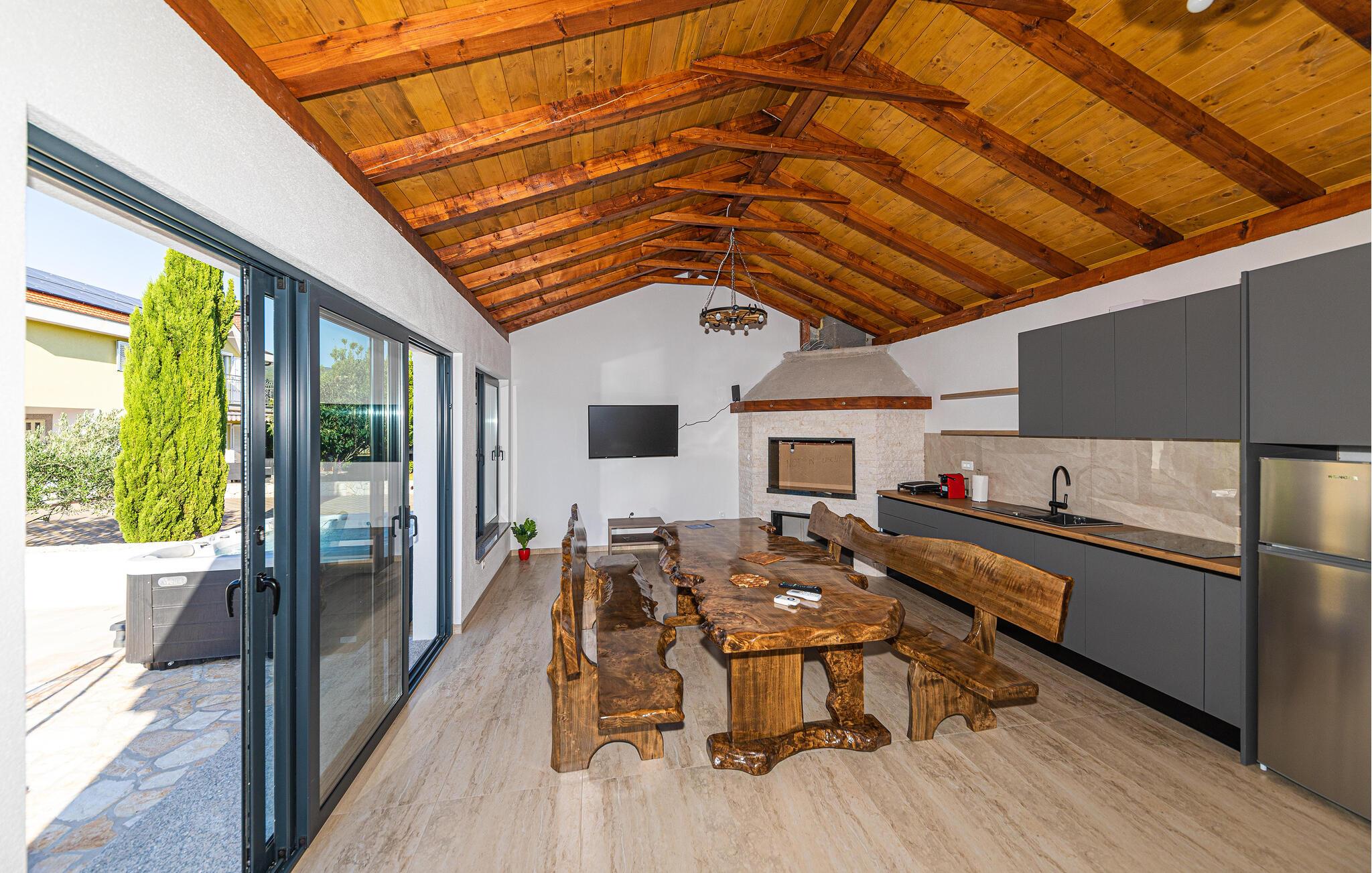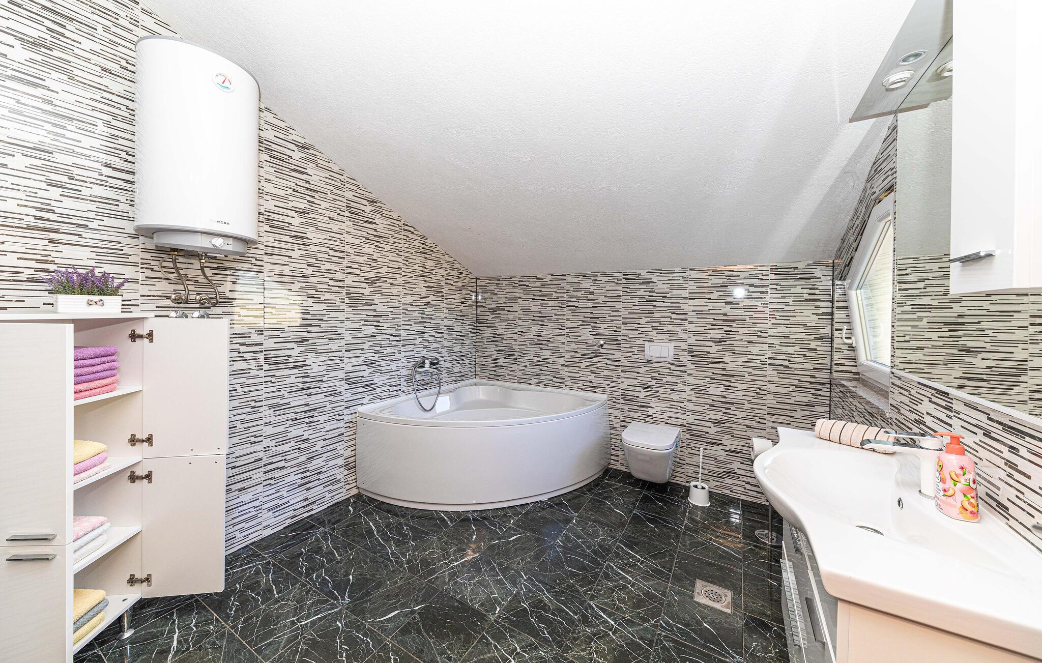 Oplev en meget afvekslende ferie i dette herlige feriehus i Proložac Donji ikke langt fra Imotski. Huset er indrettet med alt der kan gøre ferien behagelig og komfortabel. Efter en svømmetur i poolen er der oplagt at slappe af i solen med en god bog. I sommerkøkkenet og på grillen kan aftensmaden tilberedes i den friske luft. På første sal er der en Playstation til familiens legebørn. Udendørs er der både fitnessapparater og mulighed for at dyrke andre fritidsaktiviteter. I nærheden er en sø, hvor der kan fiskes og en dejlig spadseresti. Hop en tur på cyklen og oplev de skønne omgivelser, og tag del i de utallige former for sommerunderholdning der er i Imotski dens omgivelser. Planlæg afslappede badedage på en af de utallige skønne kiesstrande ved Makarskas riviera.