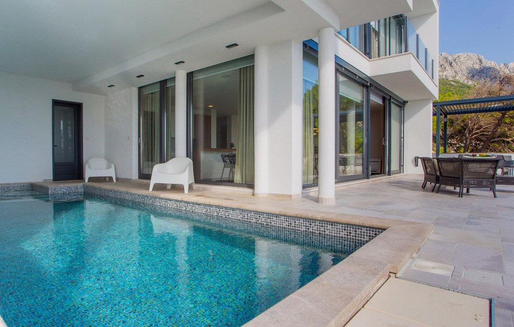 Glæd jer til uforglemmelige solnedgange i dette luksuriøse feriehus med pool og sensationel havudsigt. Den rummelige og elegante Villa Puntin byder jer velkommen på en privilegeret beliggenhed direkte ved kysten og er noget særligt med sit moderne interiør af høj kvalitet. Den lyse og komfortable atmosfære i denne eksklusive ferieoase kan også nydes med en større familie eller en gruppe venner. Fremkald kulinariske lækkerier sammen, nyd harmoniske måltider med udsigt over havet, og saml jer til en hyggelig snak eller en spilleaften i det komfortable sofaområde. Brede skydedøre i glas giver nem adgang til den storslåede terrasse. Server jeres morgenmad her, snup en frisk dukkert i poolen, som I har lyst, nyd solen på liggestolen og nyd den fantastiske havudsigt med et glas vin på de indbydende loungemøbler. Begiv jer ud på Skywalk i Biokovo-bjergene, slentre gennem den charmerende gamle bydel i Makarska, og oplev de idylliske strande i Drvenik. Tag en bådtur til øerne Hvar eller Brac, hvor skjulte bugter og krystalklart vand venter på jer eller udforsk den historiske by Omiš med dens piratslotte og den imponerende Cetina-flodkløft, hvor I kan få adrenalinen til at pumpe med rafting. En tur til vinbyen Gradac eller Kravice-vandfaldene i Bosnien er også umagen værd og vil give jer et nærmere kig på regionens skønhed og mangfoldighed.
