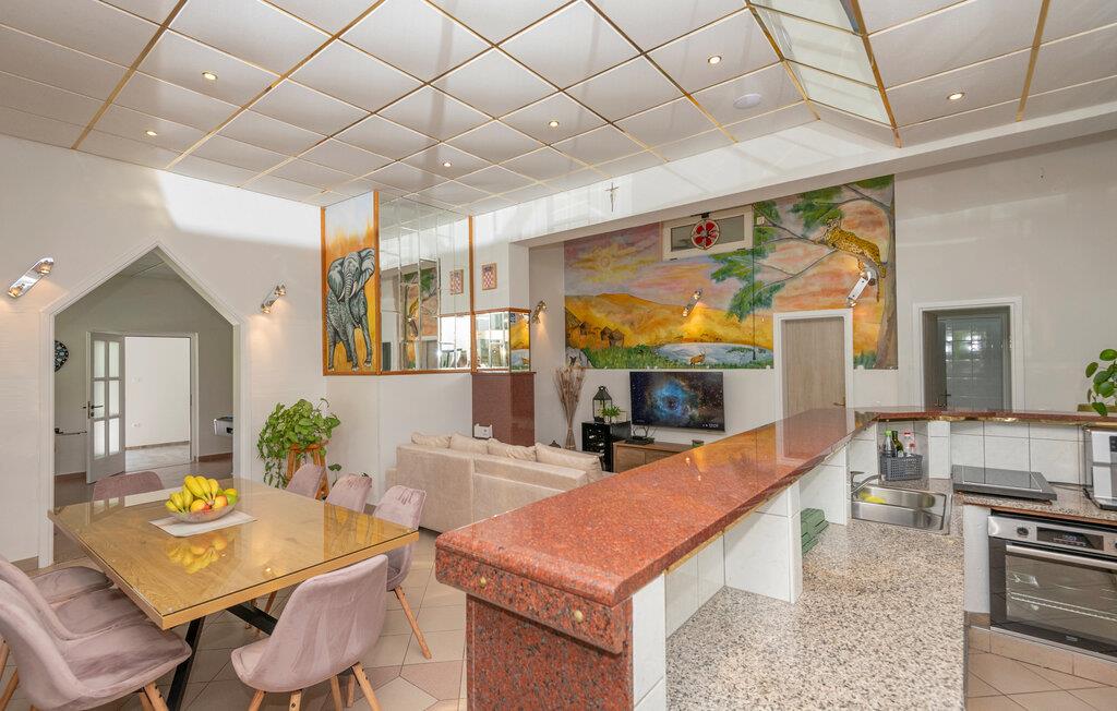 Dette fantastiske feriehus med pool ligger i Mellemdalmatiens bagland, i den lille by Glavina Donja. Det er fordelt på to etager med ekstra køkken og aktivitetsrum i stueplan, med billard playstation og dart. Mens soveværelserne og stuen der er kombineret med køkkenet ligger på første sal. Hop en tur i poolen når som helst og nyd at se børnene lege i haven. Lav mad på grillen, drik et glas af den hjemmelavede vin til det færdige resultat, mens den lune sommeraften bliver til nat. Der er dejlige kiesstrande i både Baška Voda og Brela. Grib chancen og besøg de historiske byer: Imotski, Makarska og Split.