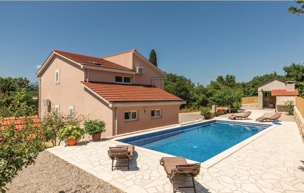 Dette feriehus med pool ligger for foden af byen Imotski i baglandet af middeldalmatien. Huset er enkelt, men hyggeligt indrettet og er fordelt på stueplan og første sal med indvendig trappe. Foran huset er der en terrasse med udsigt til naturparken Biokovos nordlige side. Bag huset er der solområdet og poolen, terrassen med grill og legeområdet for børn. Udforsk området på cyklen. Dejlige kiesstrande ved Makarska rivieraen med mange fritidsmuligheder nå I på ca. 30 minutter med bilen.