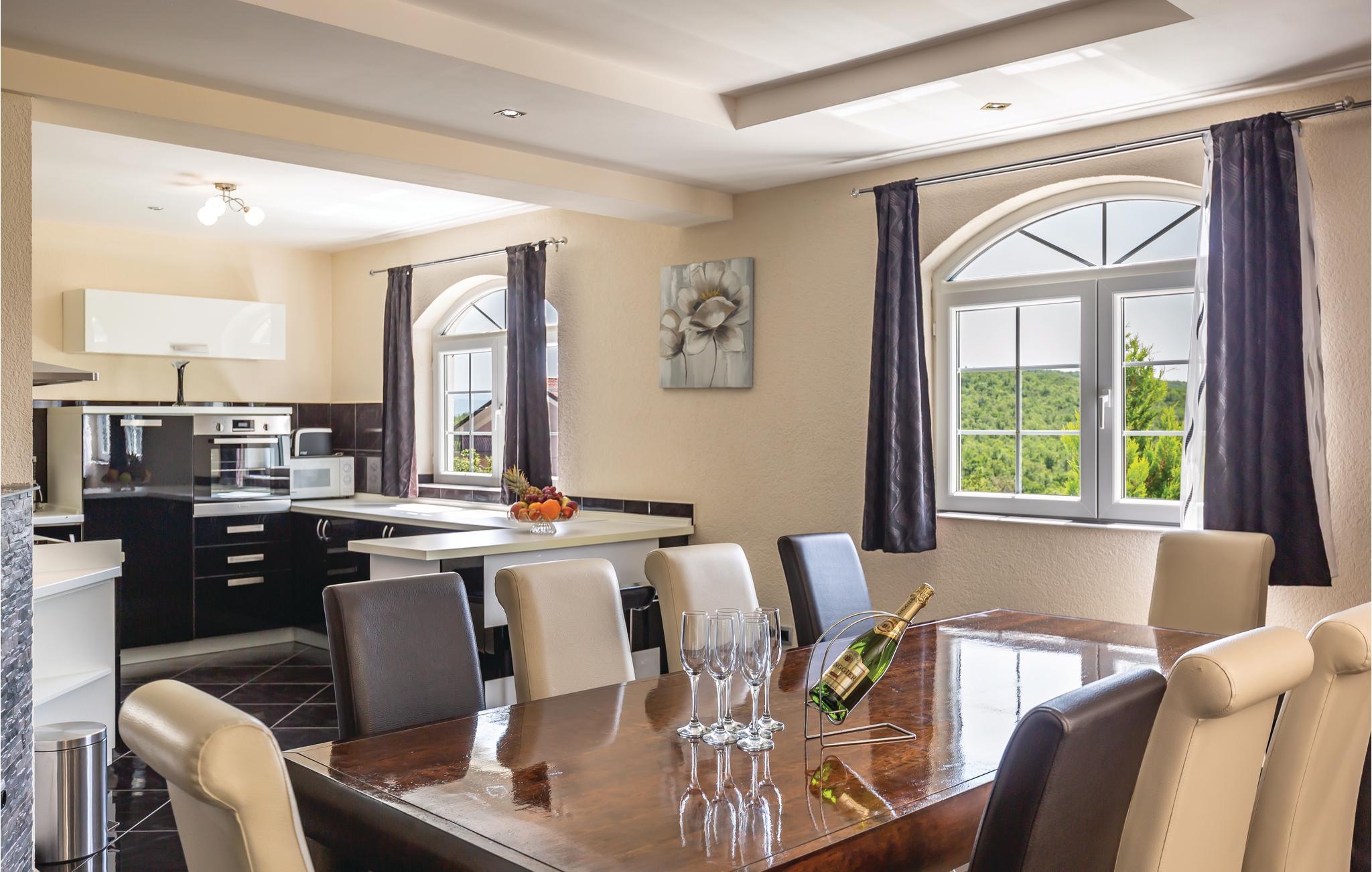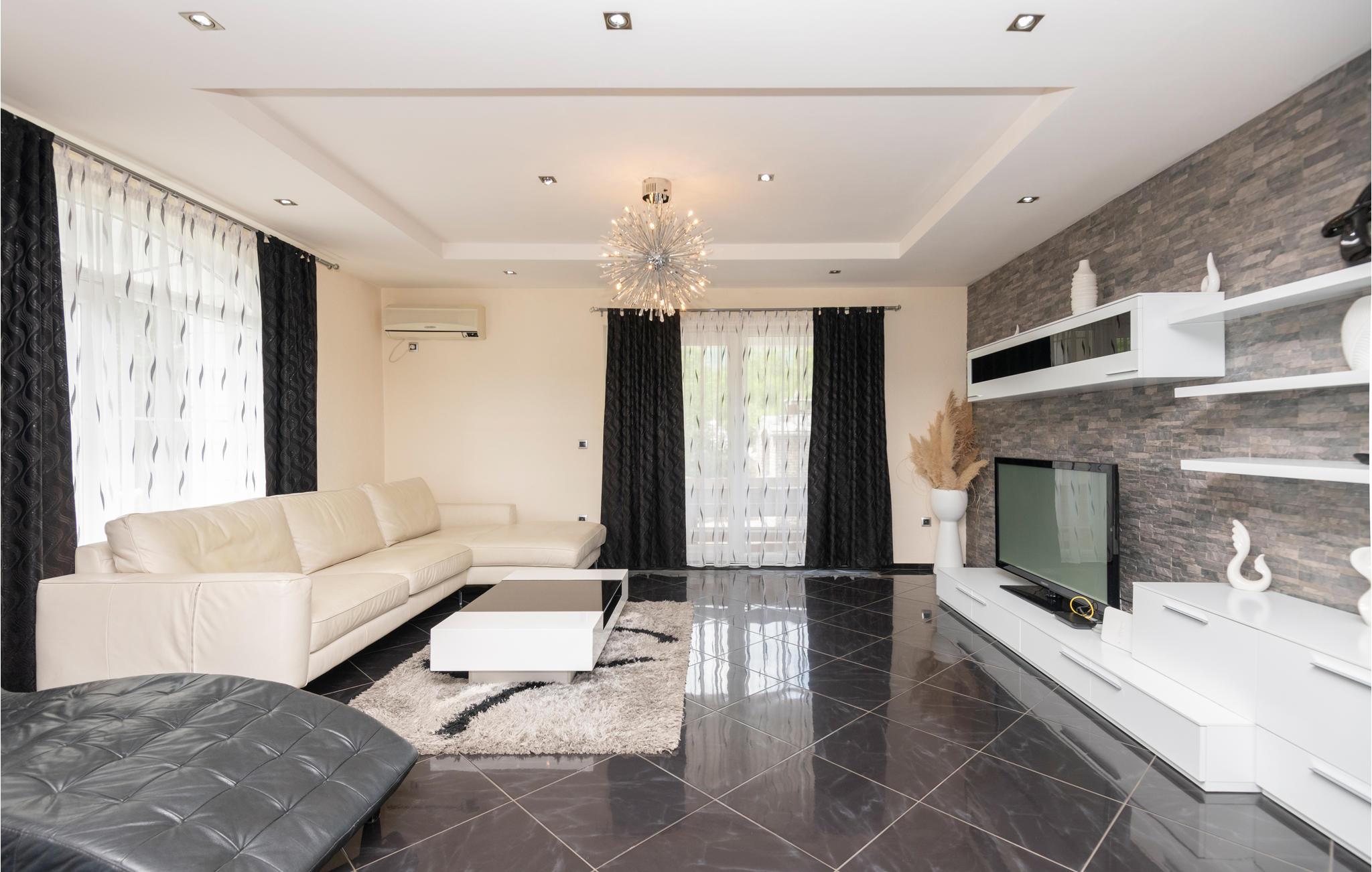 Denne dejlige villa med privat pool ligger idyllisk i Mellemdalmatiens indland. Den ligger på en stor, delvist indhegnet grund, hvor I kan tilbringe de gode feriedage og nyde den friske luft. I stueplan finder I tre soveværelser, et køkken i åben forbindelse med stuen, et stort badeværelse og et fitnessrum, stueplan og førstesal er forbundet med indendørs trapper. På første sal er der yderligere tre soveværelser, fire badeværelser, et wc og en stue. Terrassen i stueplan er åben mod haven, hvor poolen ligger. Bag poolen er en overdækket terrasse med en grill, hvor I kan nyde resultaterne fra grillen i bekvemme havemøbler. Tag på udflugter til de nærliggende byer Makarska og Baska Voda. I har en sportsplads til basketball, fodbold og badminton til jeres eksklusive rådighed. Der en tennisbane tæt på huset, som I er velkomne til at bruge.