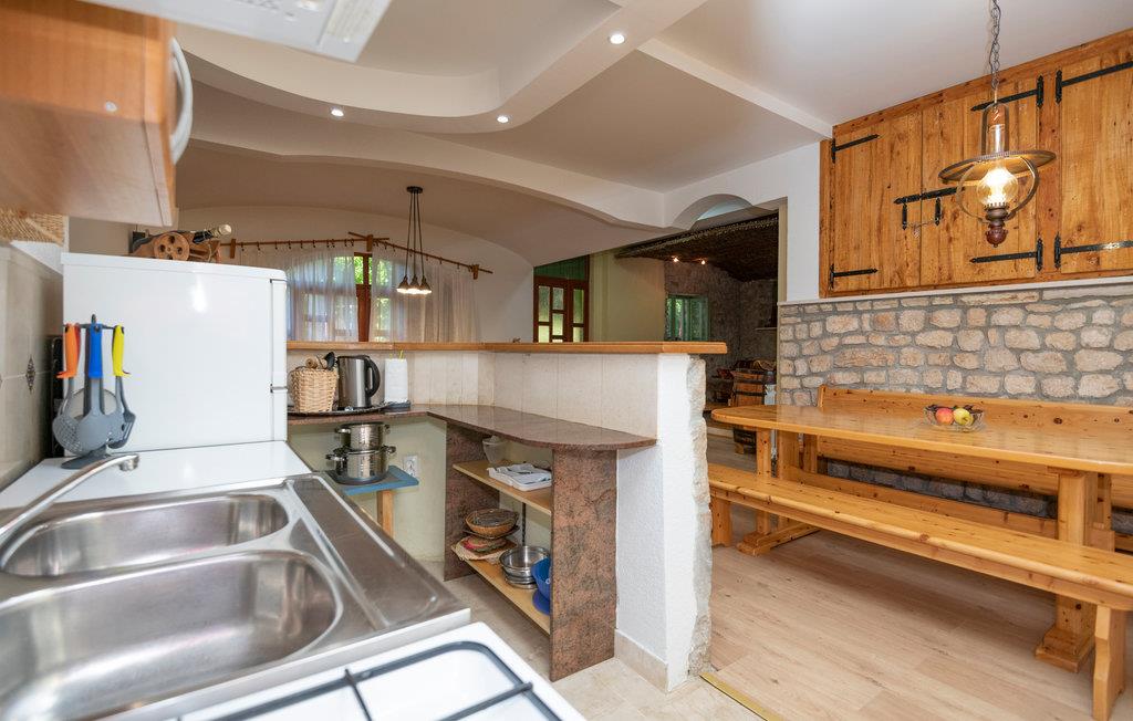 Bo langt væk fra byens larm og uro, i et feriehus omgivet af den stille natur. Herfra tager det kun to minutter i bil at køre til Makarskas riviera. Huset rummer to lejligheder, perfekt til to familier der gerne vil holde ferie sammen, men bo hver for sig. Huset er omgivet af frugtplantager, vinbjerge og den frodige grønne natur. Slap af i den velplejede have med flere terrasser og en pool, legeplads og fitnessrum. Der er kun fem km til den livlige by Imotski, med mange former for underholdning.