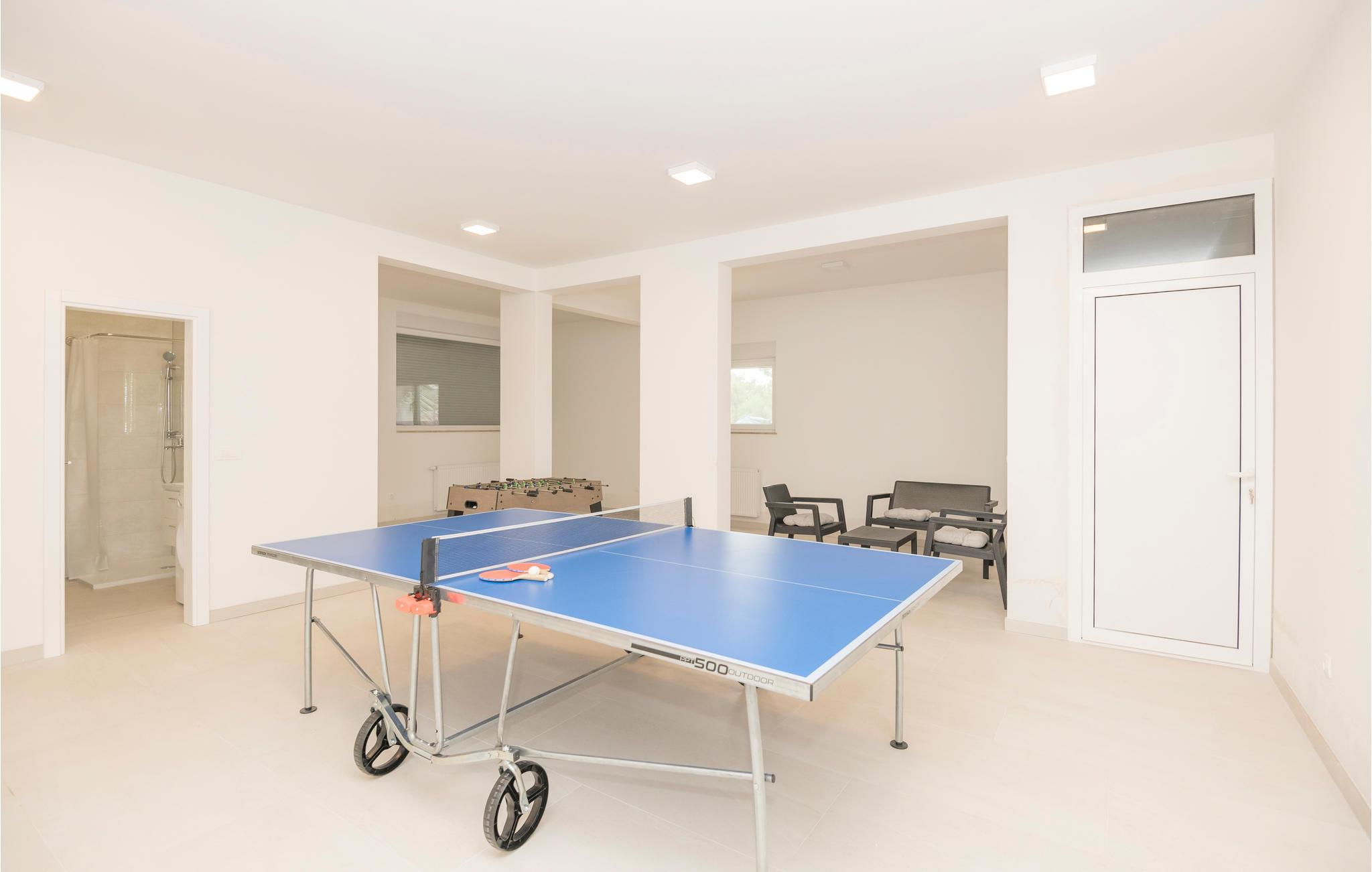 Foran huset er der en rummelig pool, en overdækket terrasse med flere udendørs terrasser og en legeplads i skyggen. Slap af her i solen eller tag en forfriskende dukkert i poolen. Underholdning er klaret med billard, bordfodbold og bordtennis.