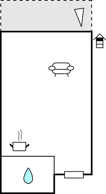 Opholdsstue/køkken 20m2 - 2 Sovepladser. (Dobbeltseng(e)).