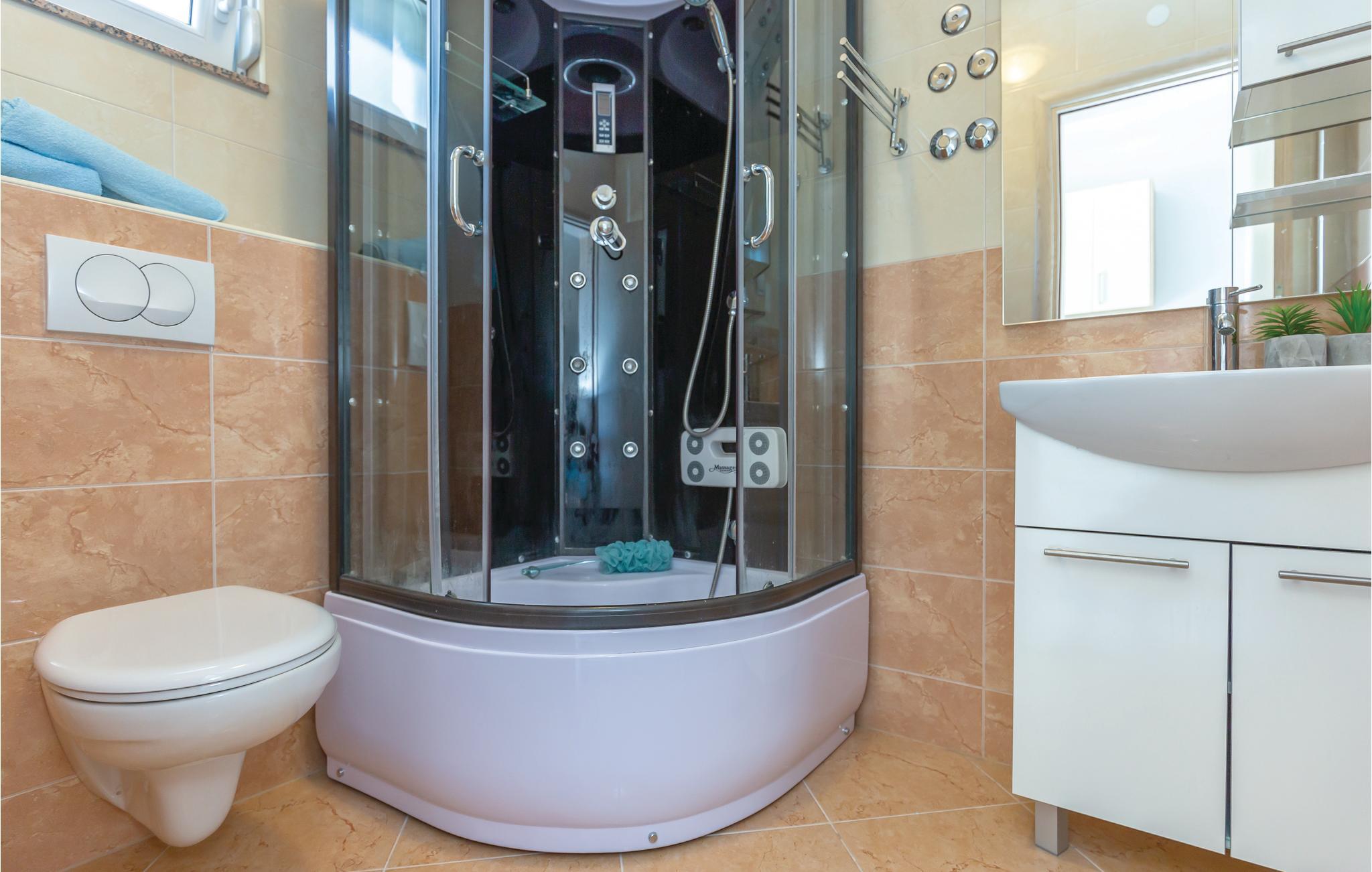 Badeværelse (nr. 1) - WC. Varmt og koldt vand. Bruser