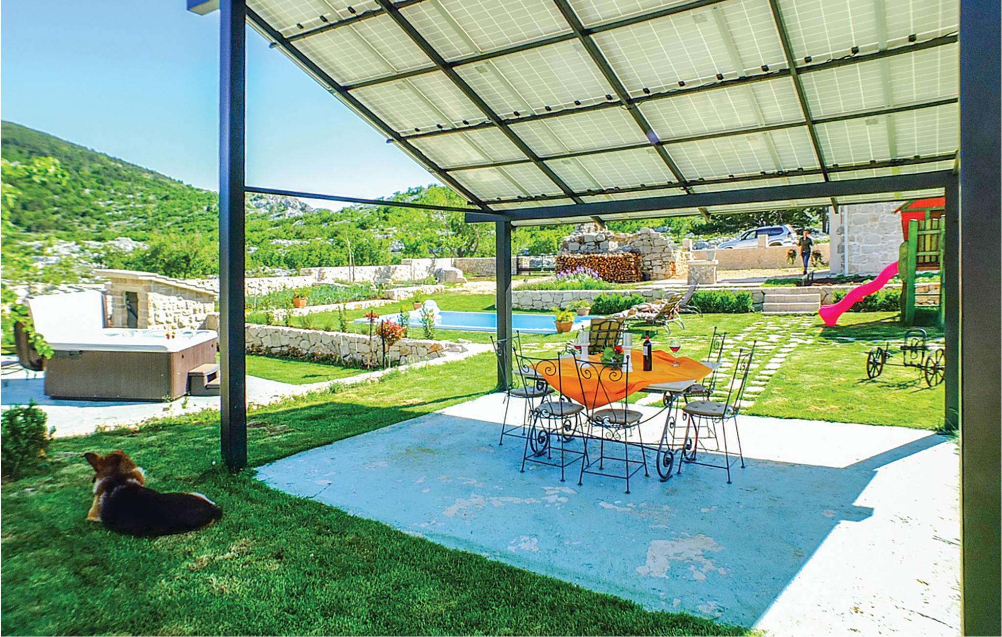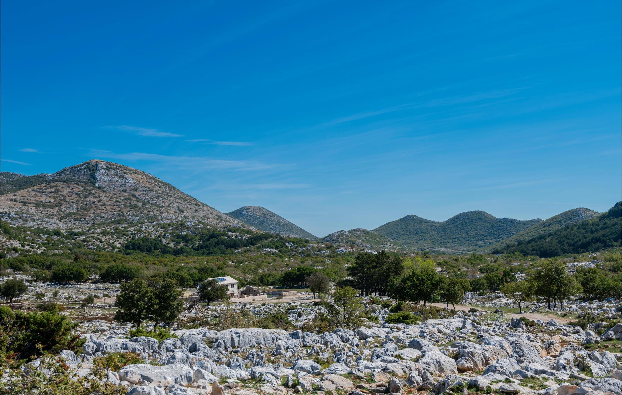 Det traditionelle dalmatiske feriehus i rustik stil er ideelt til en familieferie. Der er en stue, køkken med spiseplads, to soveværelser og to badeværelser. Jeres kæledyr er også velkomne.